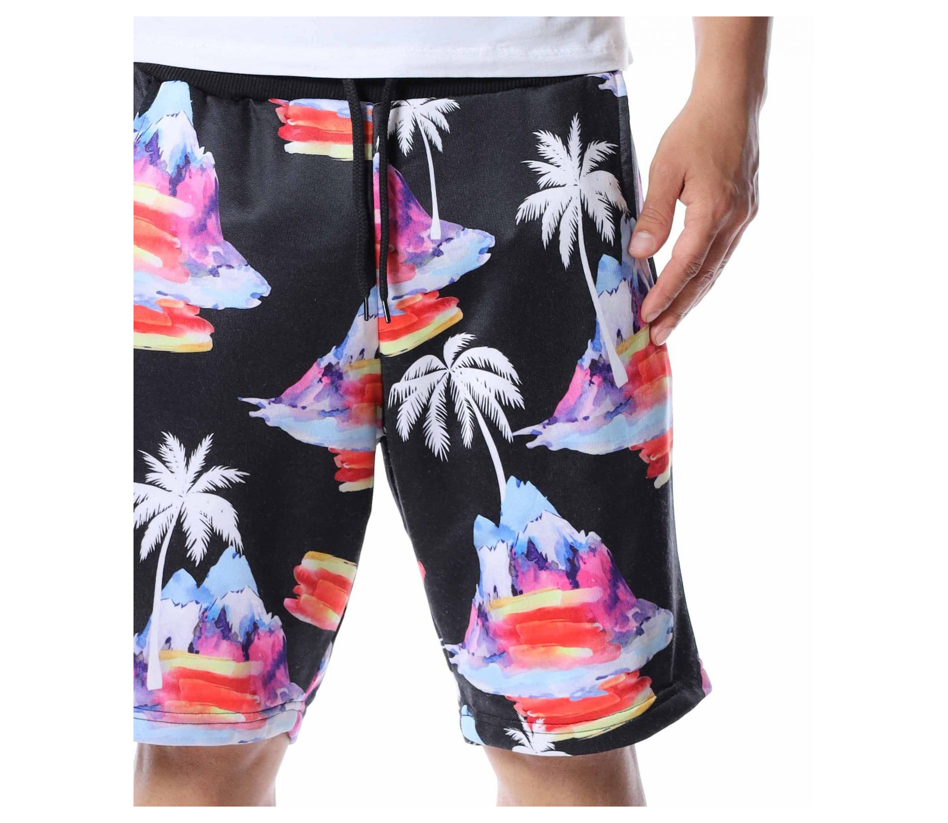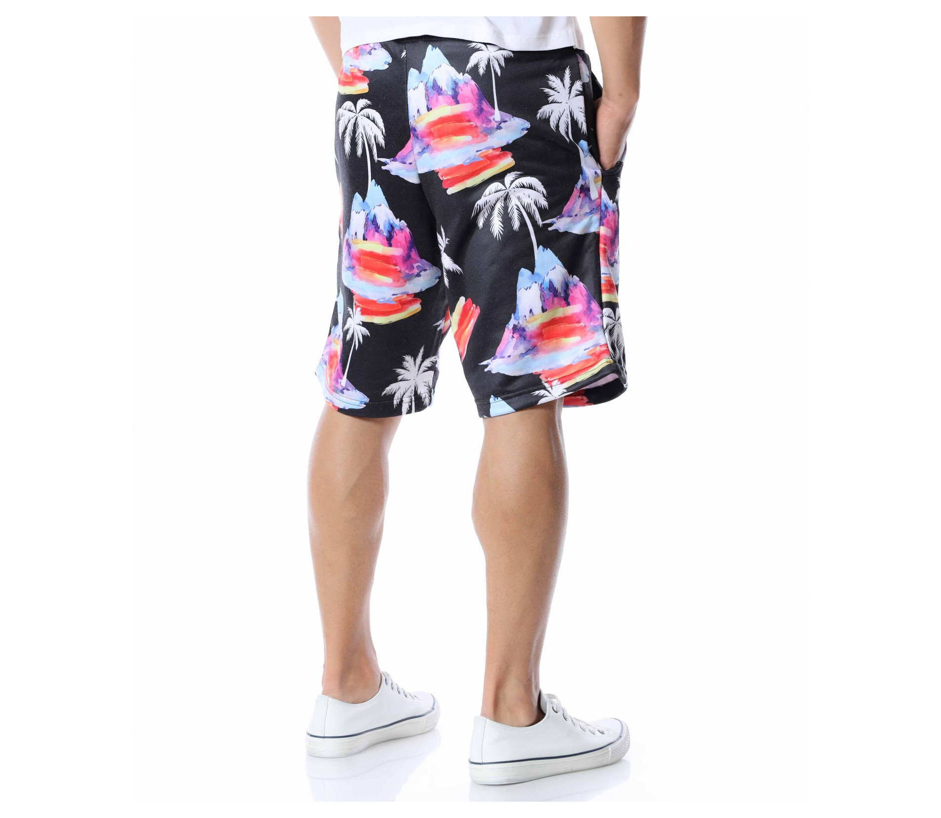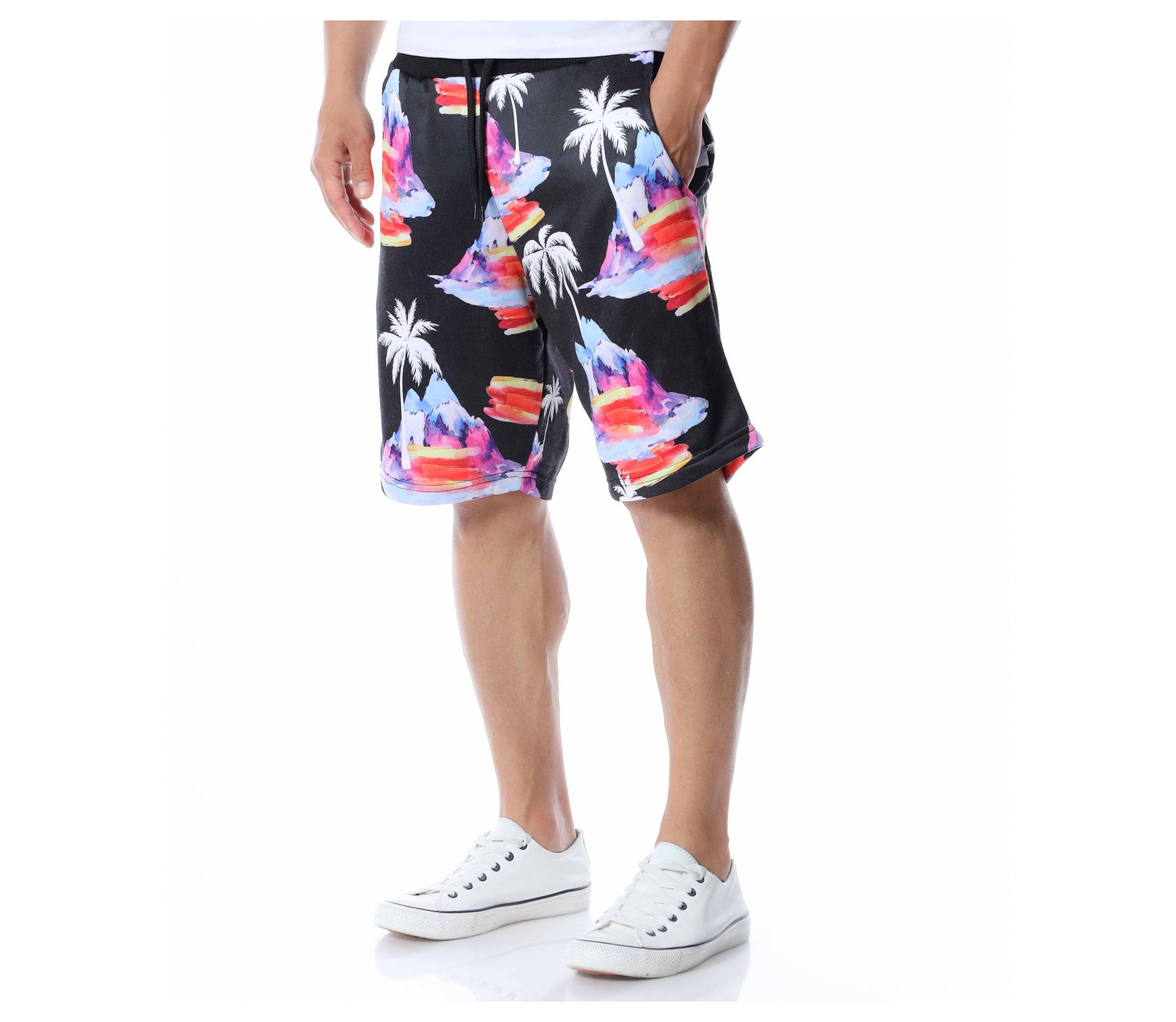 Представяме ви мъжки панталонки с дължина до коляното. Черният цвят, на който е поверена почти цялата основа е изключително лесно приложим към всеки друг нюанс от летния гардероб, с което се превръща в един от най-практичните ни модели тази година. За да бъде леко разчупен вида и стила им, по цялата основа е пръсната апликация на палми и цветни острови, които моментално изменят фокуса и създават един запомнящ се акцент. В областта на талията е разположен ластик, през който преминава и връзка, която позволява да регулирате ширината. Свободната кройка, също допълва цялостния кофморт, върху който са изградени мъжките къси панталонки. Подновете гардероба, като започнете от удобните и приятни за комбиниране летни дрехи.