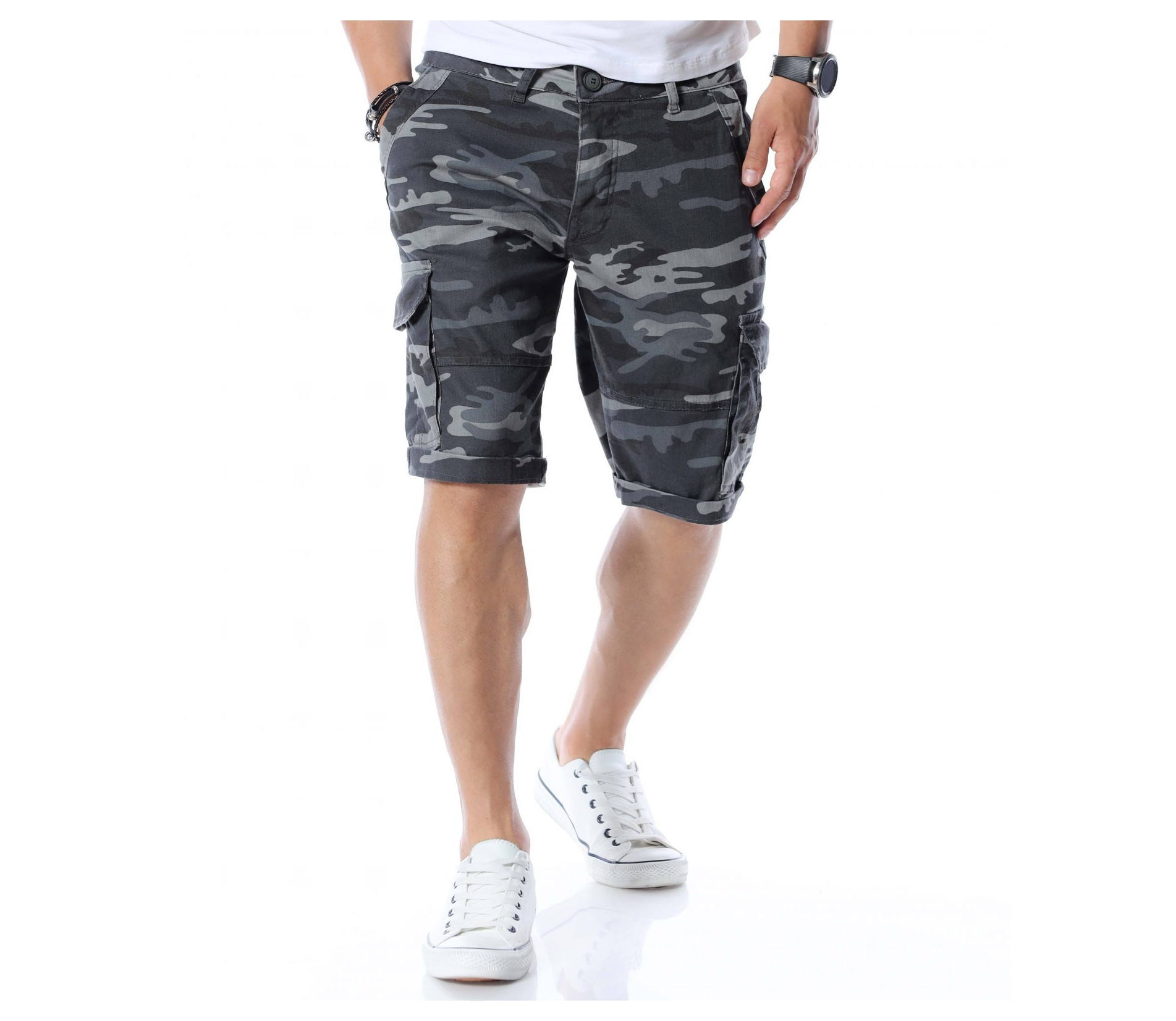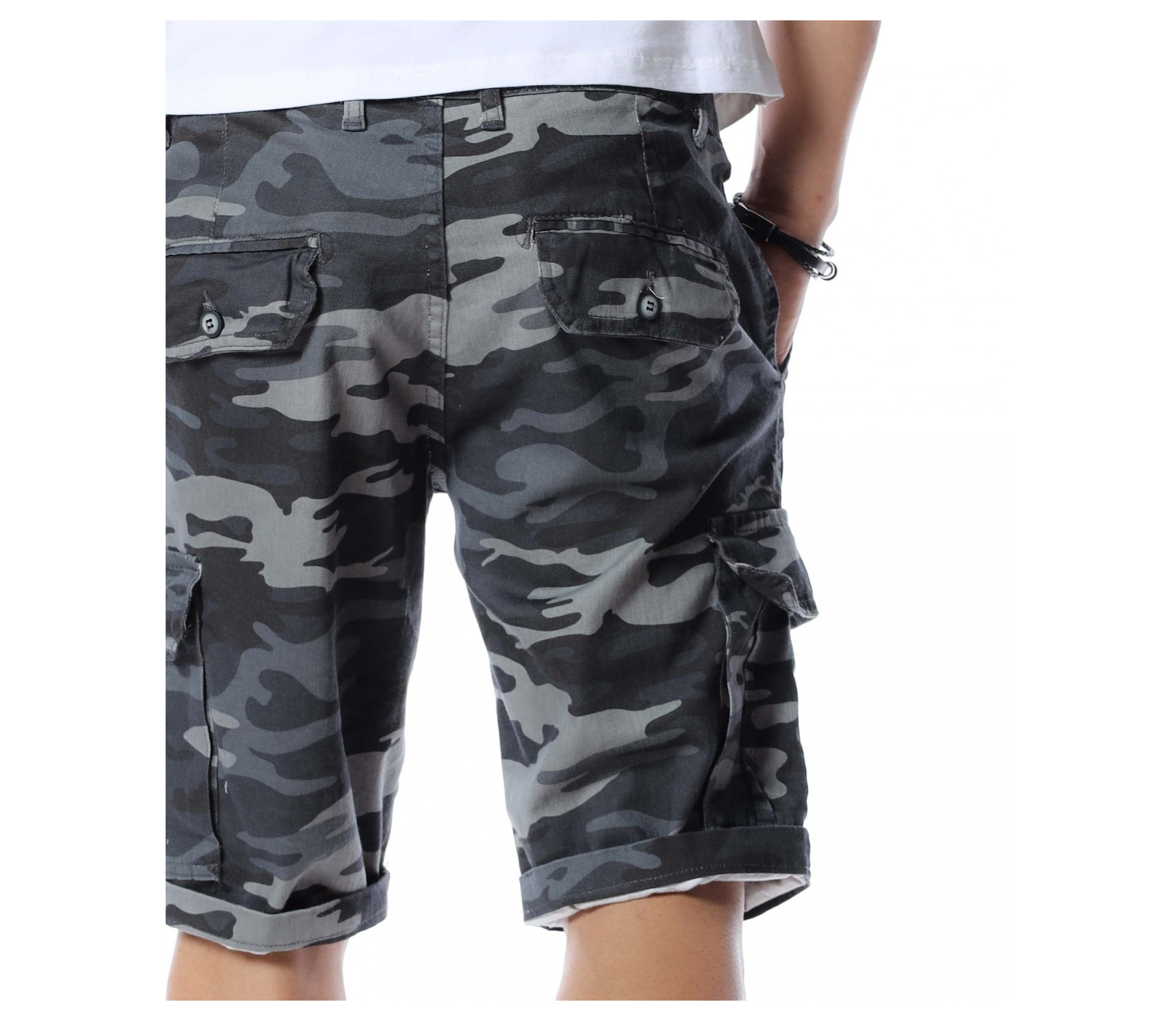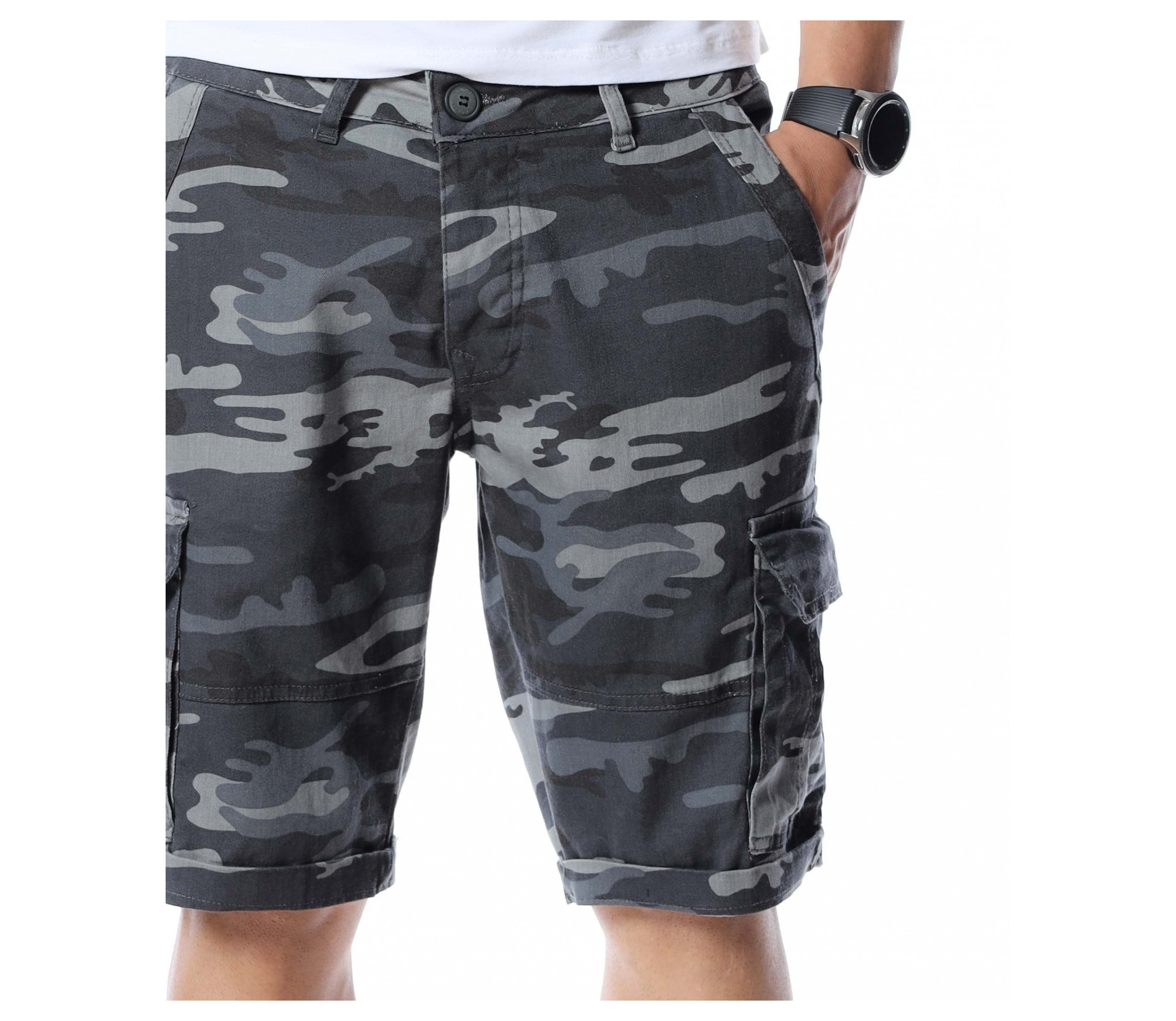 Ако се чудите как да разнообразите вашият ежедневен стайлинг се възползвайте от най-подходящата и ТОП алтернатива за 2021г. - къси панталонки в камуфлажен принт. Милитъри десенът е доста предпочитан и тази година, затова сме подбрали специално за вас този модел. Моделът разполага с четири стандартни джоба - два в предната и два в задната част. В страни са добавени и два карго, дълбоки джоба. Дължината е до коляното, като позволява подгъване по ваше желание или необходимост. Кройката е достатъчно свободна, без да изглежда широка. Изработен от 98%памук и 2%еластант, като придава на тялото комфорт и лекота. Комбинирайте с тениска, кецове и подходящи аксесоари.