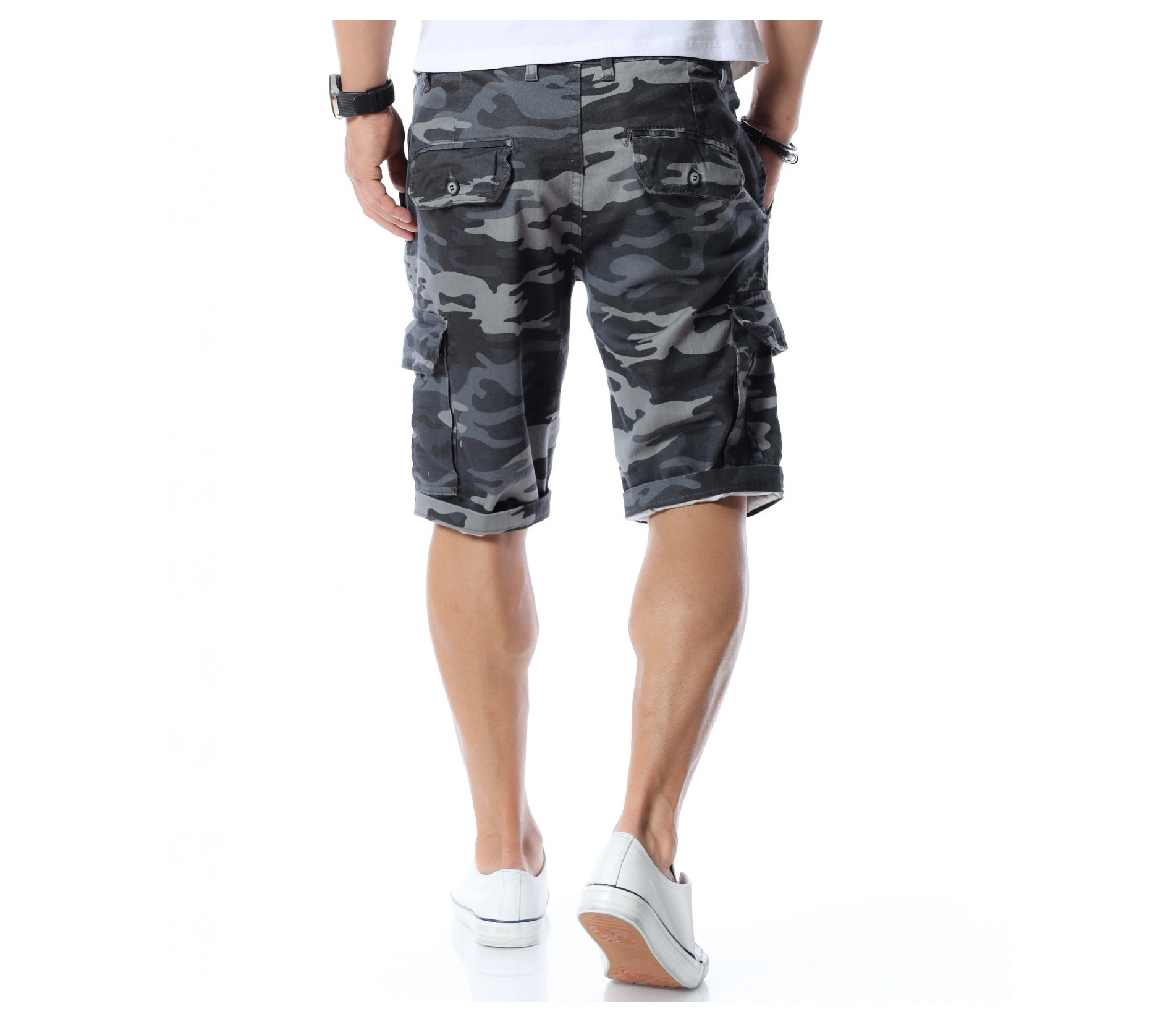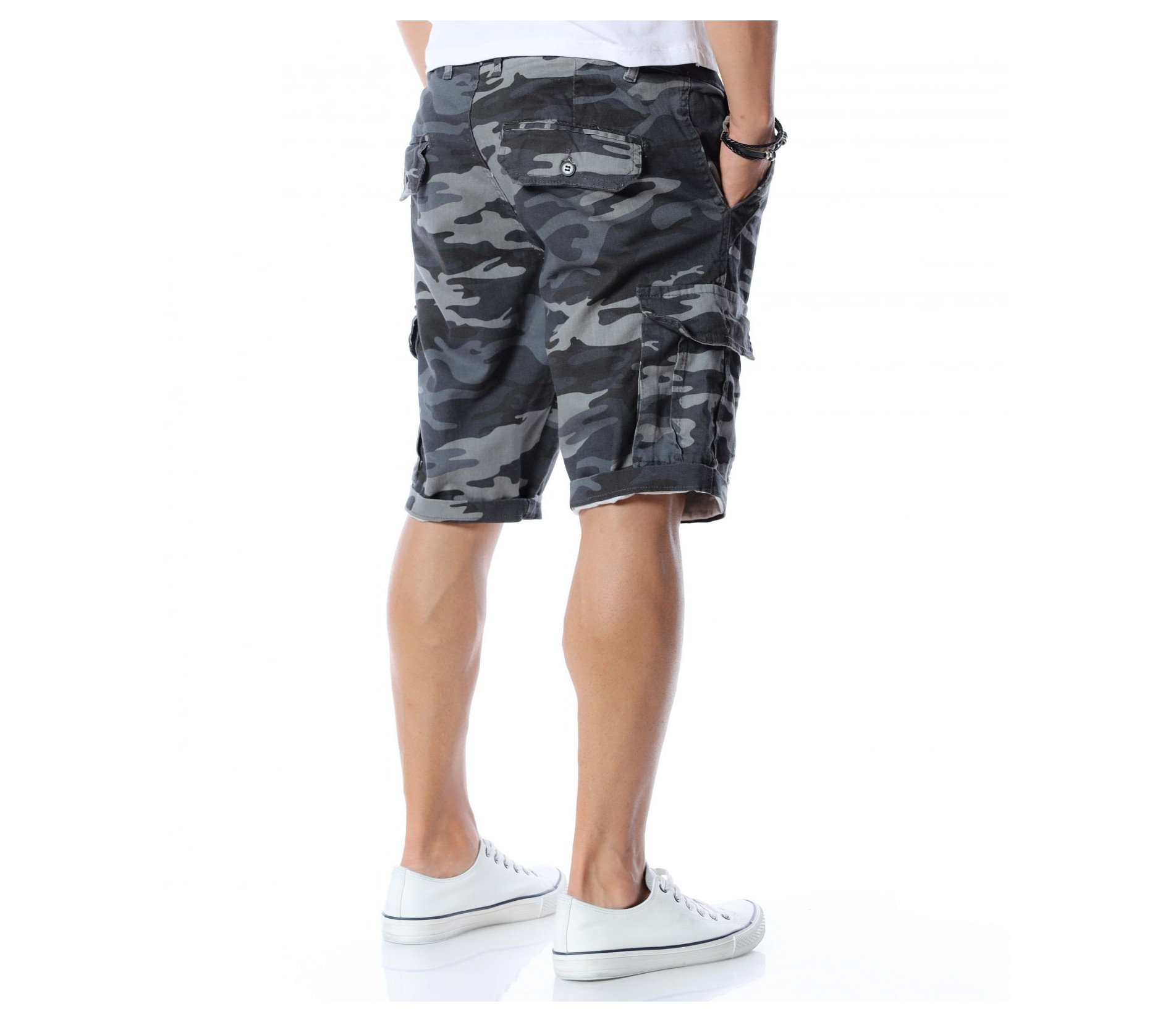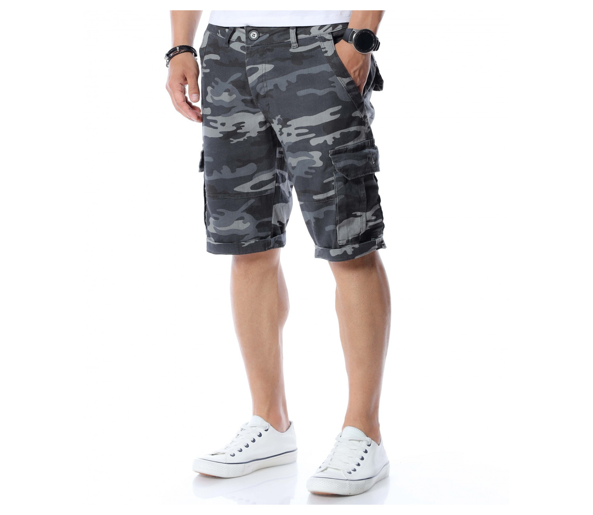 Ако се чудите как да разнообразите вашият ежедневен стайлинг се възползвайте от най-подходящата и ТОП алтернатива за 2021г. - къси панталонки в камуфлажен принт. Милитъри десенът е доста предпочитан и тази година, затова сме подбрали специално за вас този модел. Моделът разполага с четири стандартни джоба - два в предната и два в задната част. В страни са добавени и два карго, дълбоки джоба. Дължината е до коляното, като позволява подгъване по ваше желание или необходимост. Кройката е достатъчно свободна, без да изглежда широка. Изработен от 98%памук и 2%еластант, като придава на тялото комфорт и лекота. Комбинирайте с тениска, кецове и подходящи аксесоари.