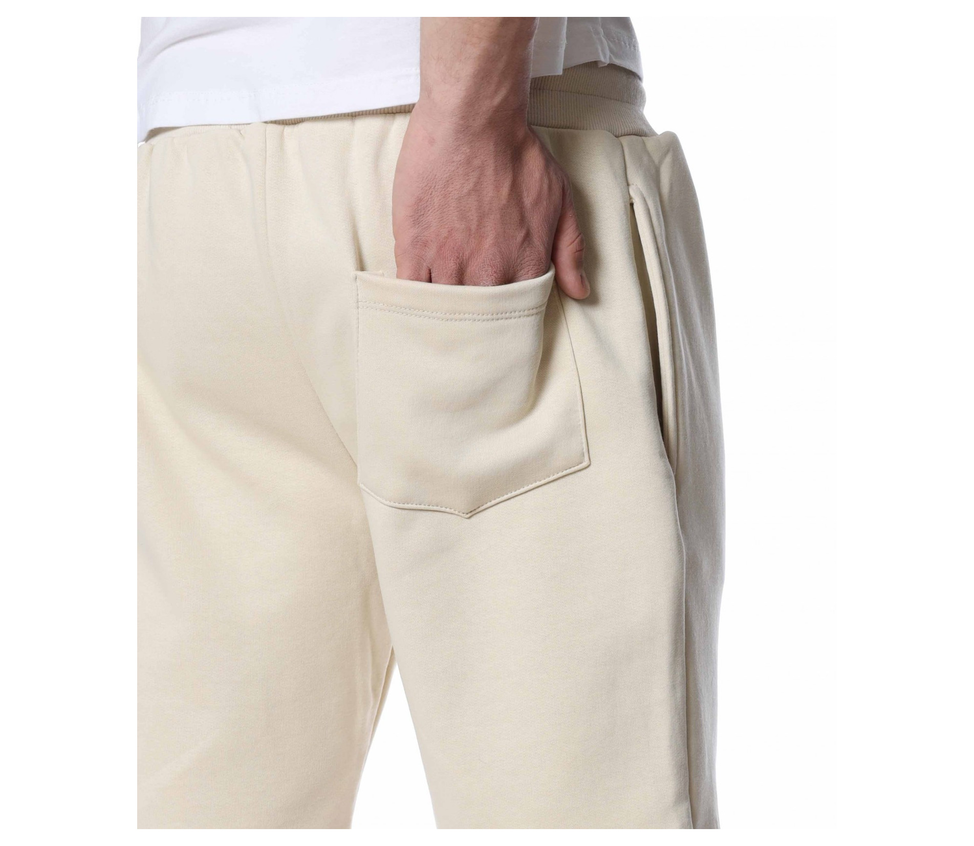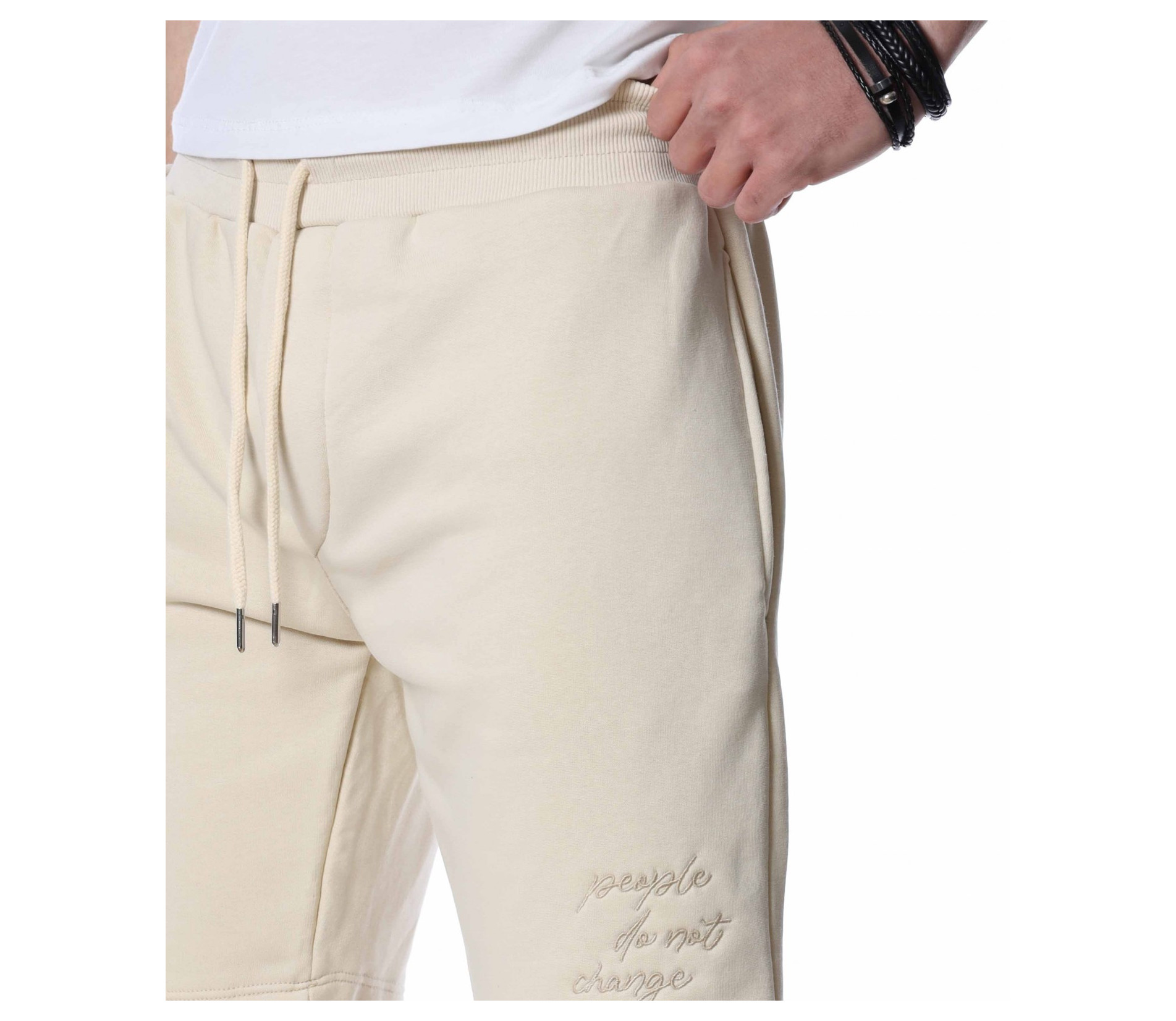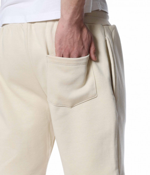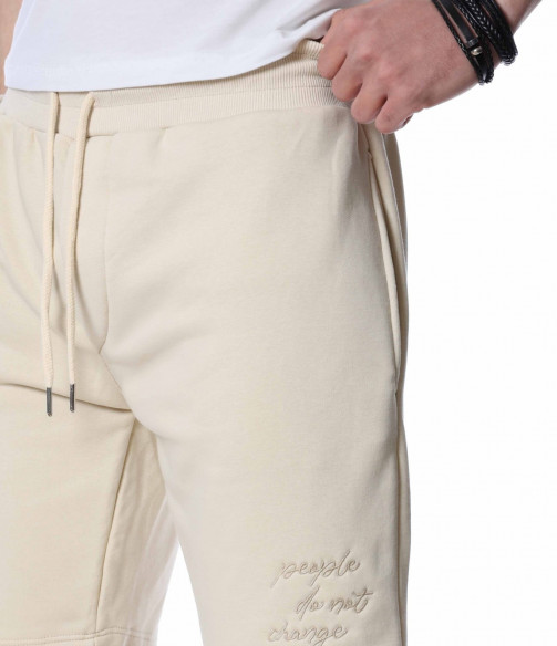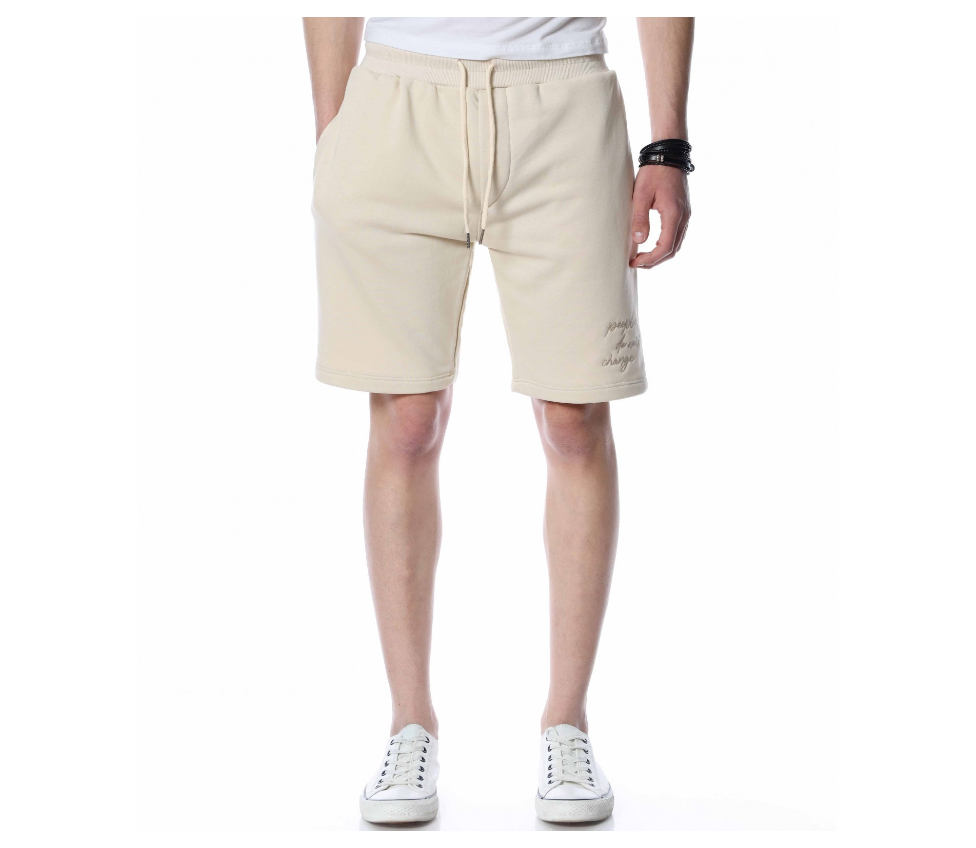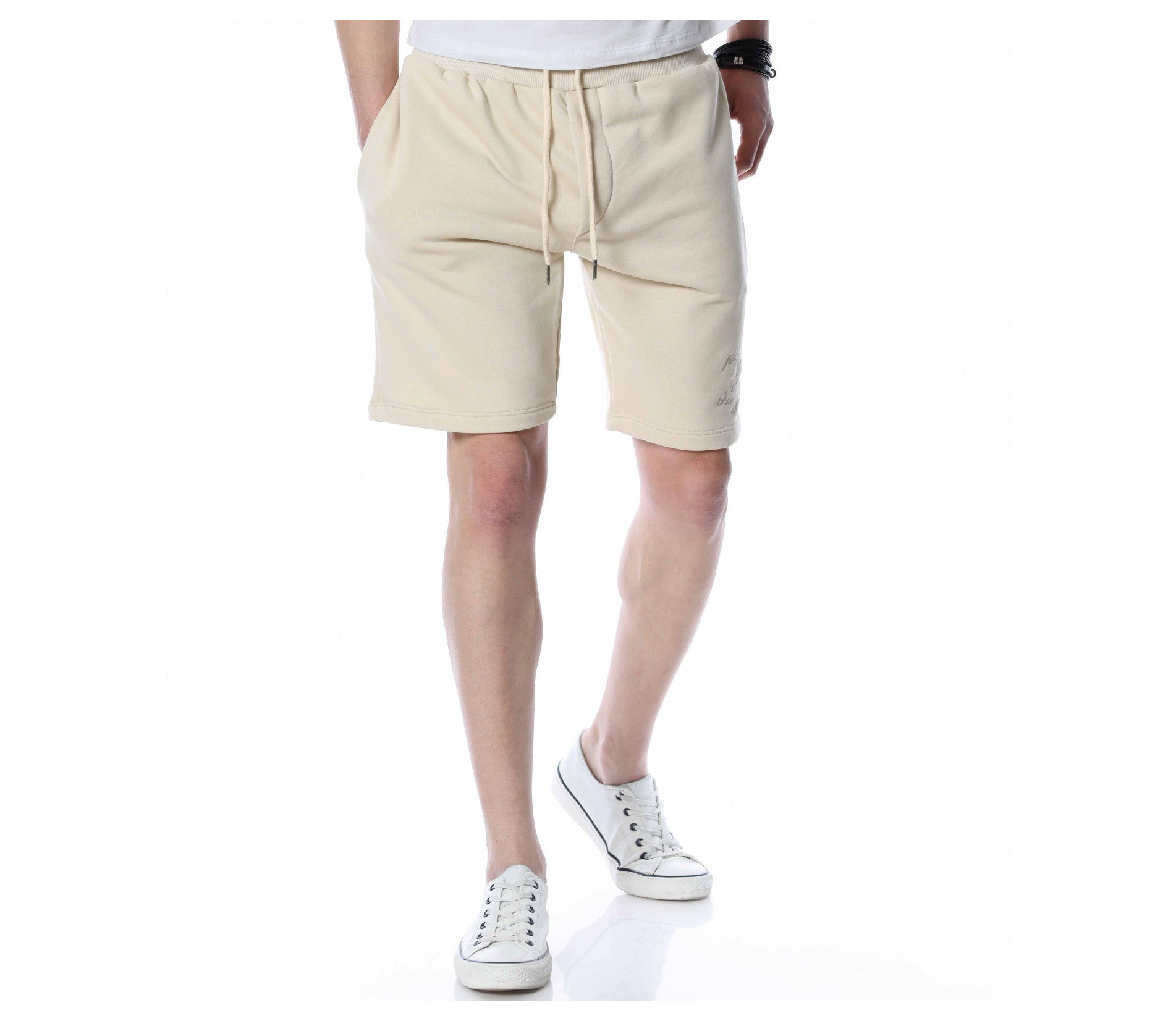 ОПИСАНИЕ НА ПРОДУКТА: Мъжки спортни панталонки, изпъстрени в най-актуалните цветове за 2022г – бежов, черен и сив. Като основен акцентиращ елемент са симетрично поставени италиански джобове, които ви дават удобство и стил. Кройката на панталонките са леко свободни с дължина до коляното, с което осигурява освен ефектен стайлинг, гарантиран комфорт, на който знаем че държите. В областта на кръста е поставен широк ластик, в който е прокарана и връв, с която лесно да регулирате ширината им. В долната част на левия крачол е бродиран ръкописен надпис в същия цвят, като основния. Бъдете модерни, като не правите компромис с качеството и комфорта, и комбинирате този актуален модел мъжки къси панталони с щура тениска, удобни обувки и се насладите на приятна лятна разходка.