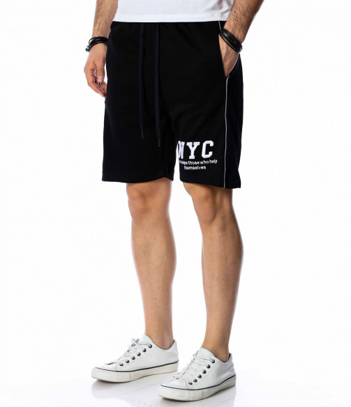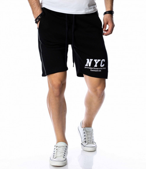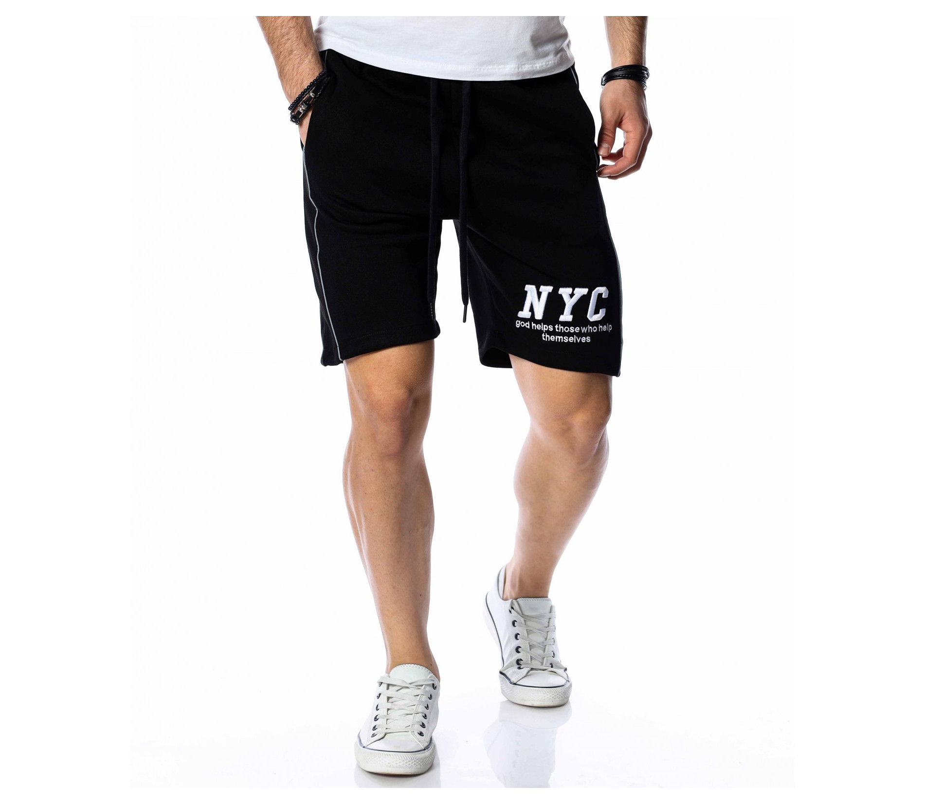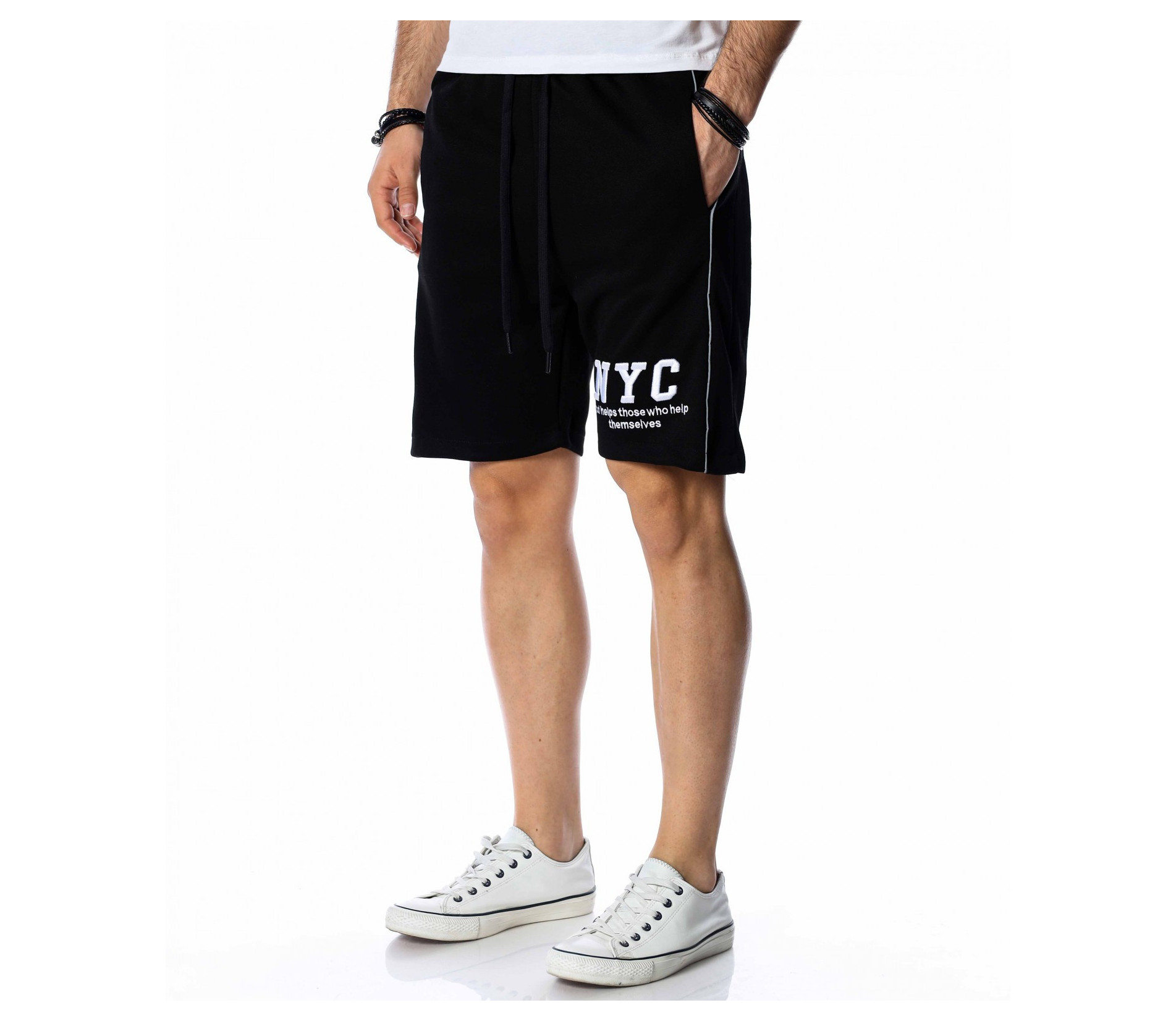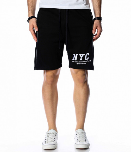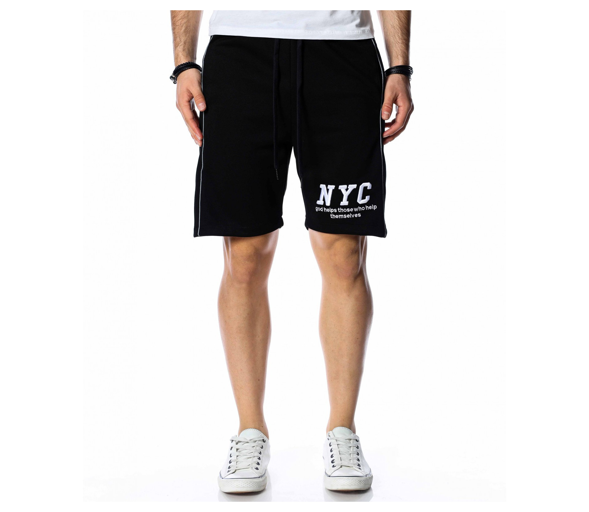 ОПИСАНИЕ НА ПРОДУКТА: Мъжки памучни къси панталони в наситено сив или черен цвят. Изключително удобен модел, подходящ за ежедневието. Ако си почитател на спортната визия този модел е точно за теб. Кройката на късите панталони е свободна, с леко паднало дъно. Крачолите са широки, осигурявайки комфорт и непринудена свобода при движение. Дължината е до коляното. Върху предната страна са поставени два джоба, тип \"италиански\", както и декорация с големи букви NYC на единият крачол. В областта на кръста има широк ластик с връзки за допълнително стягане. Заложи на удобството с модел от атрактивна спортна линия. Комбинирай с тениска в цветен нюанс и кецове за завършване на твоята визия.
