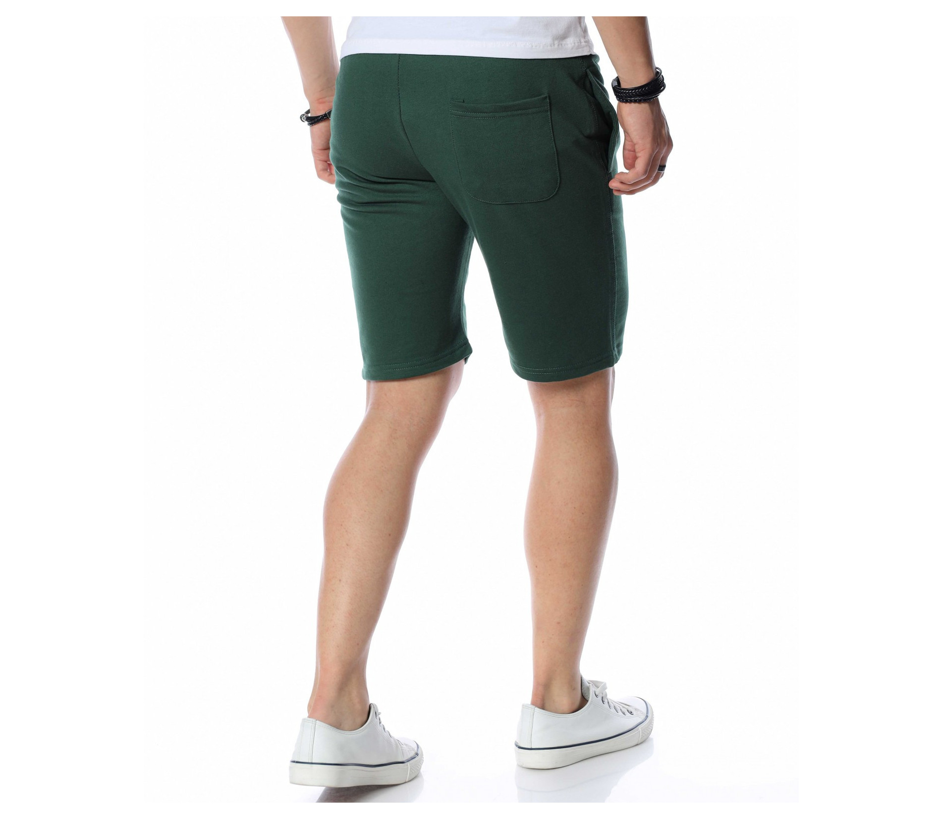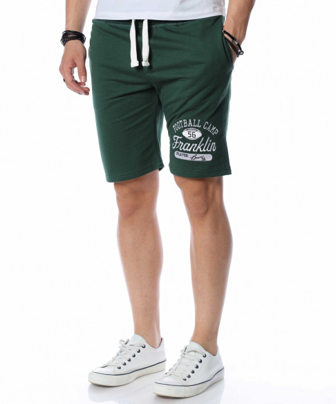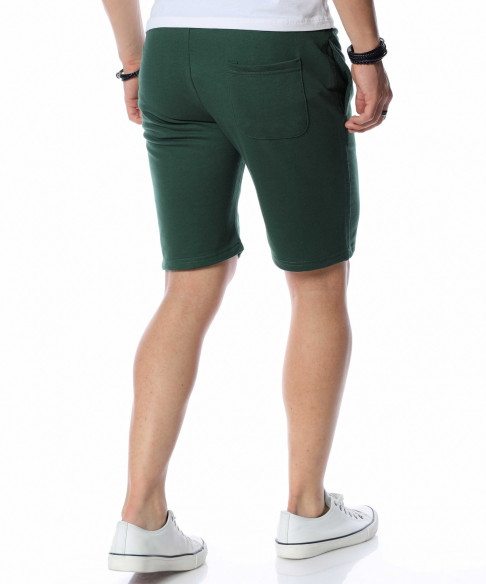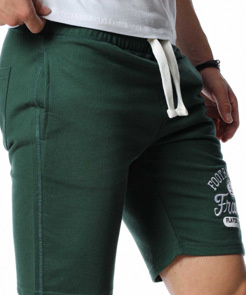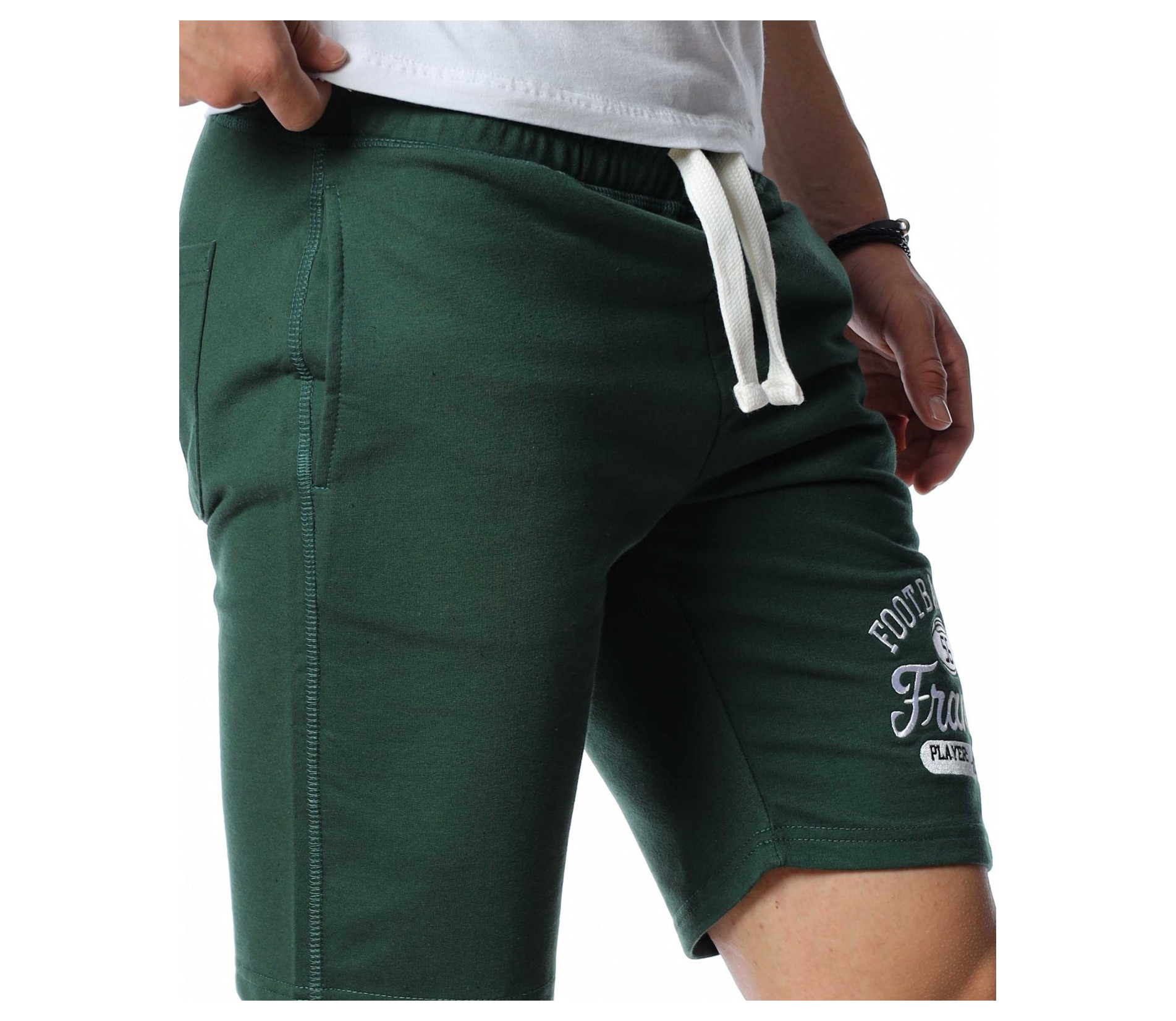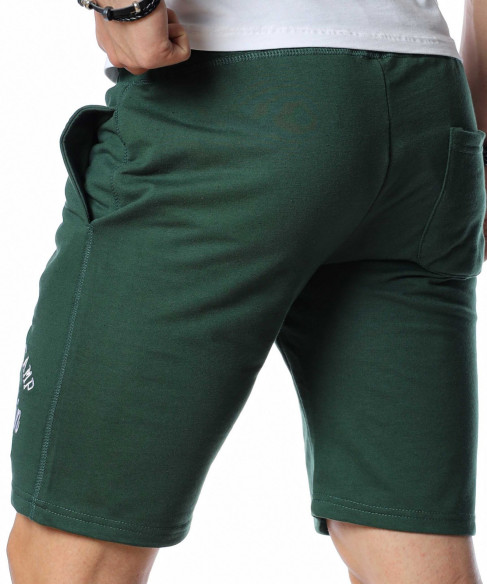 ОПИСАНИЕ НА ПРОДУКТА: Модерни, семпли и удобни - с тези думи съвсем смело можем да опишем този модел мъжки къси памучни панталони, чиито десен е представен в две цветови предложение – зелен и черен. Комфорта идва от това, че късите панталонки са с ластик на кръста и връзки за допълнително стягане. Изработени са качествена, памучна и мека материя, която осигурява свобода на движенията. В предната част са поставени два джоба, тип италиански, а в задната страна джоба е един със стандартна форма. Върху единия крачол, в неговата долна част е поставена емблема и релефни надписи в различен шрифт. Кройката на модела е леко вталена. Бъди атрактивен в класически модни къси спортни панталони. Комбинирай по твой вкус за един неподражаем стайлинг.