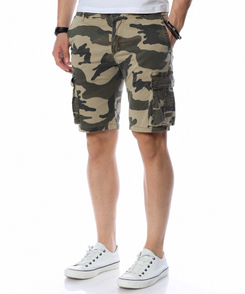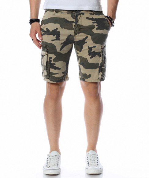 Къси камуфлажни карго панталони 13764 - Бежов камуфлаж