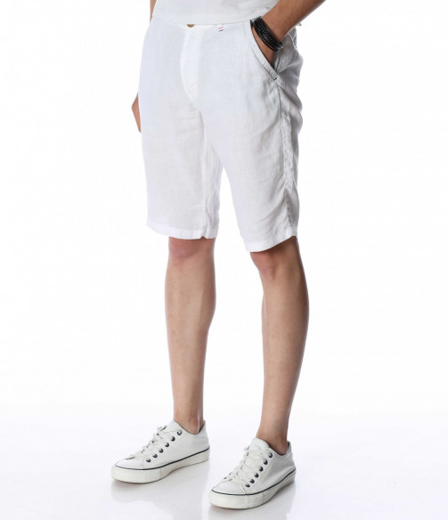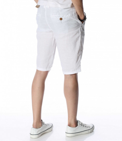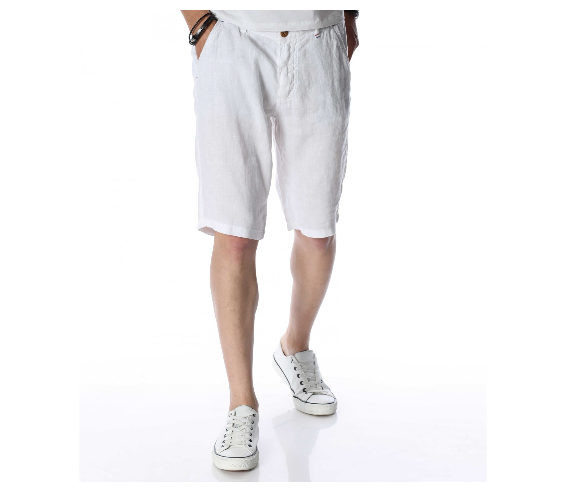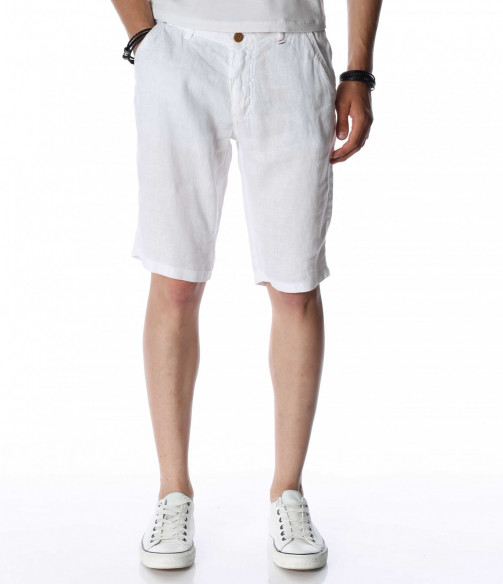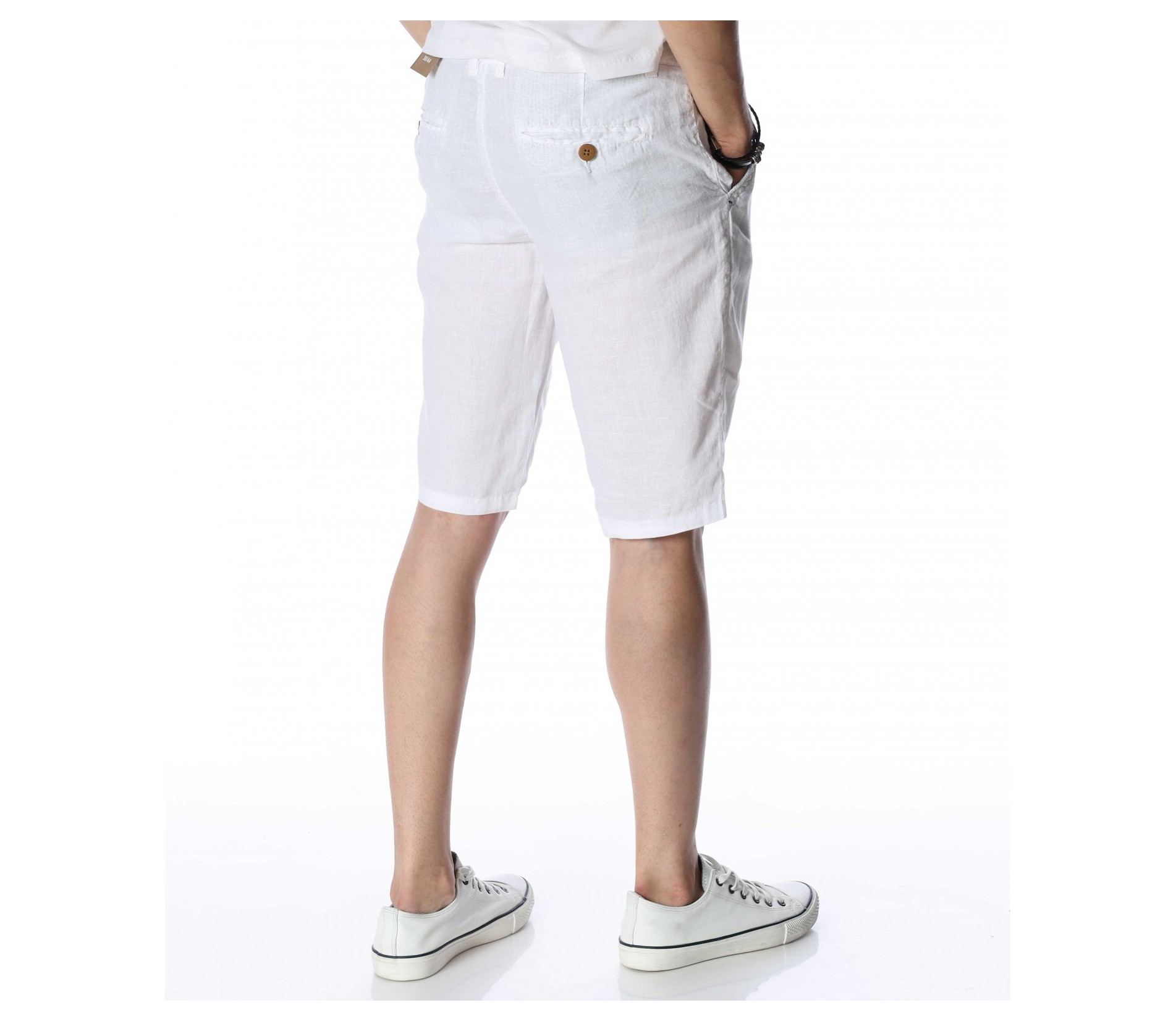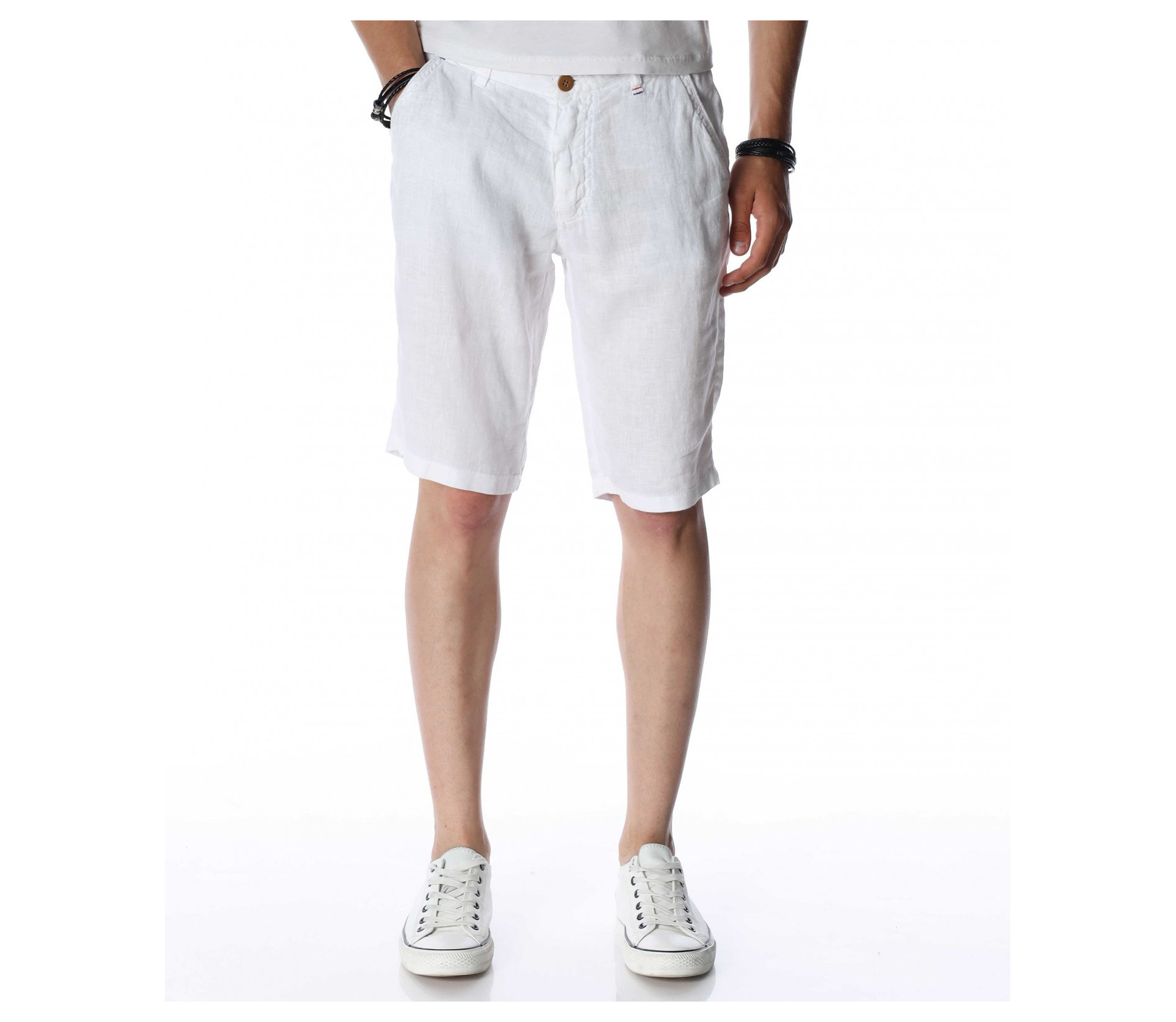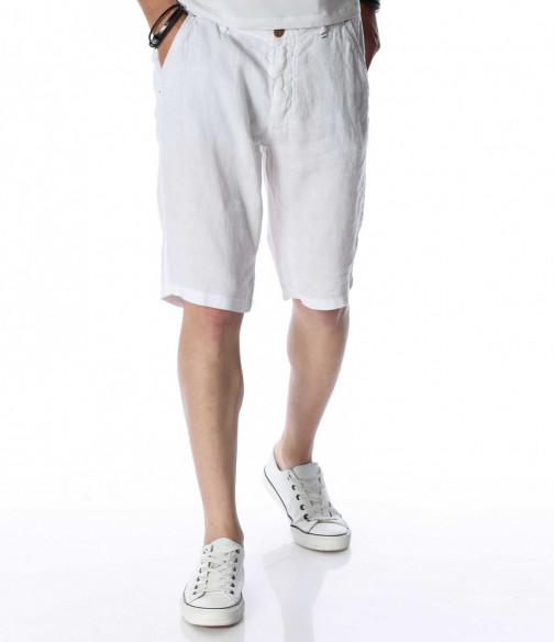 ОПИСАНИЕ НА ПРОДУКТА: Ако комфорта е на първо място във Вашия гардероб, това предложение е специално за Вас. Атрактивни мъжки къси панталони, изработени от 100% висококачествен лен, осигуряващ удобство и прохлада, през горещите летни дни. Моделът предлагаме в четири цвята: бял, бежов, тъмносин и зелен, които лесно се комбинират с любимите Ви и модерни десени. В задната част са разположени два ненатрапчиви джоба, които декорират гърба и придават завършен вид на панталонките. Дължината на моделът е къса, над коляното, като е с възможност за навиване. Закопчаването се състои от едно масивно външно копче и скрит под маншет, метален цип. Комбинирайте мъжките ленени къси панталонки със спортна риза, модерни еспадрили и се насладете на прохладна лятна разходка.