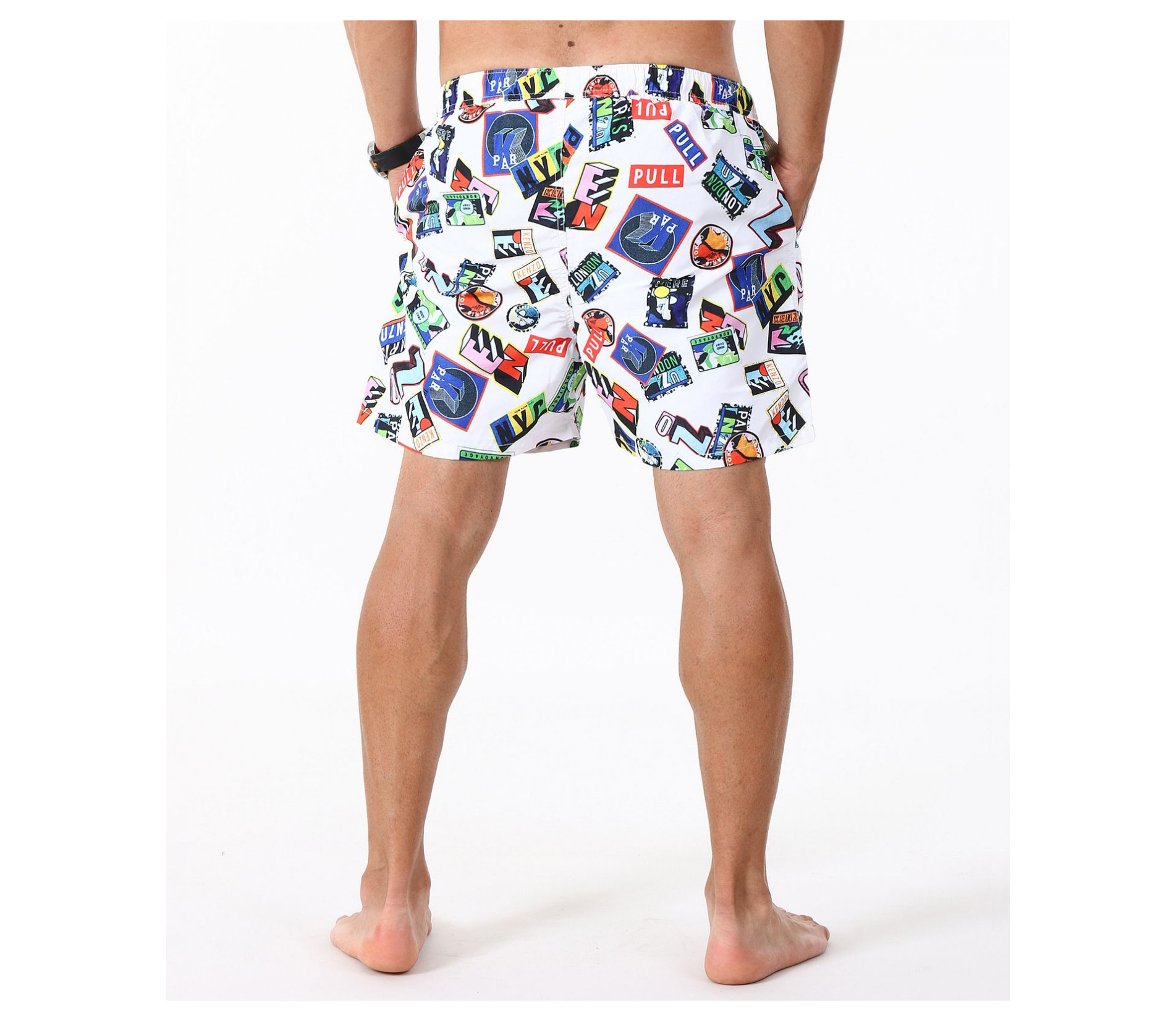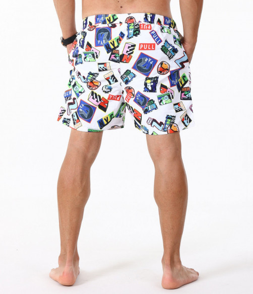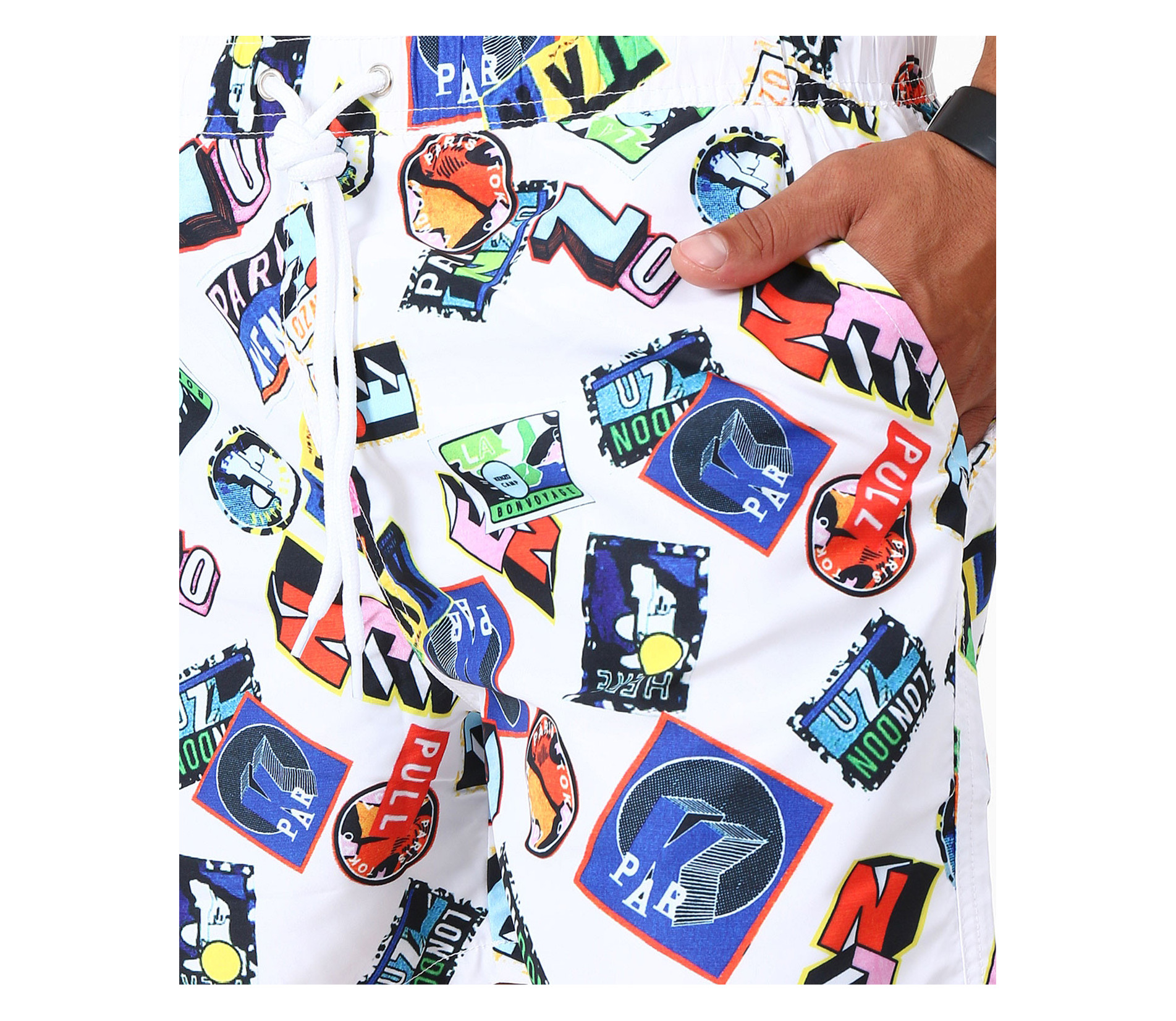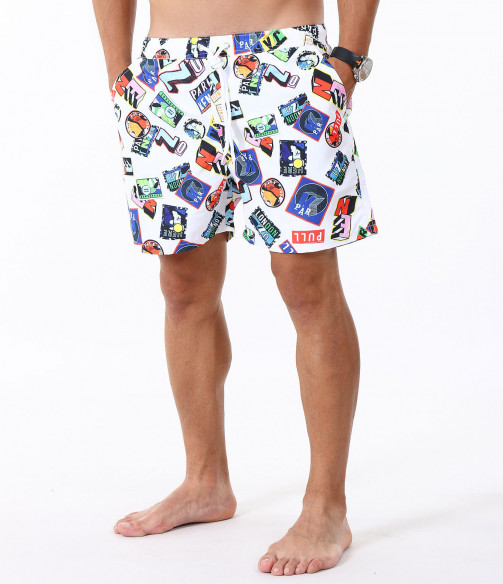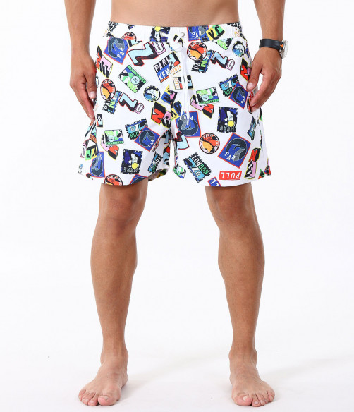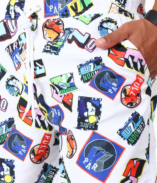 Описание на продукта: Мъжки цветни плажни шорти, контрастно изпъстрени в бяла основа. Акцентите по моделът са симетрично поставени елементи, пъстри и свежи, идеално прилягащи на най-харесвания сезон от годината-летния. На няколко места от щампите, ясно се отличава логото на марката, също пъстро изписана KENZO. В областта на кръста е разположен широк ластик, предназначен за Вашето удобство, през който е прокарана и връзка, с помощта на която лесно да коригирате талията. Дължината им е актуалната за сезон на 2016г, къса до бедрата, подходяща за любителите на слънчевия загар. Мъжките плажни шорти се комбинират идеално с доброто Ви настроение и горещия пясък.