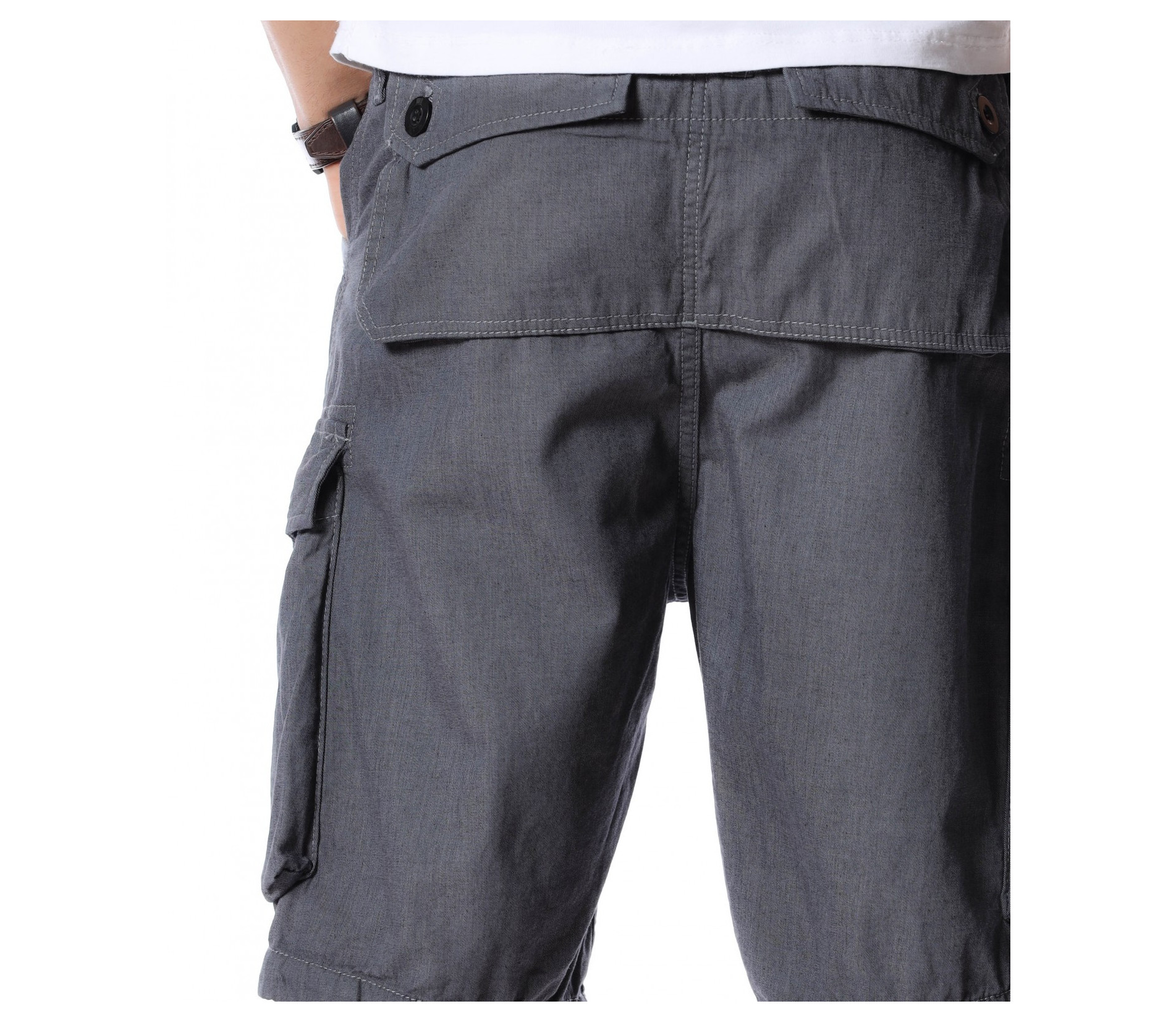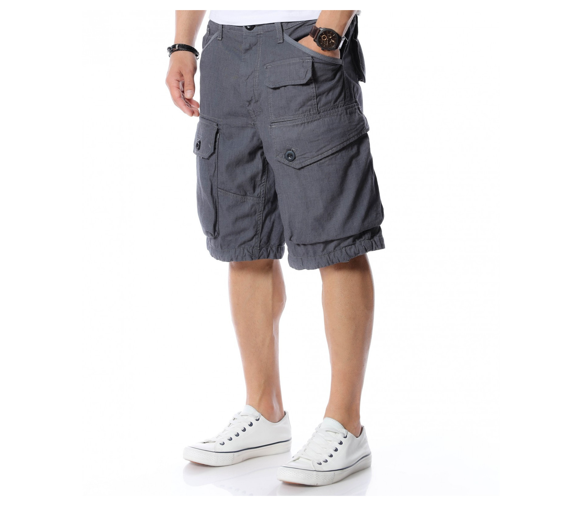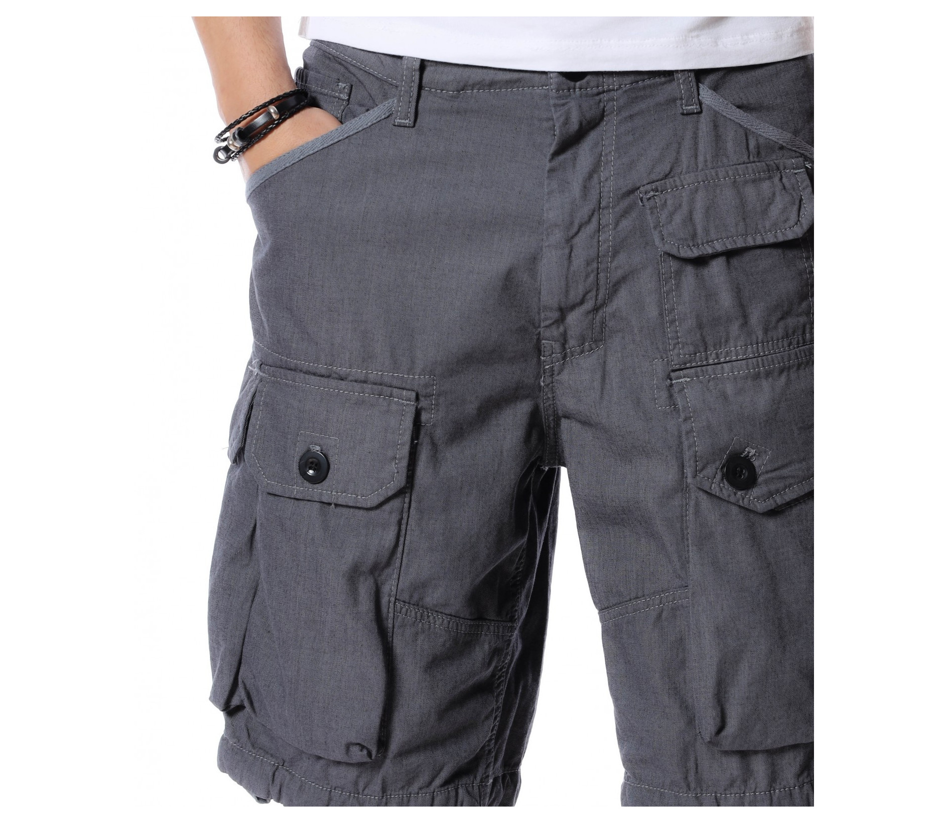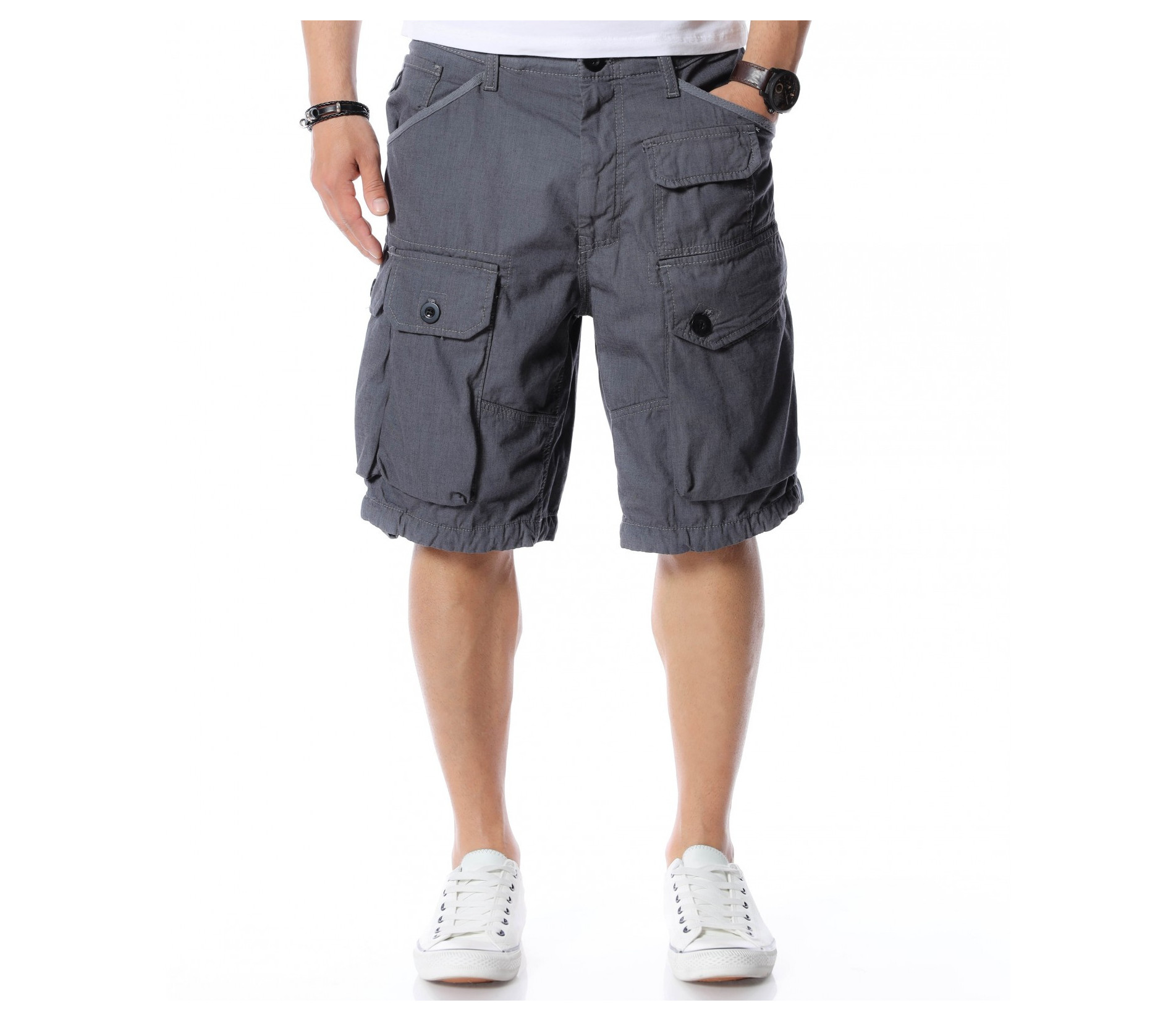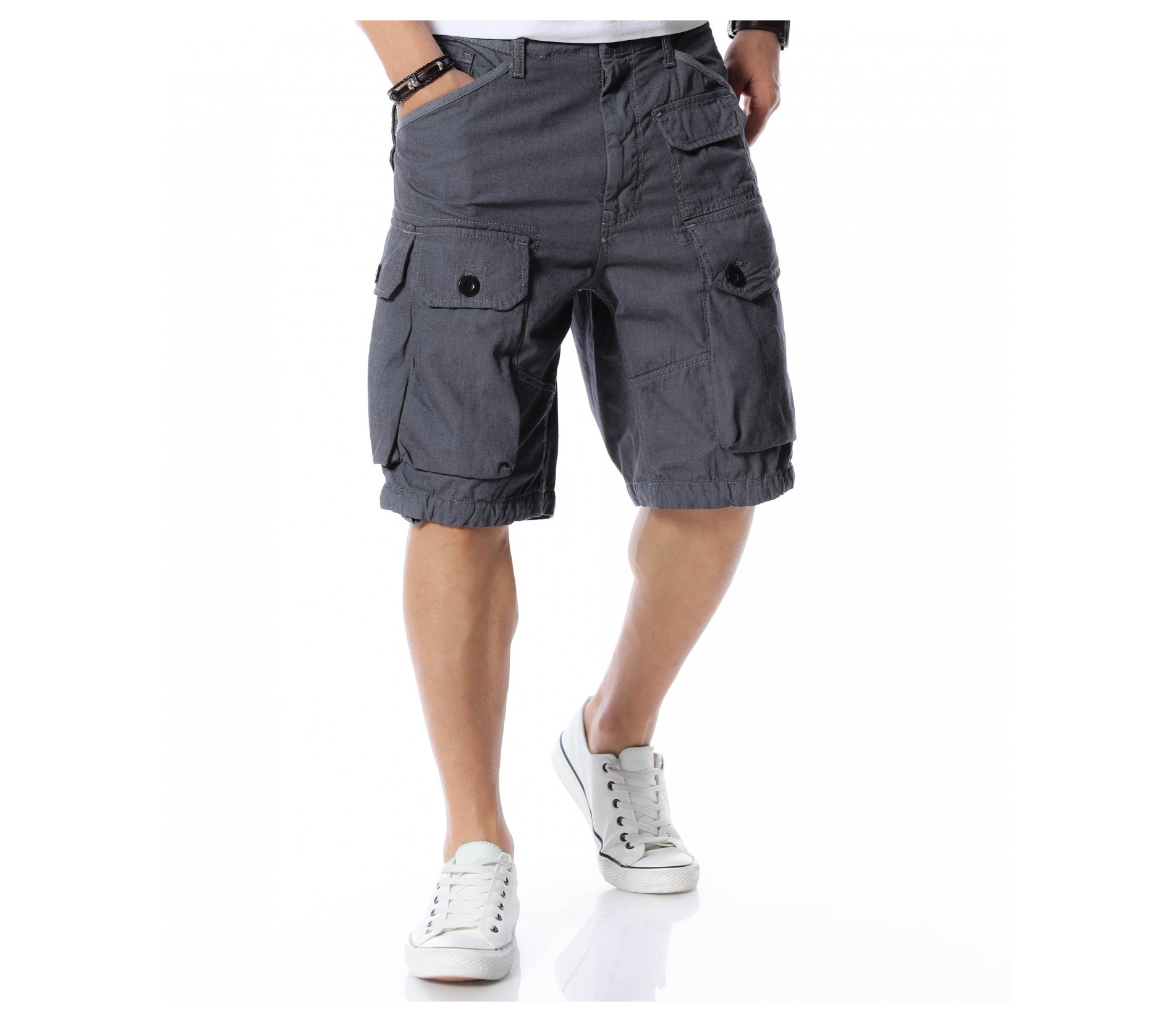 Гардеробът трябва да ви позволява за всяка ситуация да имате подходящо облекло, с което да се чувствате и изглеждате добре. Затова сме помислили за модните тенденции и ви представяме - къси мъжки карго панталони. По моделът откриваме в страничната част - два масивни карго джобове с капачета, които се пренасят и в предната част, а над тях са разположени два стандартни джоба. На талията са позиционирани гайки, за да може по-лесно да добавите колан по ваше желание. Кройката се отличава с достатъчно свобода, а меката материя осигурява незаменим комфорт на тялото. В зависимост от вашите стилови предпочитания, дизайнът позволява широко приложение и може да комбинирате с подходящи обувки, тениски, а защо не и нещо по-официално?