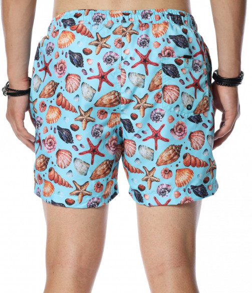 ОПИСАНИЕ НА ПРОДУКТА: За да сте в унисон с приятните летни дни на плажа е нужно да подберете подходящия бански. За да Ви улесним съчетахме удобството с интересния дизайн, създавайки за Вас супер свеж мъжки бански тип шорти. Борд модела е изпъстрен в ненатрапчив, но ефектен морски принт, който успява с лекота да впечатли всеки поглед. Залагайки на идеалния outfit, дори и на плажа, в който да се чувствате максимално комфортно, от вътрешната страна на банския е поставен мрежест бандаж. В областта на талията е разположен и неизменният ластик, в който е промушена и връзка, позволяваща регулирането на ширината. Дължината на шортите за плаж е силно предпочитаната къса, над бедрата, за да може да уловите слънцето максимално. Този модел мъжки борд шорти успяват да гарантират удобство както при морския отдих, така и при плуване.