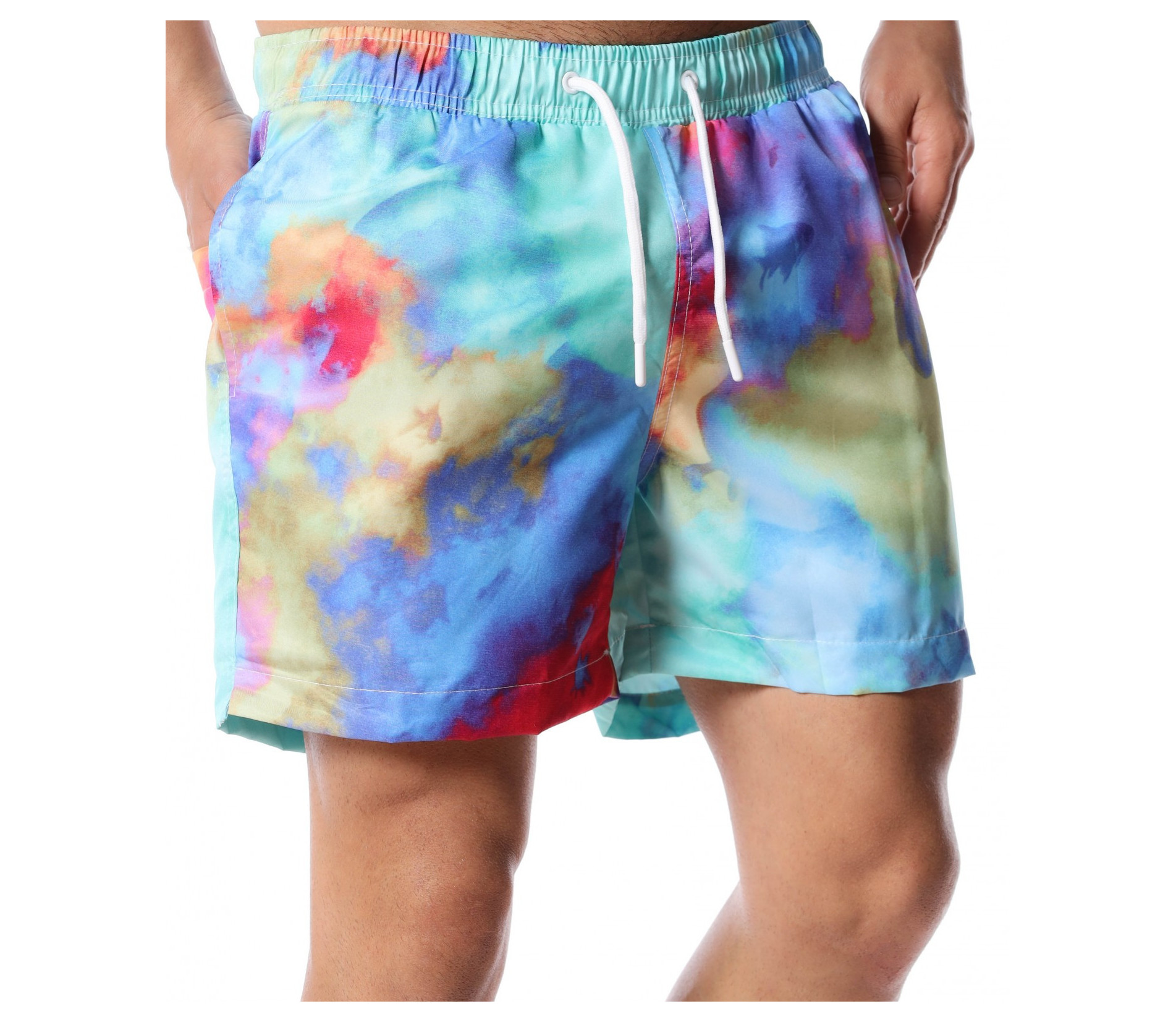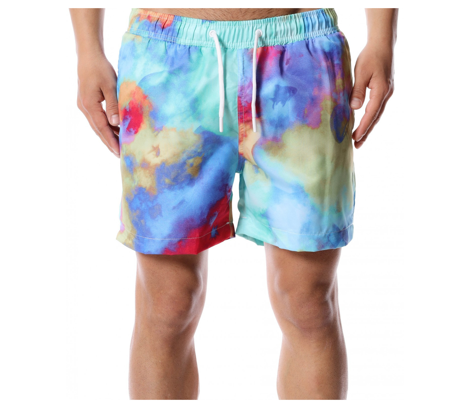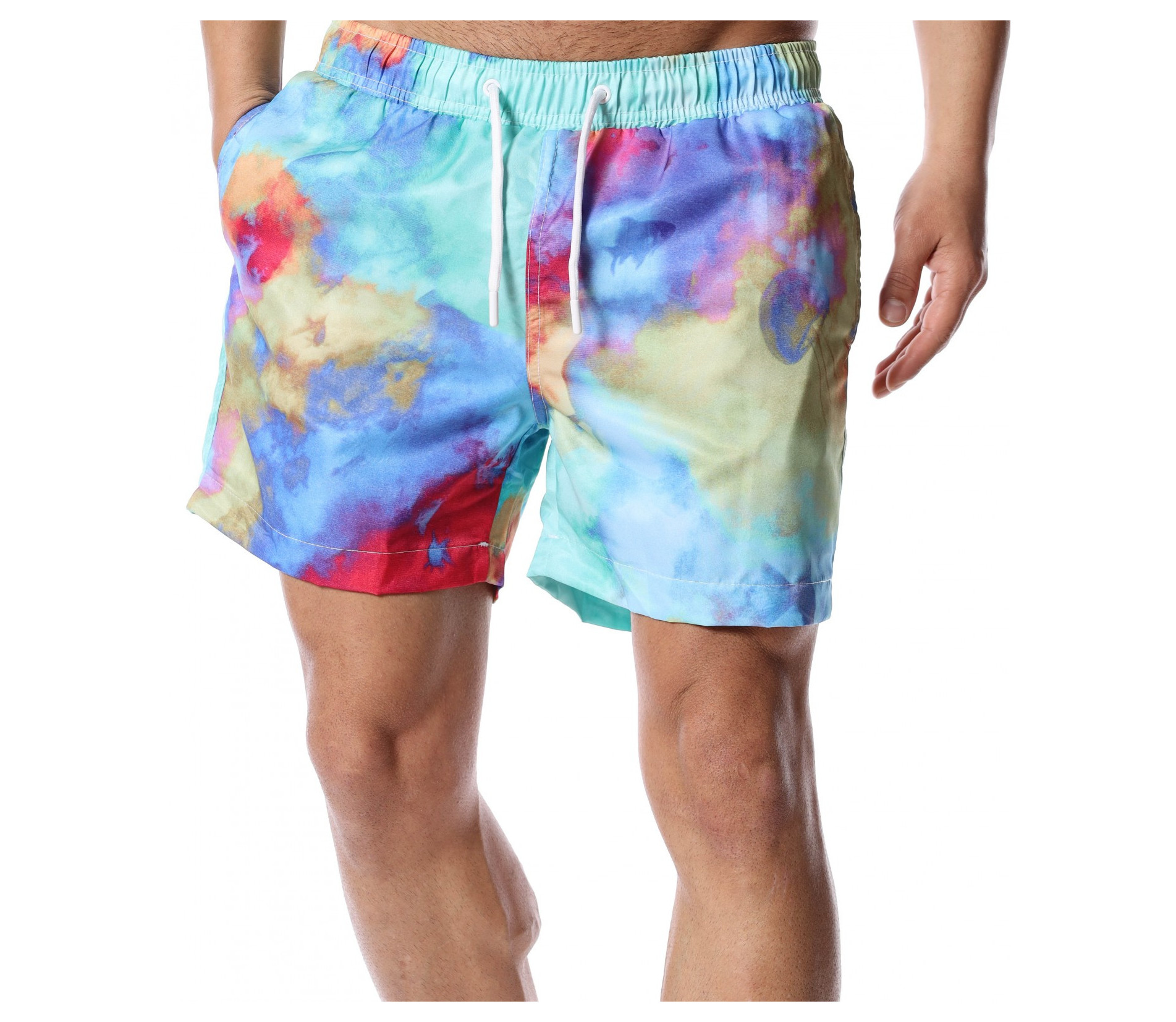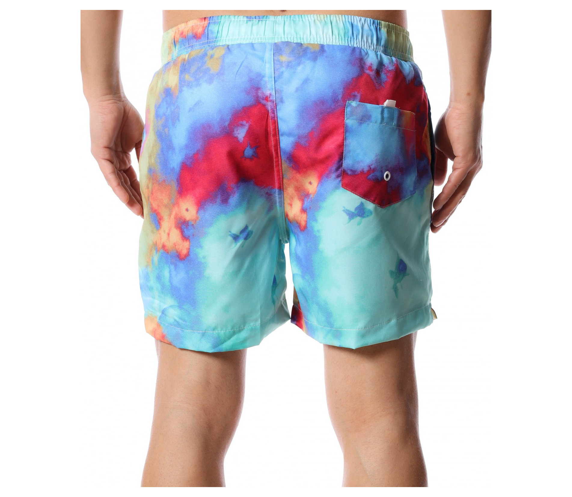 Слънце, златист пясък и разхлаждащо море - за това мечтаем всяка година. Представяме ви най-новите ни модели бански, които ще бъдат хит през настъпващият, летен сезон. Основата на моделът е синя, а по цялата си дължина (в предната и задната част) се преливат разнообразни цветове. На талията са поставени връзки, в бялата гама, с които лесно да регулирате ширината. Като декорация в задната част и отстрани са добавени стандартни джобове. Благодарение на издръжливата и удобна материя от полиестер ще се радвате на прохлада и лекота през цялото лято. Ако искате да бъдете стилни и да сте в крак с модните тенденции, дори и на плажа или край басейна, направете гардеробът си горд притежател на качествен и забележим бански, с който няма да останете незабелязани.