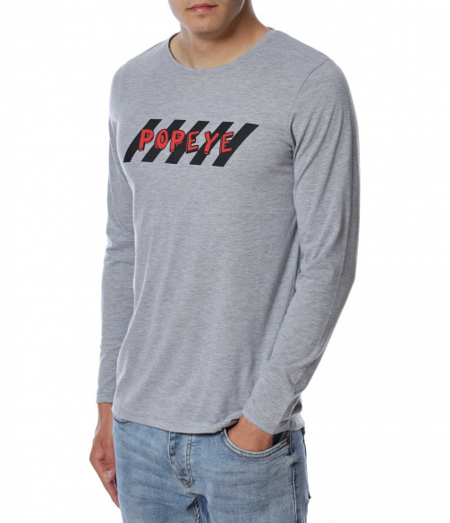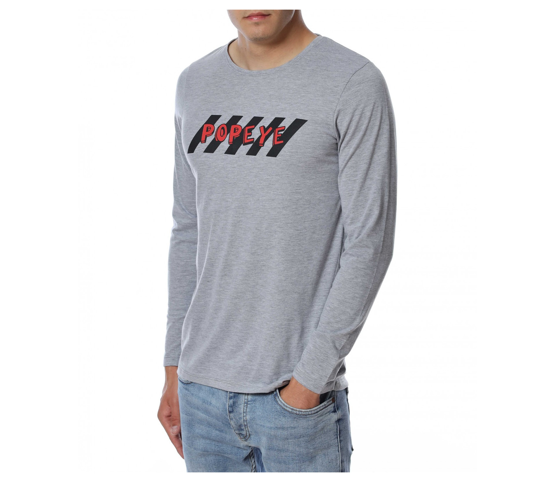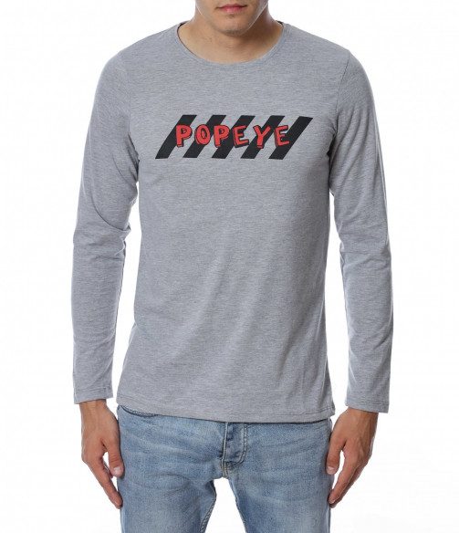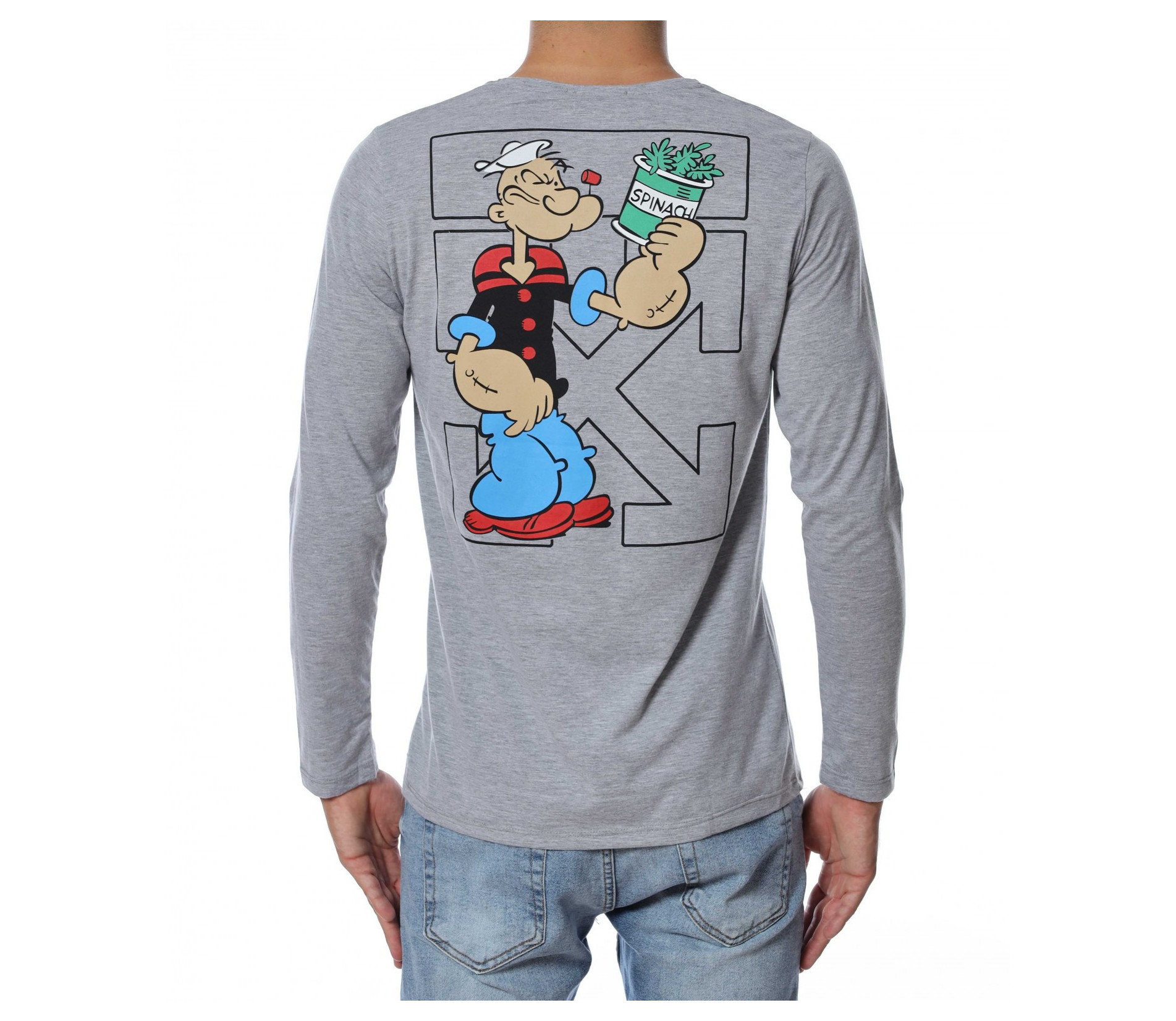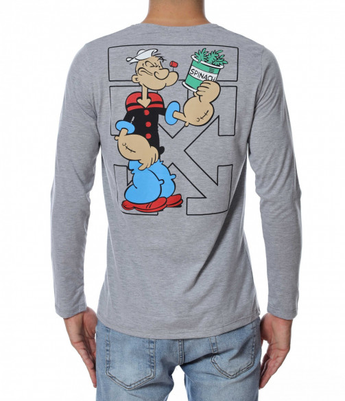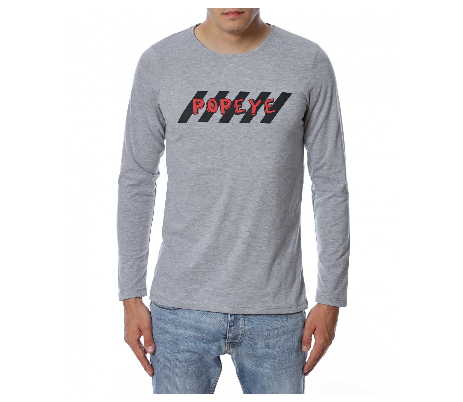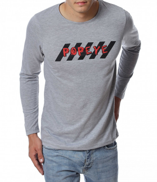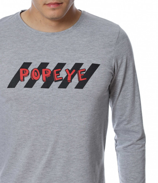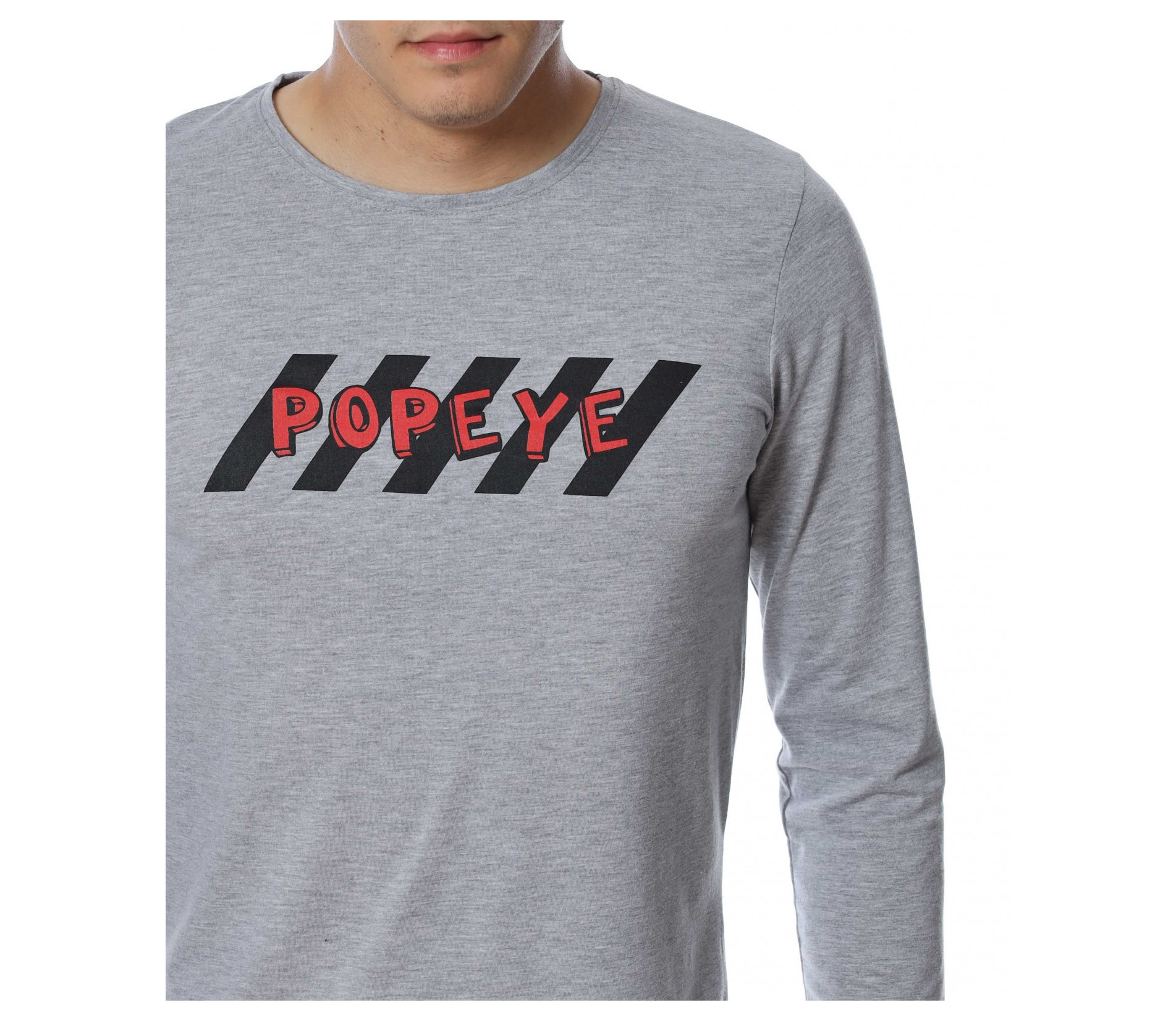 Мъжка блуза с анимационен акцент \"Popeye\". Основата е едноцветна, а в предната част е позициониран цветен надпис. В задната част е разположена апликирана щампа. Деколтето е овално, а кройката следва формите на тялото. Изработена от мека, памучна материя и може да комбинирате с дънки, панталони, кецове и удобни обувки.