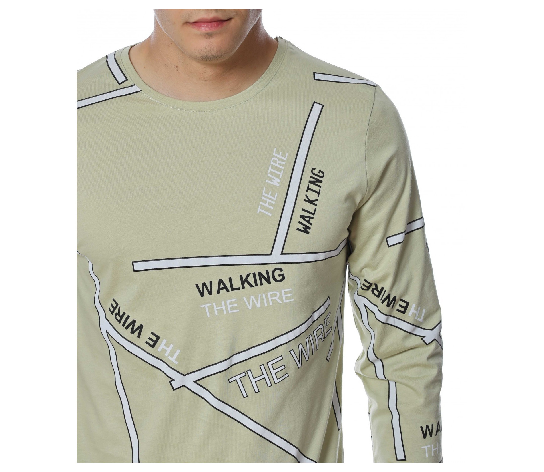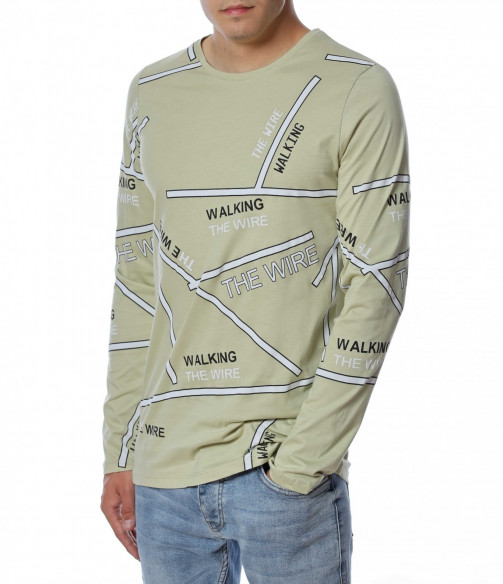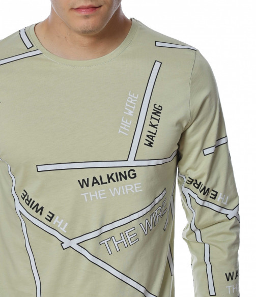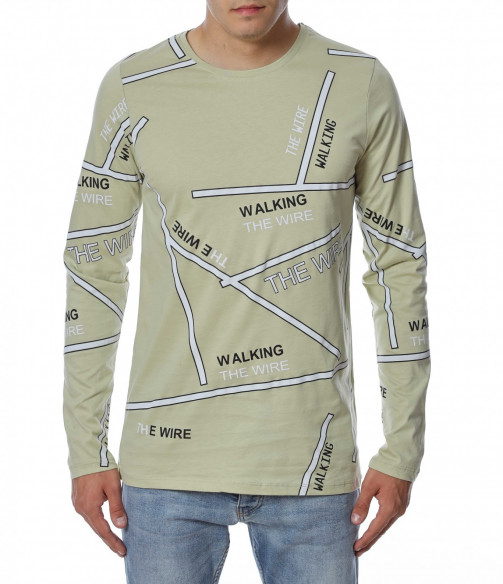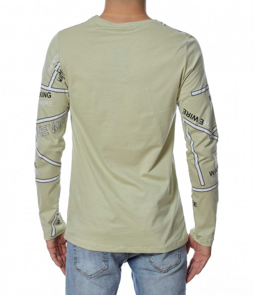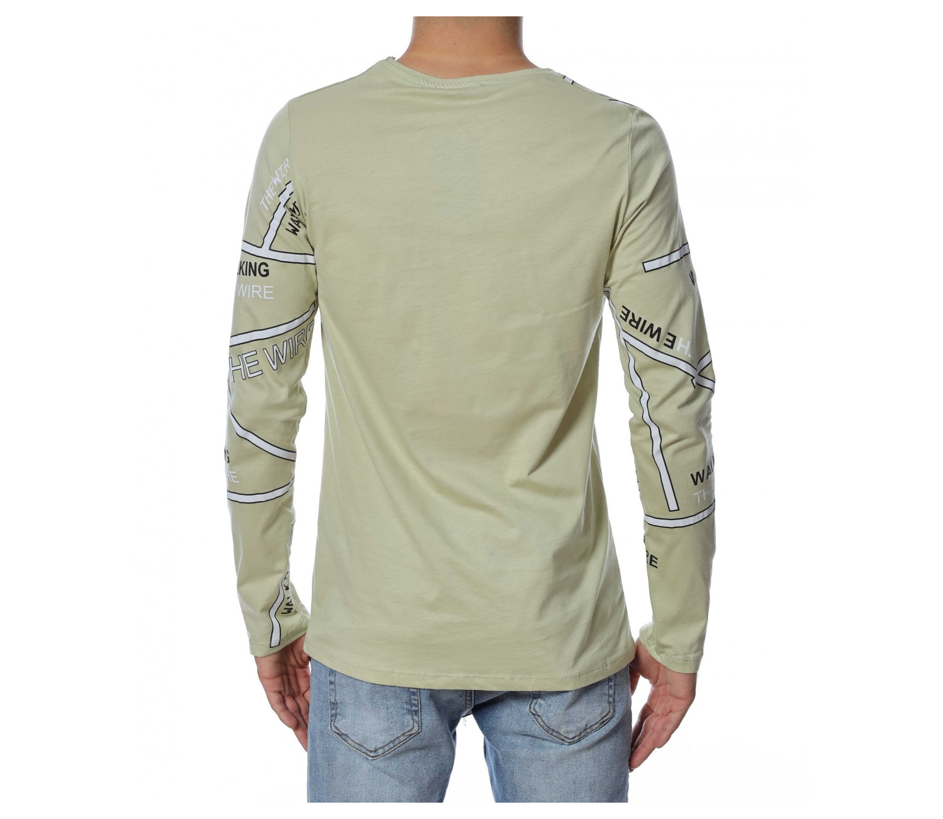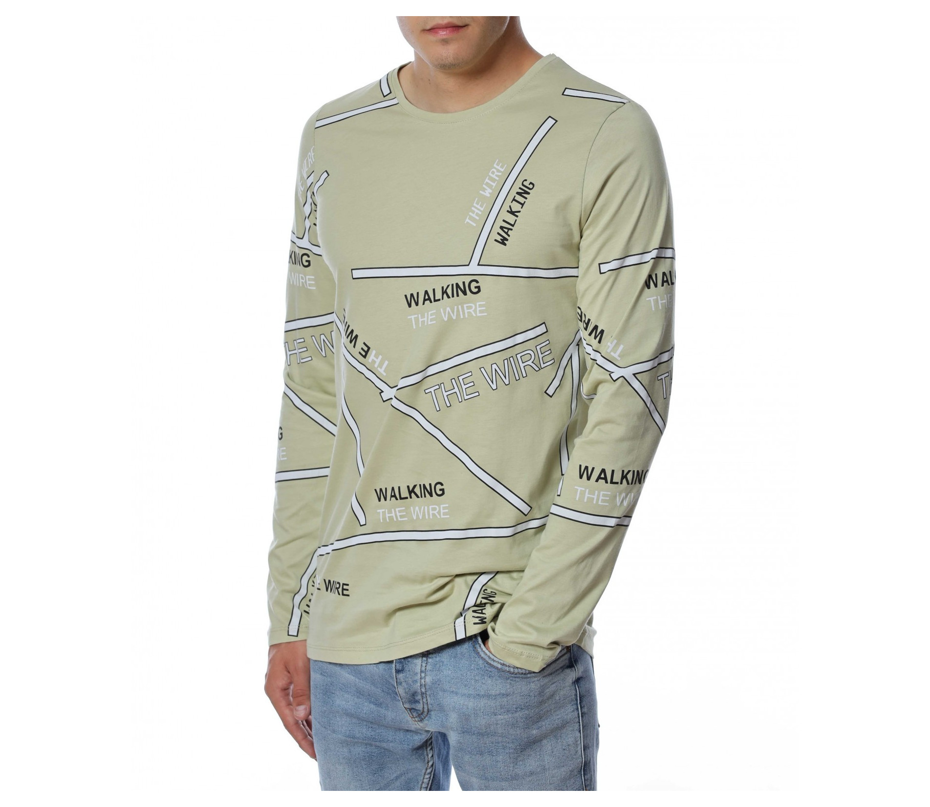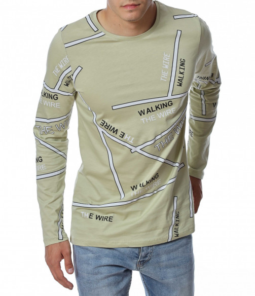 Мъжка блуза с дълъг ръкав. Основата е едноцветна, а отпред е разположена нестандартна декорация и щампирани букви. Дължианта покрива колана, а деколтето е овално. Гърбът е изчистен от елементи. Комбинирайте с дънки, панталон, кецове, удобни обувки и любим аксесоар.