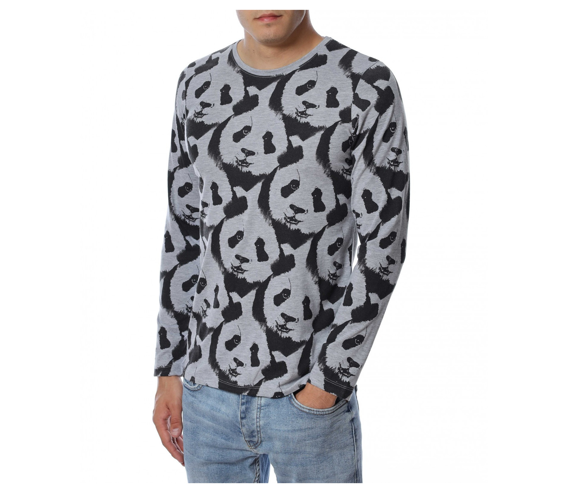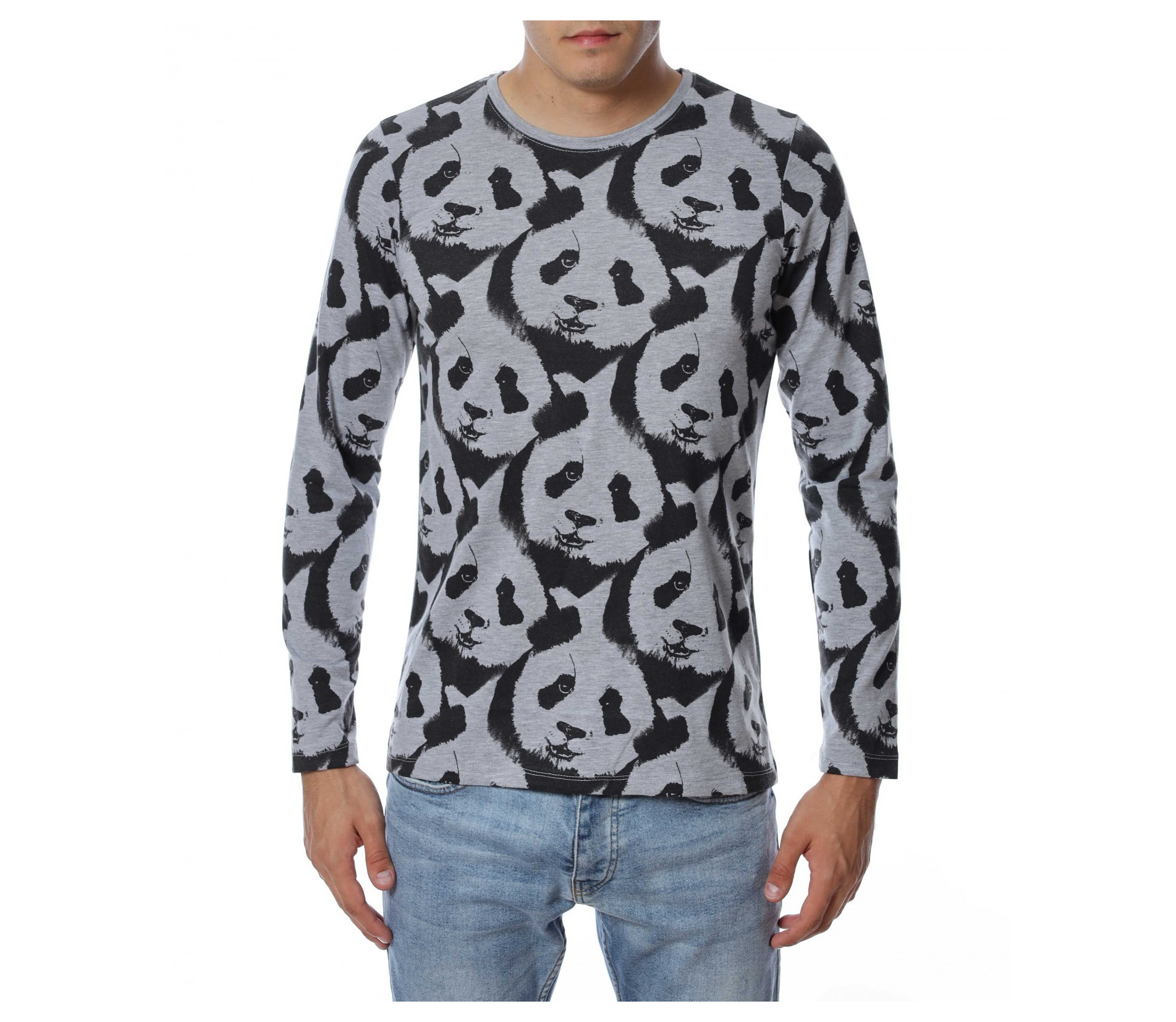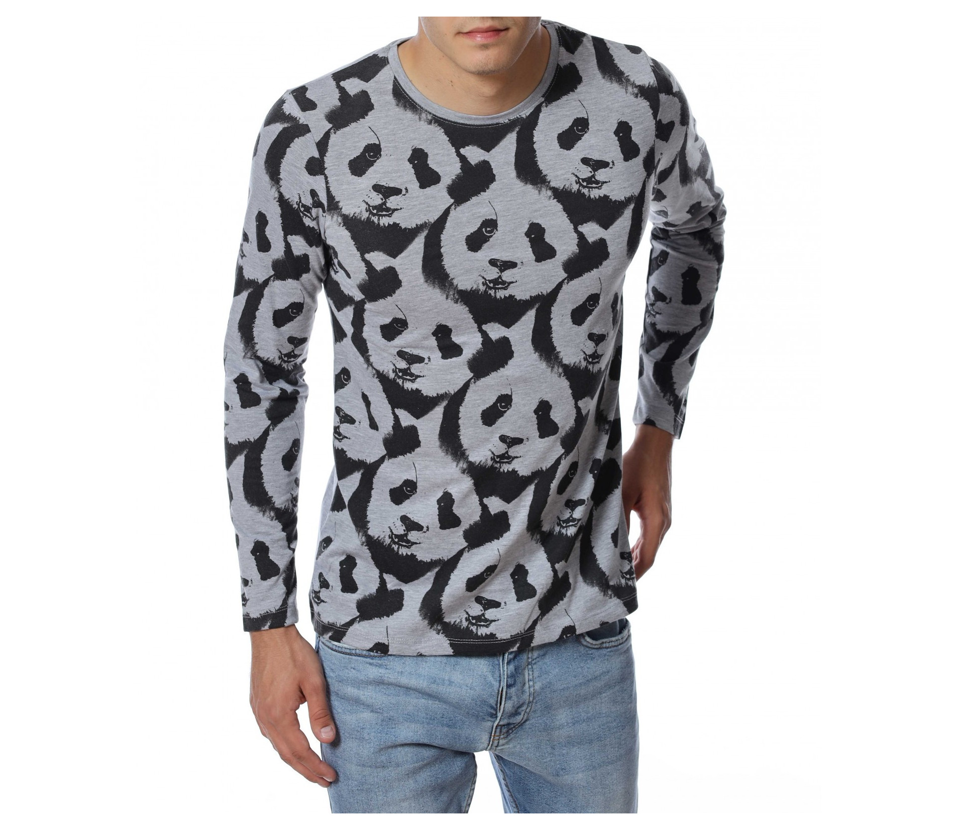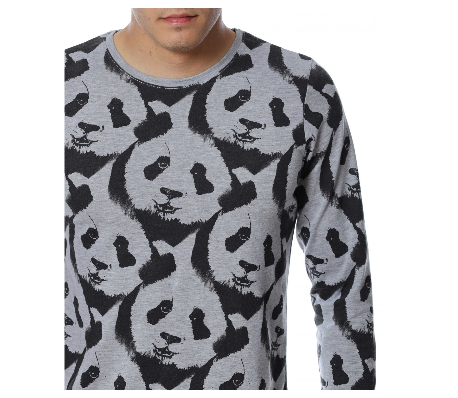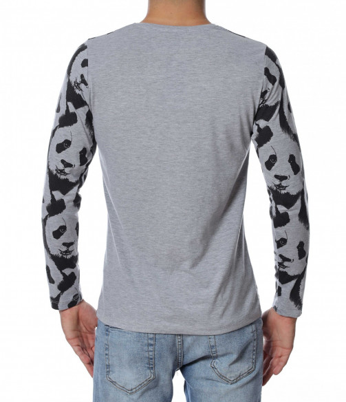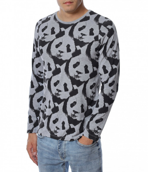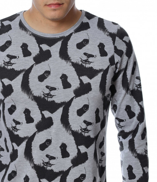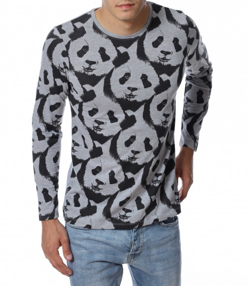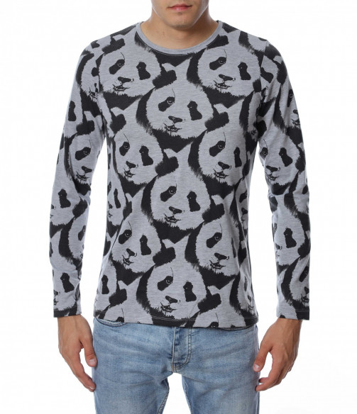 ОПИСАНИЕ НА ПРОДУКТА: Ново есенно предложение - забавна блуза с дълъг ръкав , с цялостен десен с панди. Фланелката е с леко вталена кройка и овално деколте , в приятно сив нюанс . Подходяща за ежедневието , като можете да я съчетавате със спортна грейка или елек.