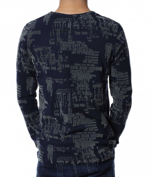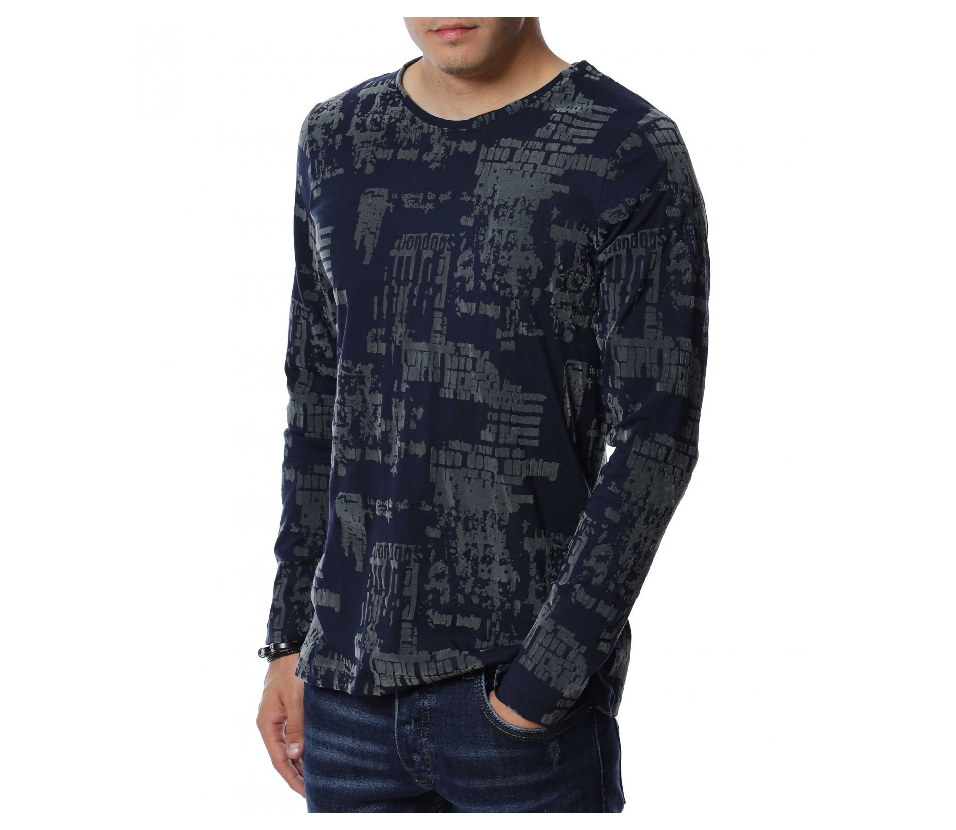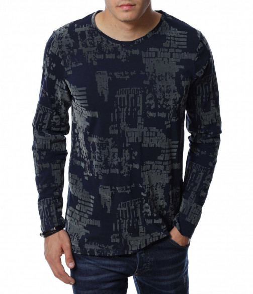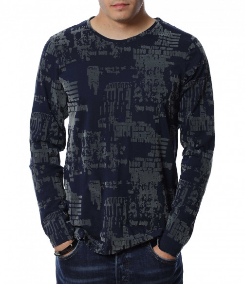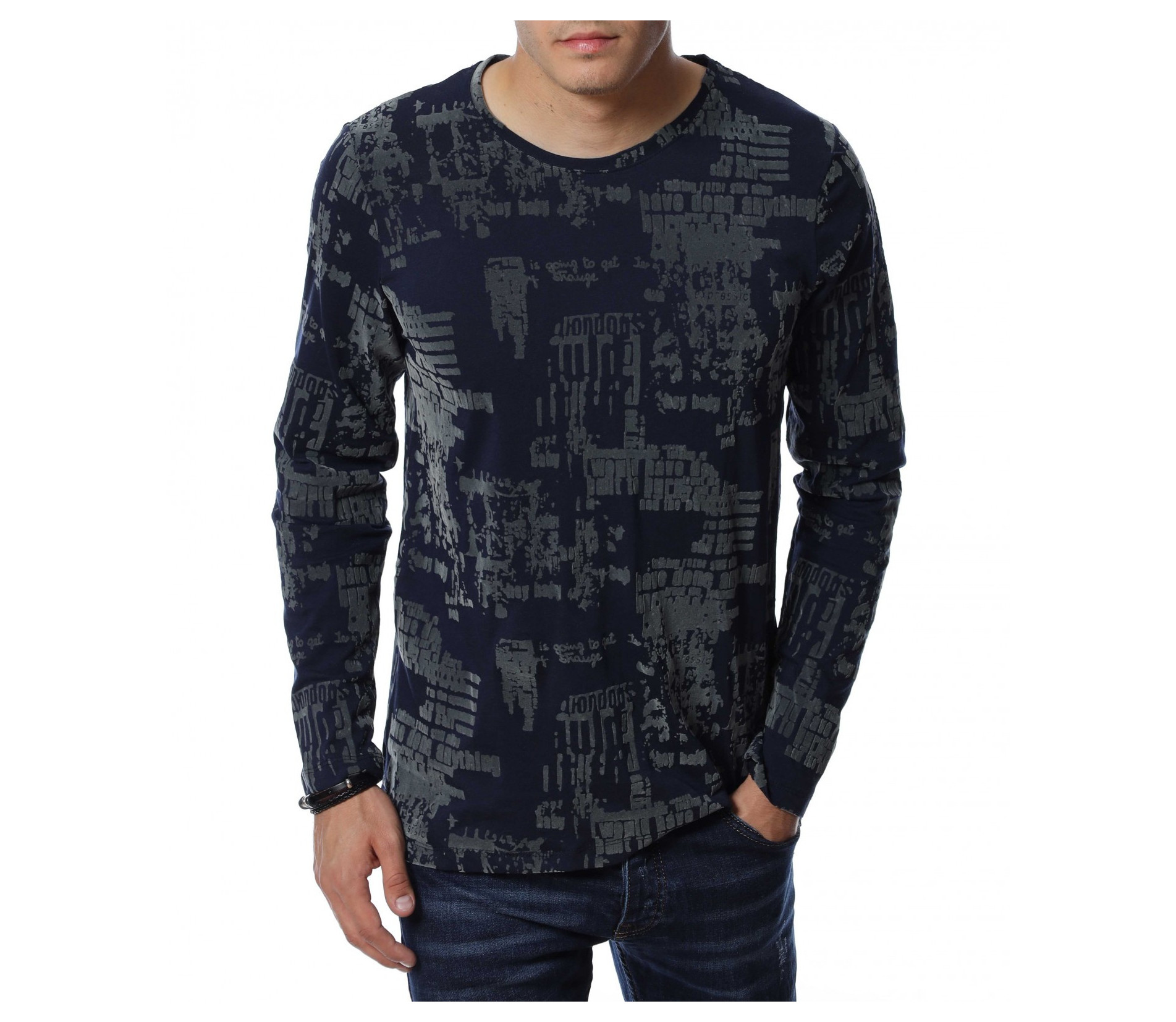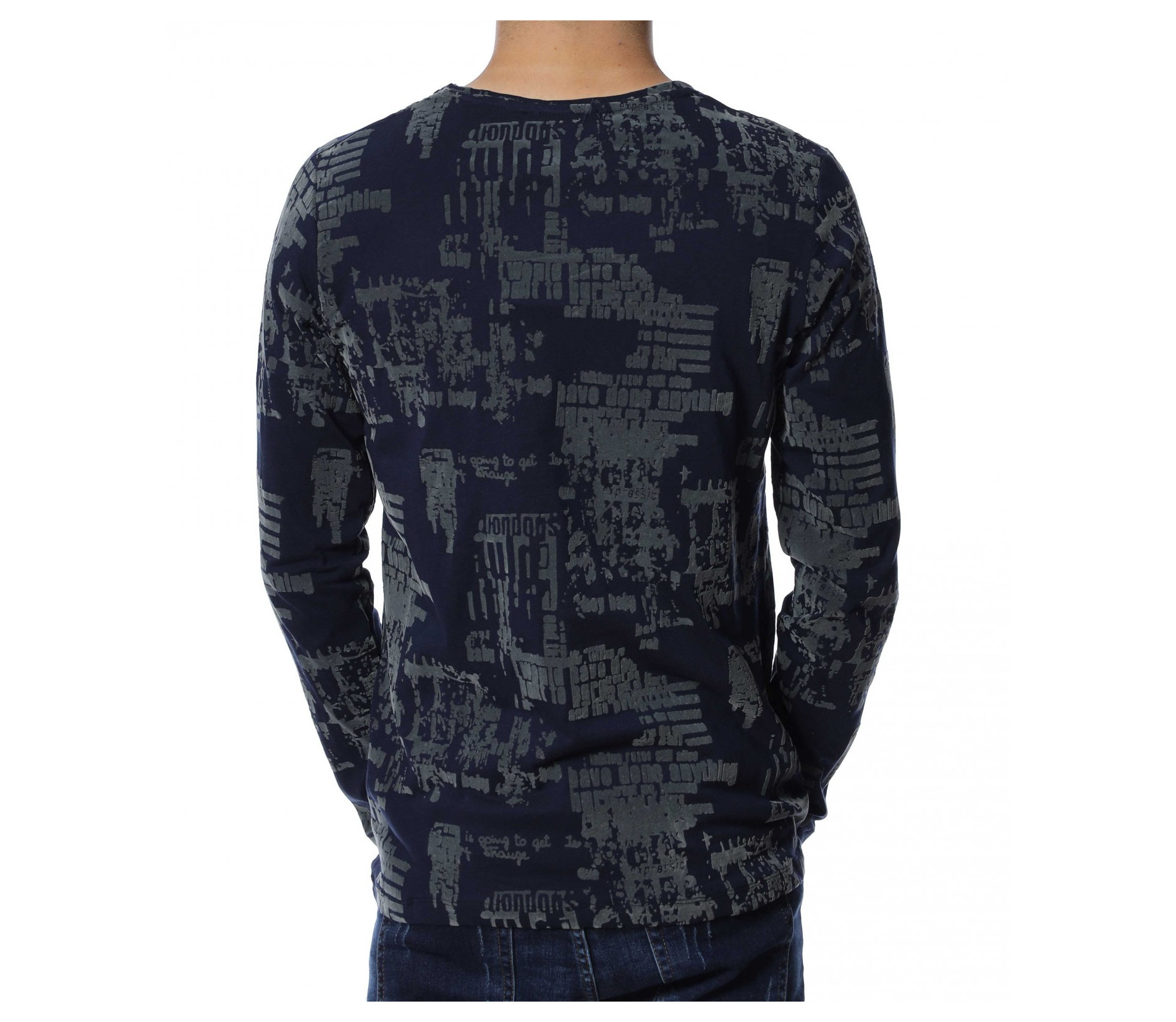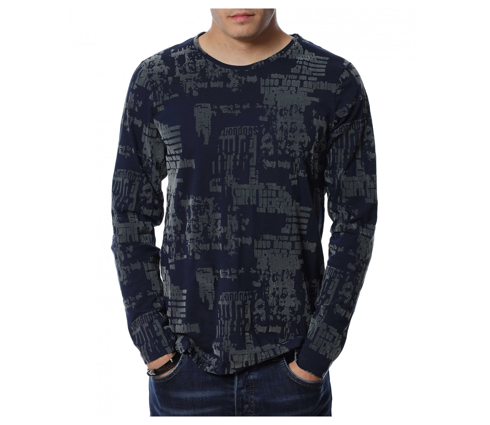 Мъжка блуза с дълъг ръкав. По цялата основа е разпръсната интересна декорация от велурена материя. Кройката е издължена , а деколтето е овално. Дизайнът е пренесен и в задната част на блузката. Може да комбинирате с дънки и да завършите вашият аутфит.