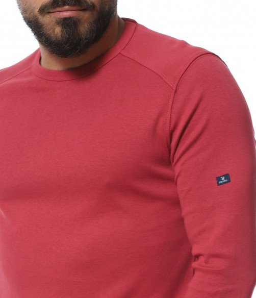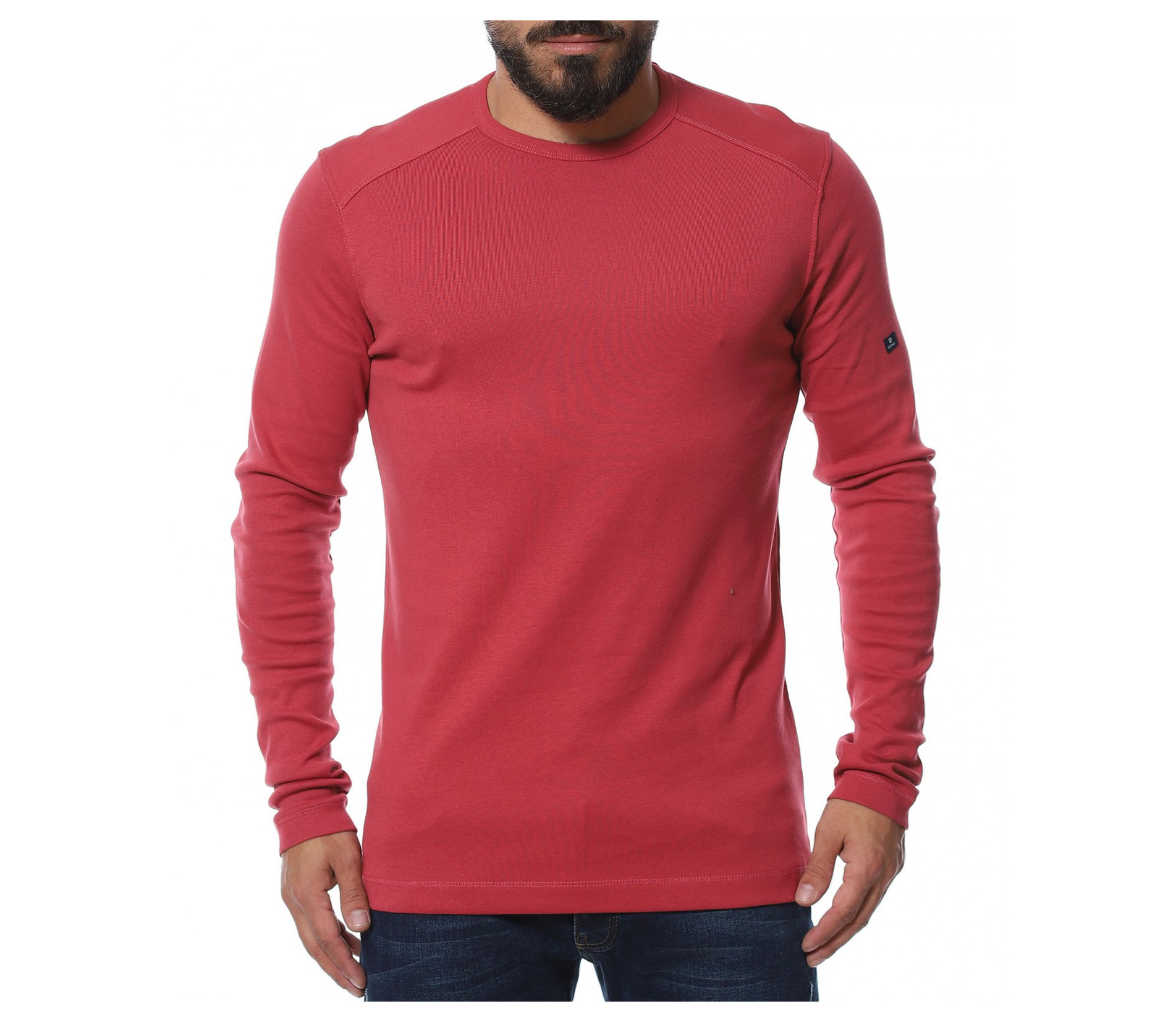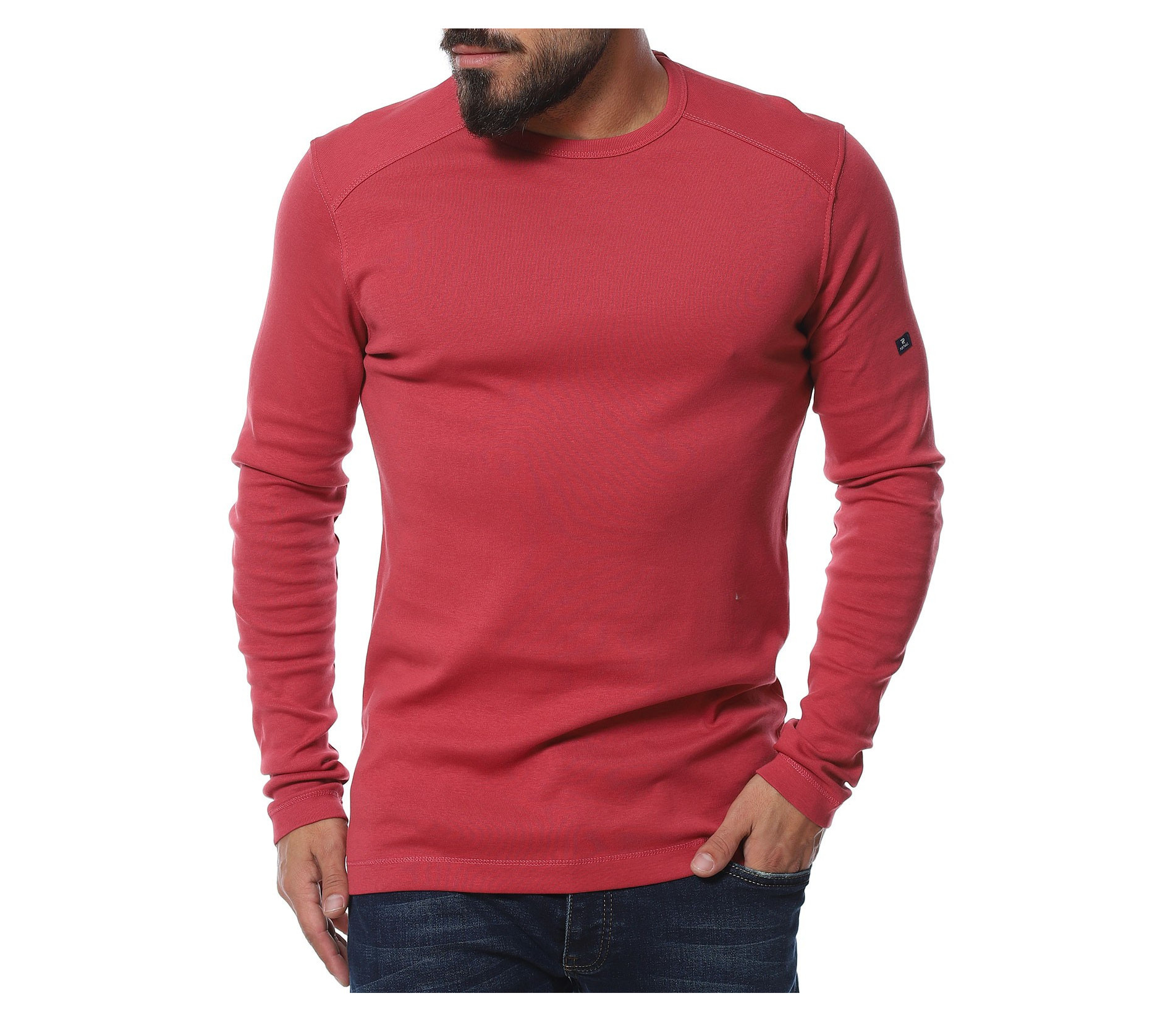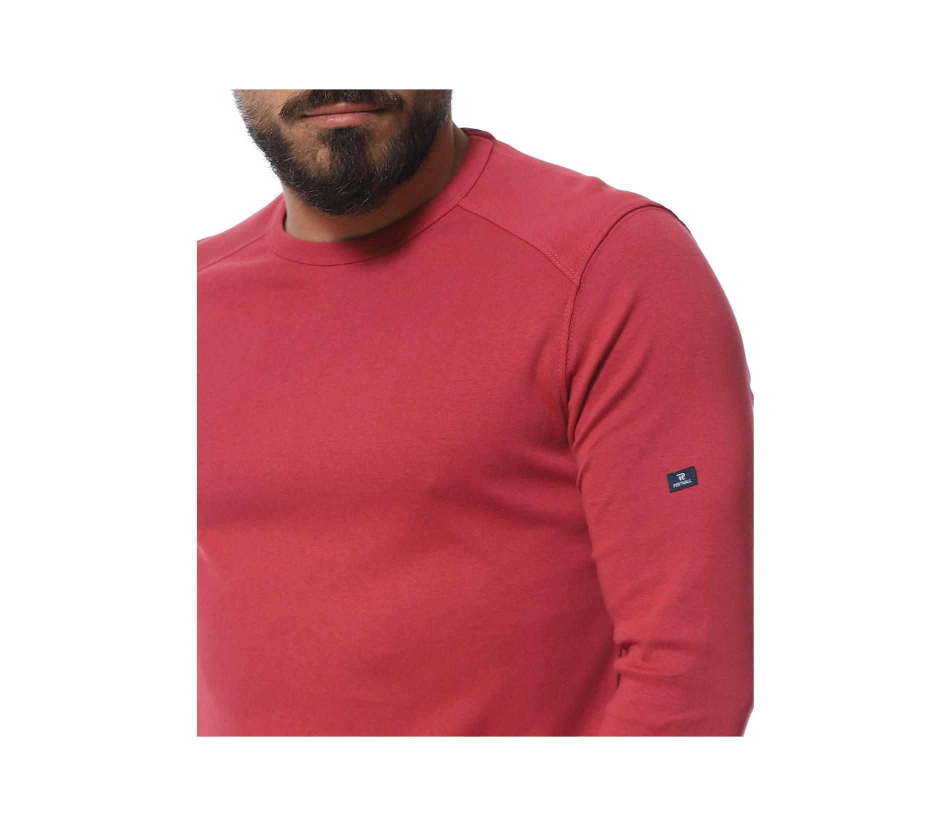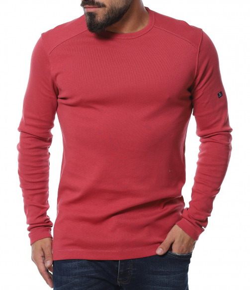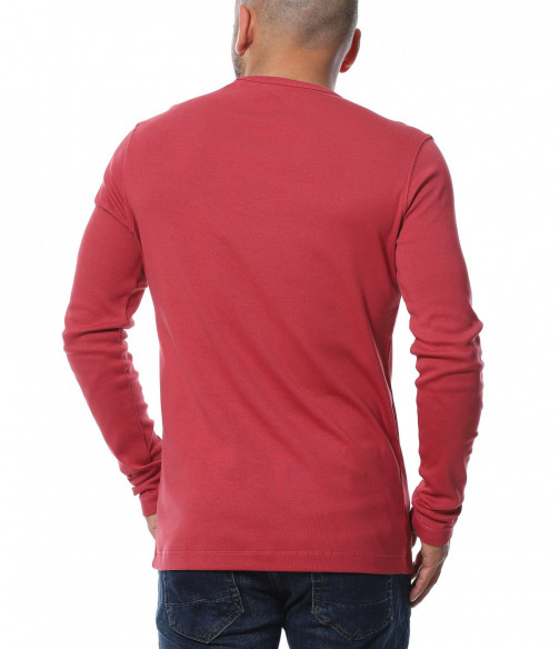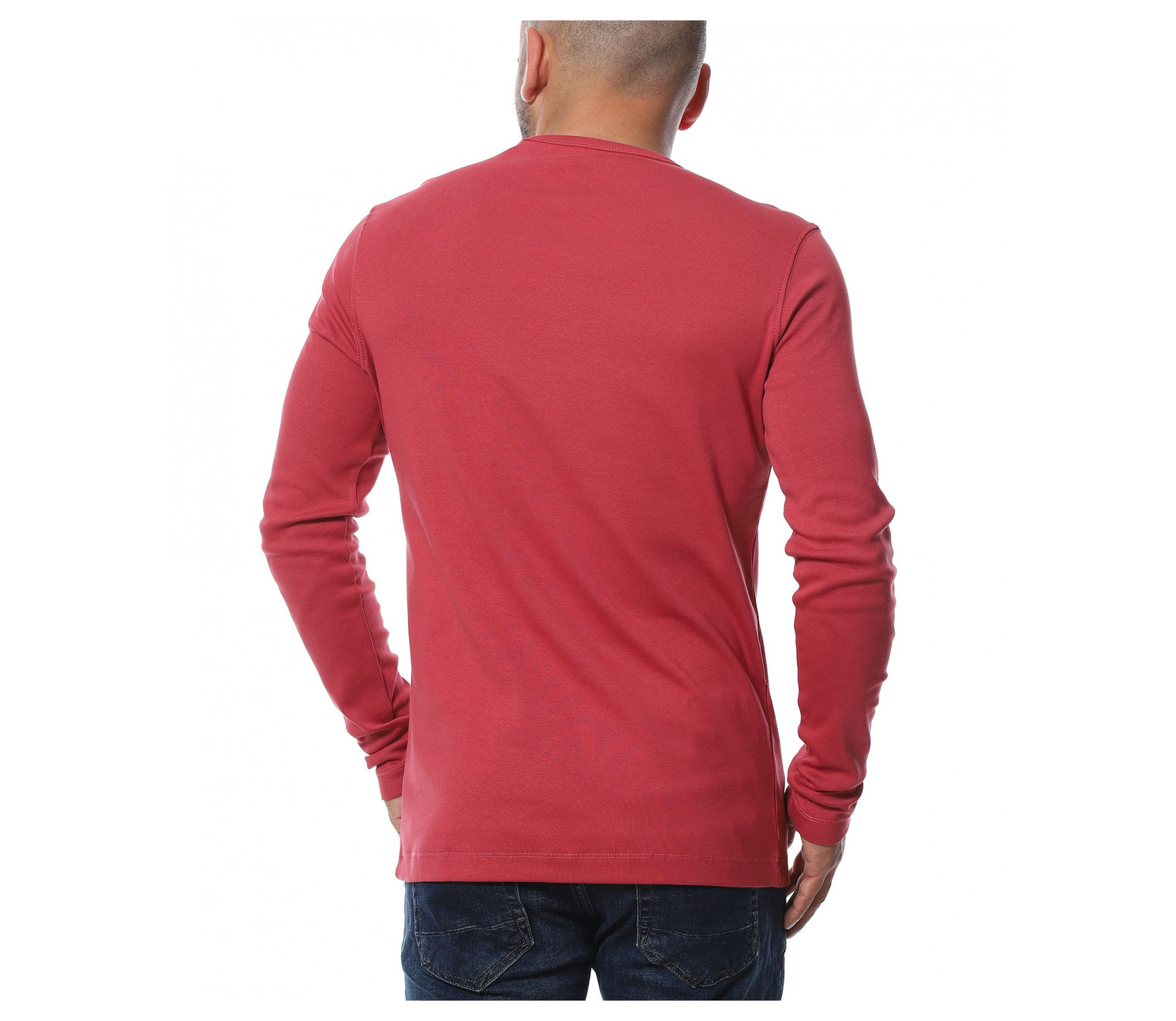 Мъжка блуза с дълъг ръкав. Предната част, както и гърбът на модела са в напълно изчистен, класически вариант. Деколтето е овално, а при раменете забелязваме оребрени шевове за акцент. Дължината покрива колана, а кройката е вталена с достатъчна свобода на движение. Меката материя придава на тялото незаменим комфорт и може да я комбинирате с дънки и кецове.