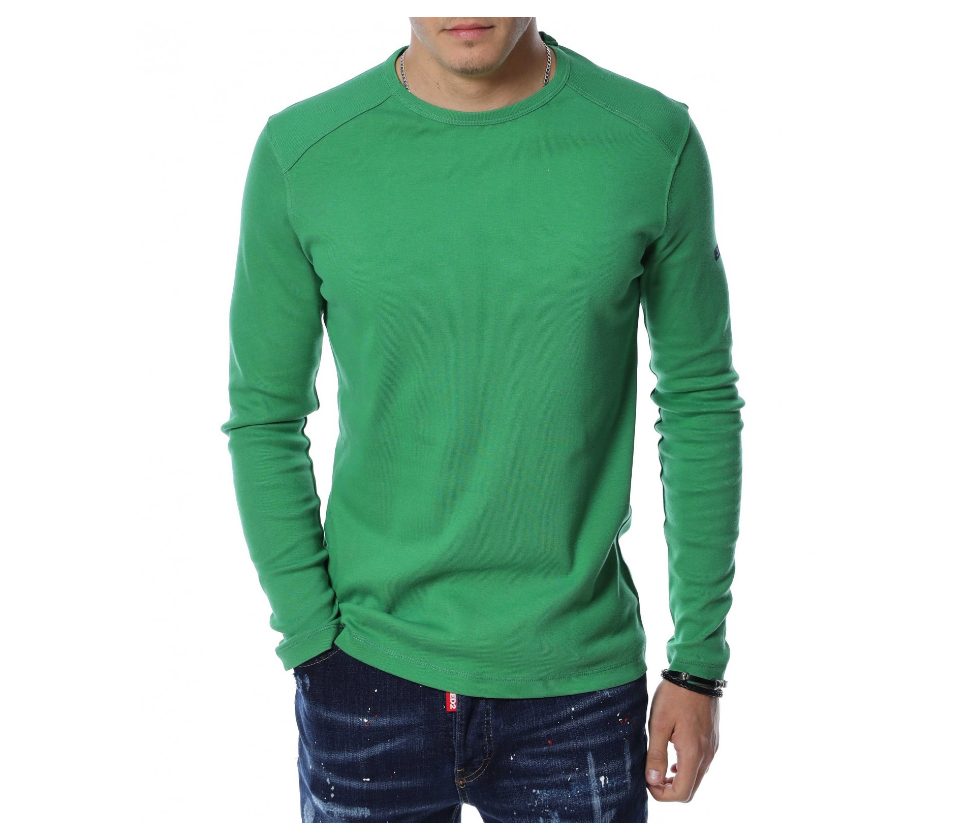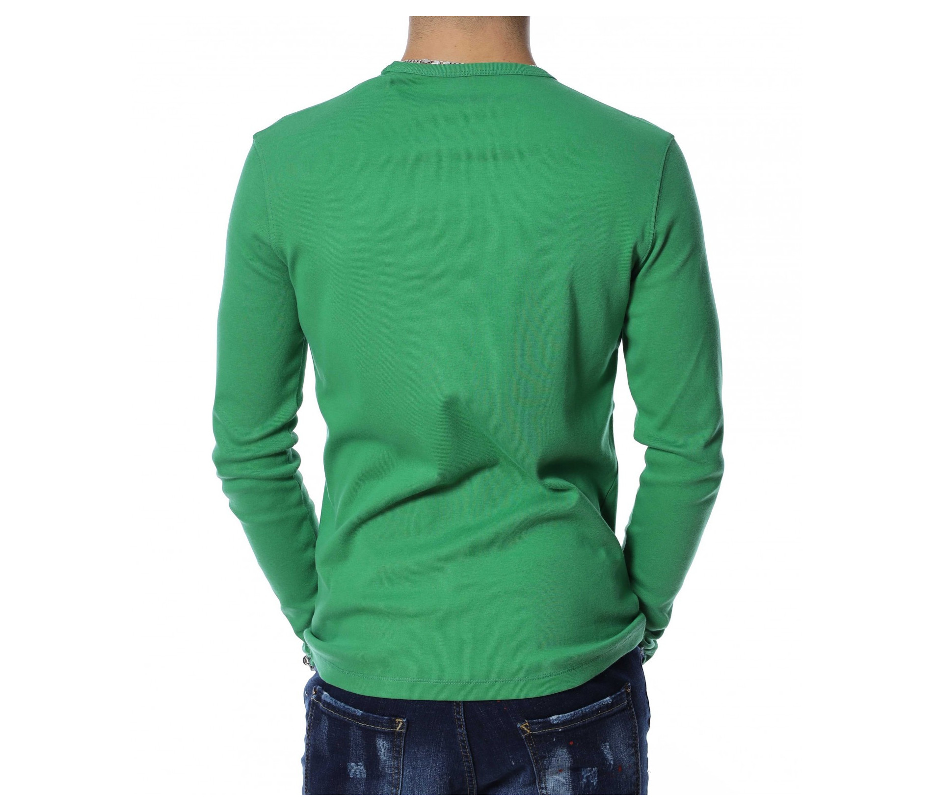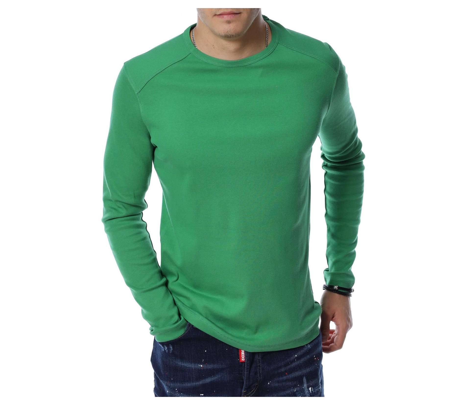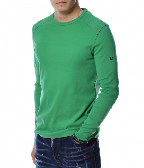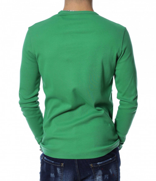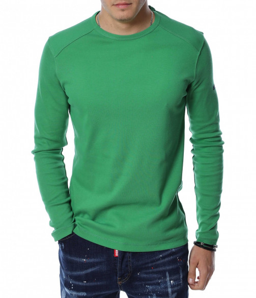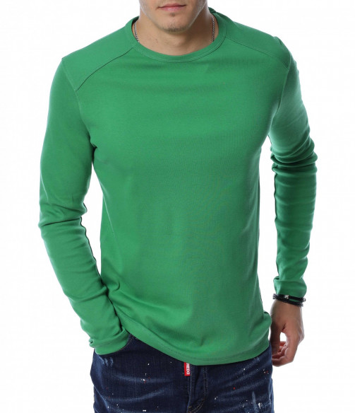 Мъжка блуза с дълъг ръкав. Предната част, както и гърбът на модела са в напълно изчистен, класически вариант. Деколтето е овално, а при раменете забелязваме оребрени шевове за акцент. Дължината покрива колана, а кройката е вталена с достатъчна свобода на движение. Меката материя придава на тялото незаменим комфорт и може да я комбинирате с дънки и кецове.