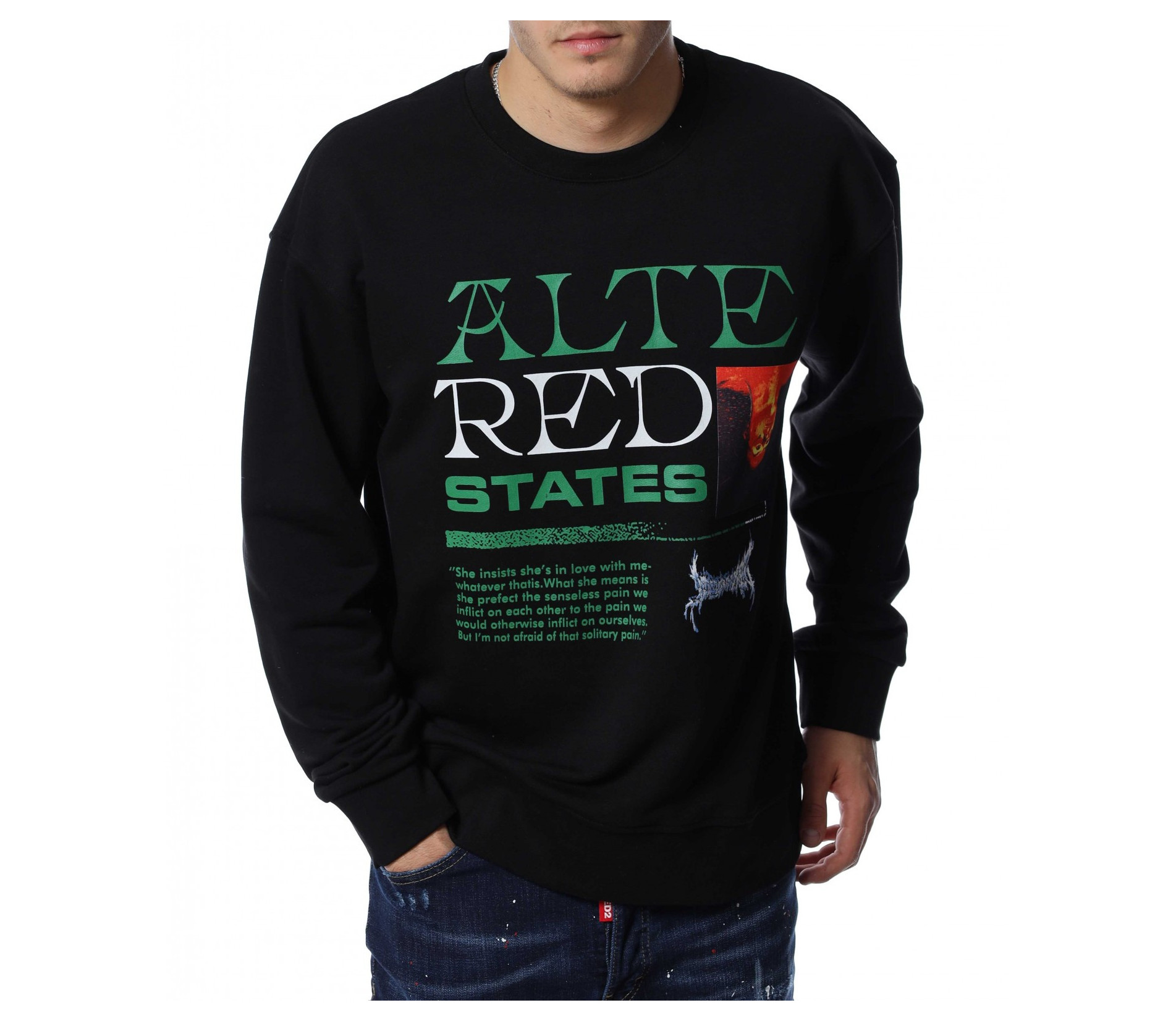 Топла, памучна мъжка блуза с дълъг ръкав. Основата е едноцветна, а в предната част забелязваме интересна щампа, придружена от надписи \"Alte Red States\". При китките и в долната част са добавени ластични маншети, които придават завършен вид на блузата. Деколтето е овално, а кройката осигурява комфорт и свобода на движение. Комбинирайте с дънки и кецове и завършете ежедневният си аутфит.