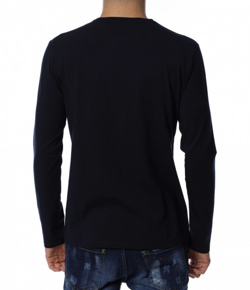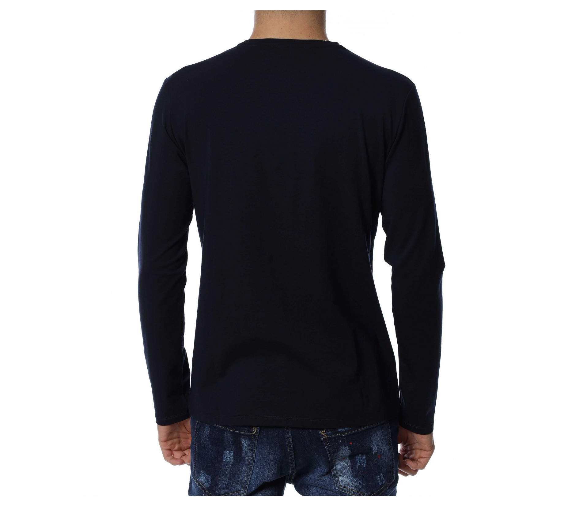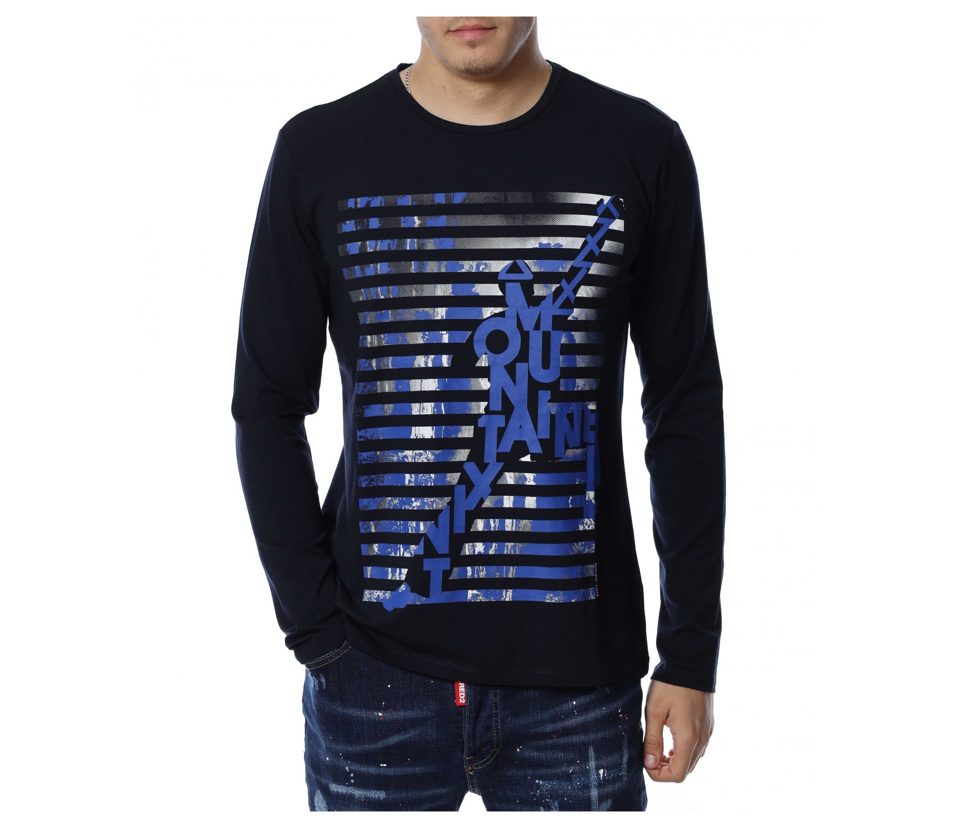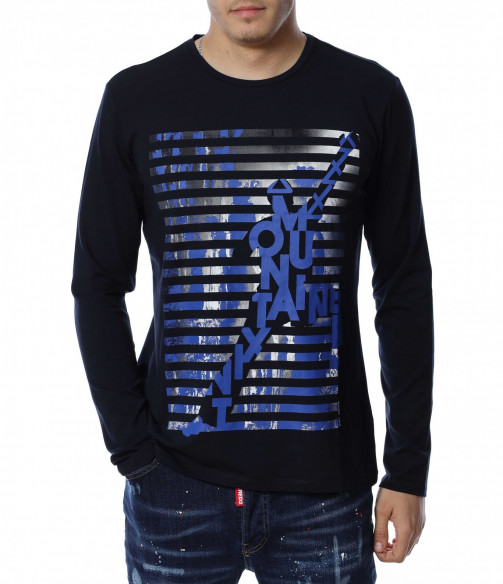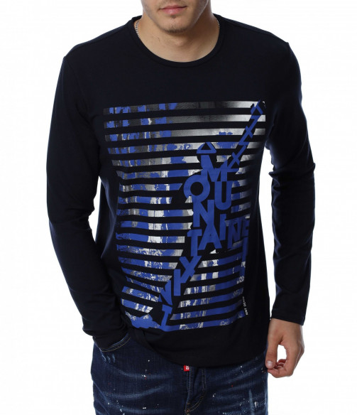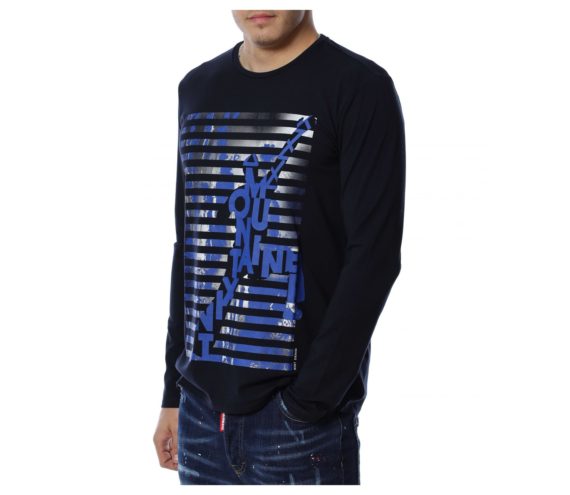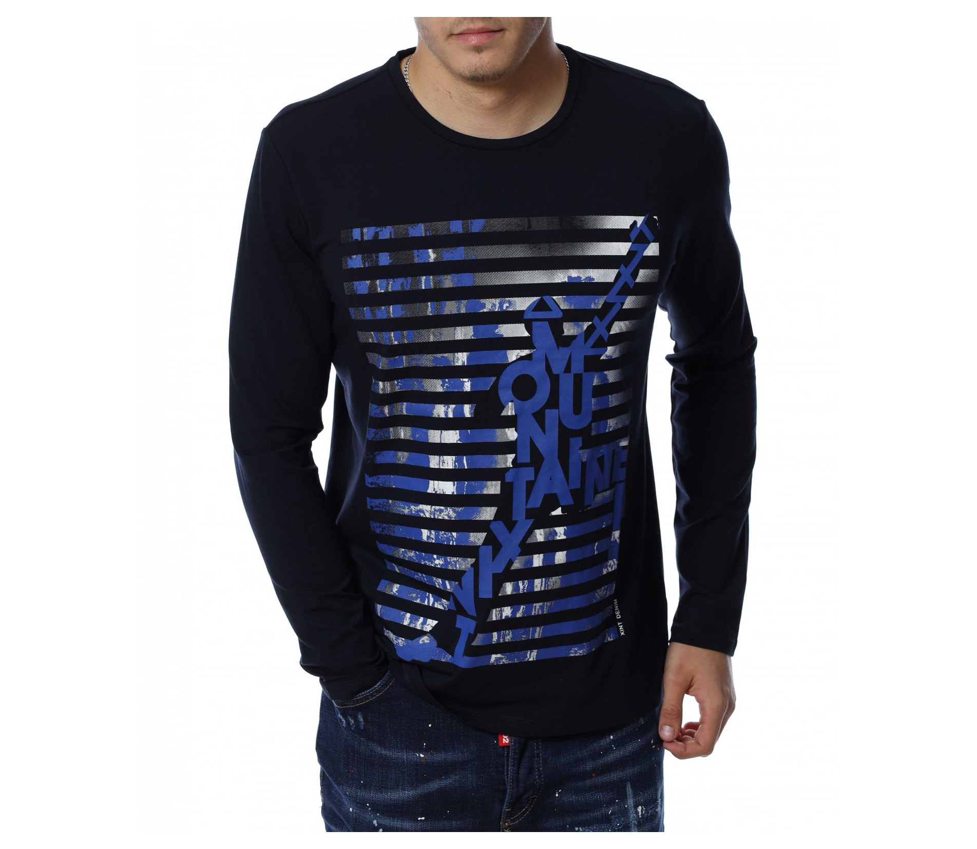 Мъжка блуза с дълъг ръкав. Основата на дрехата е едноцветна, а в предната част, почти по цялата дължина е разположена интересна щампа в допълнение с букви. Деколтето е овално, а кройката следва линиите на тялото и същевременно осигурява комфорт и свобода на движение. Комбинирайте с дънки и кецове.
