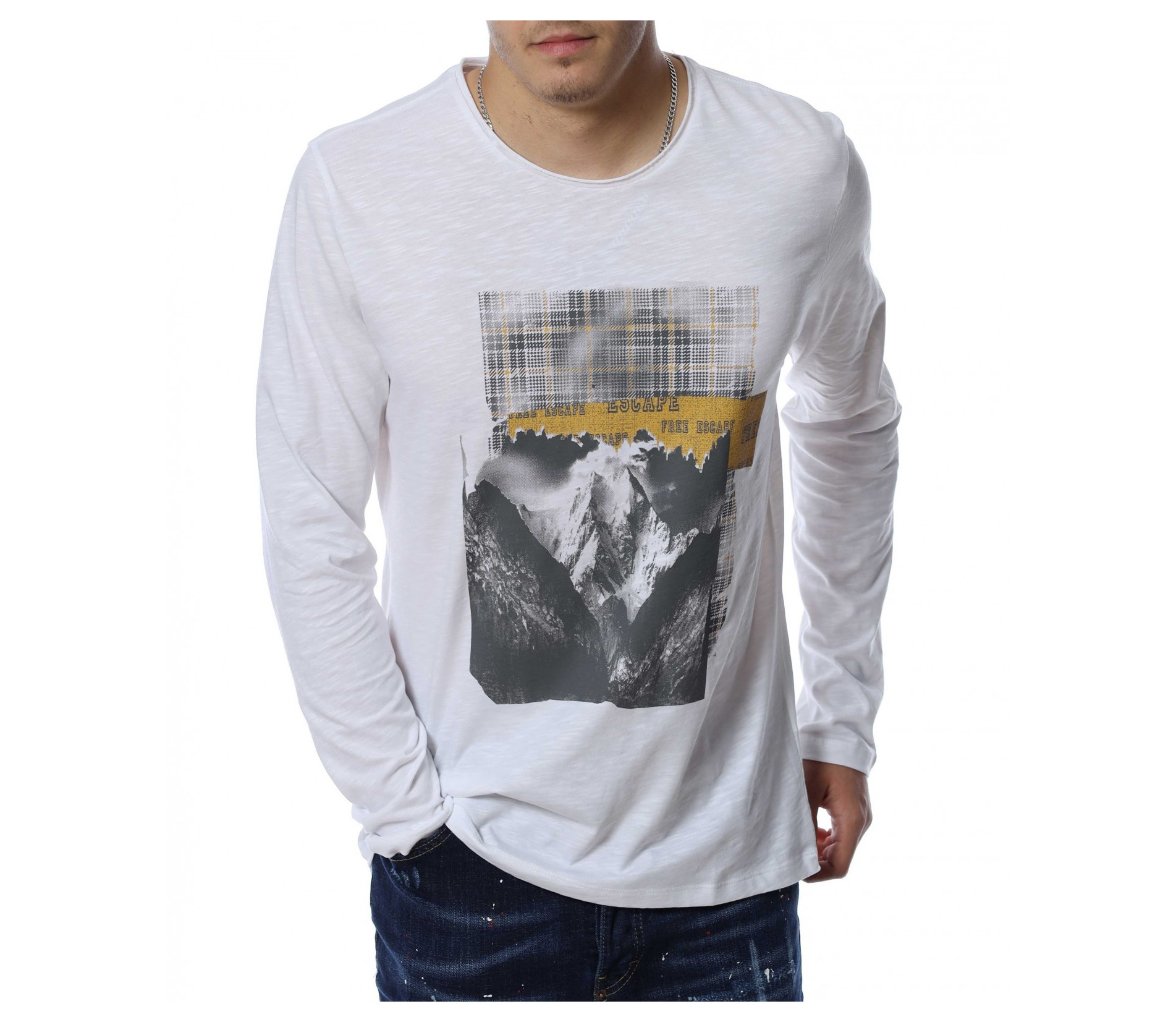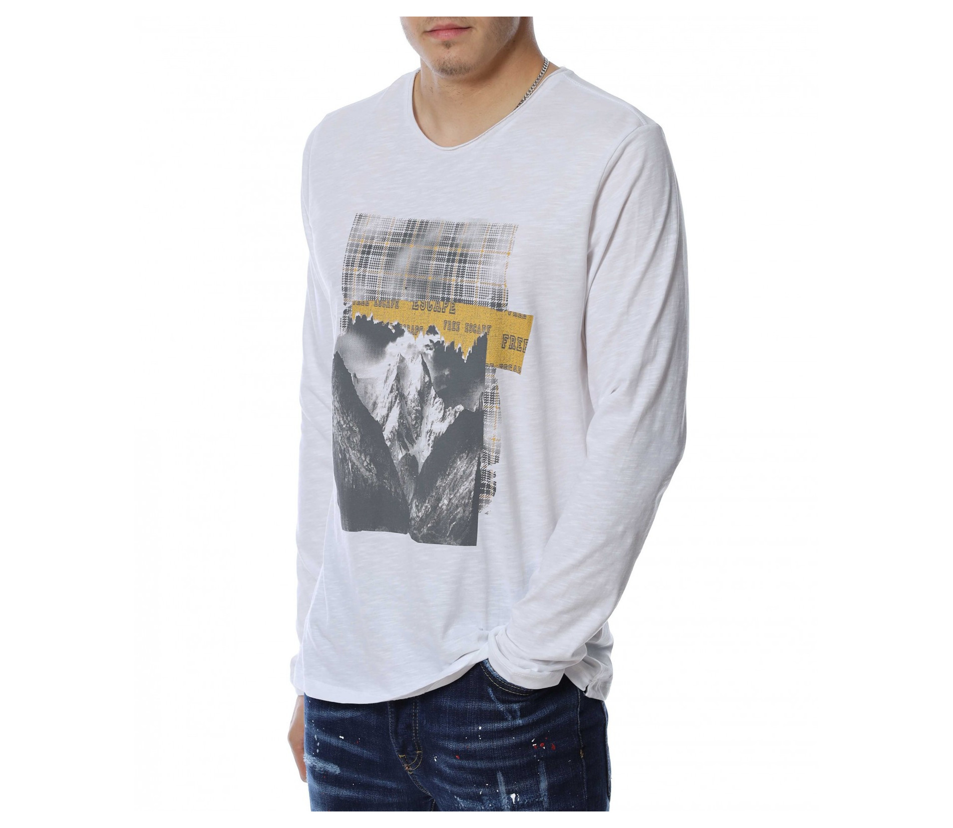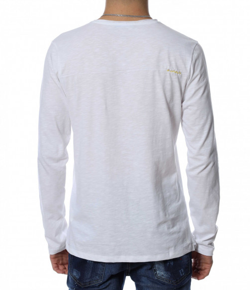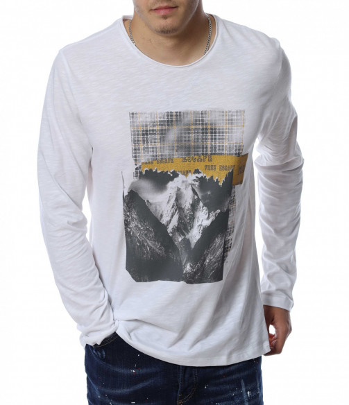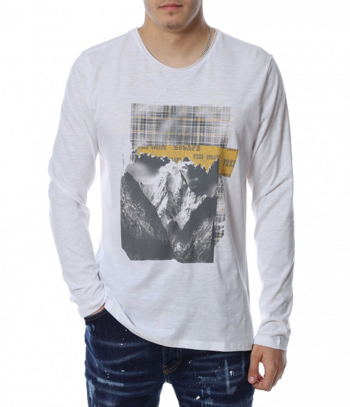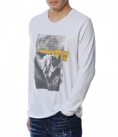 Мъжка блуза с дълъг ръкав и овално деколте. Основният цвят е в едноцветен вариант, а в предната част е позиционирана щампа с изображение. В задната част като допълнителен акцент забелязваме нашивка за декорация. Кройката следва линиите на тялото и осигурява достатъчно свобода на движение. Комбинирайте с дънки и кецове.
