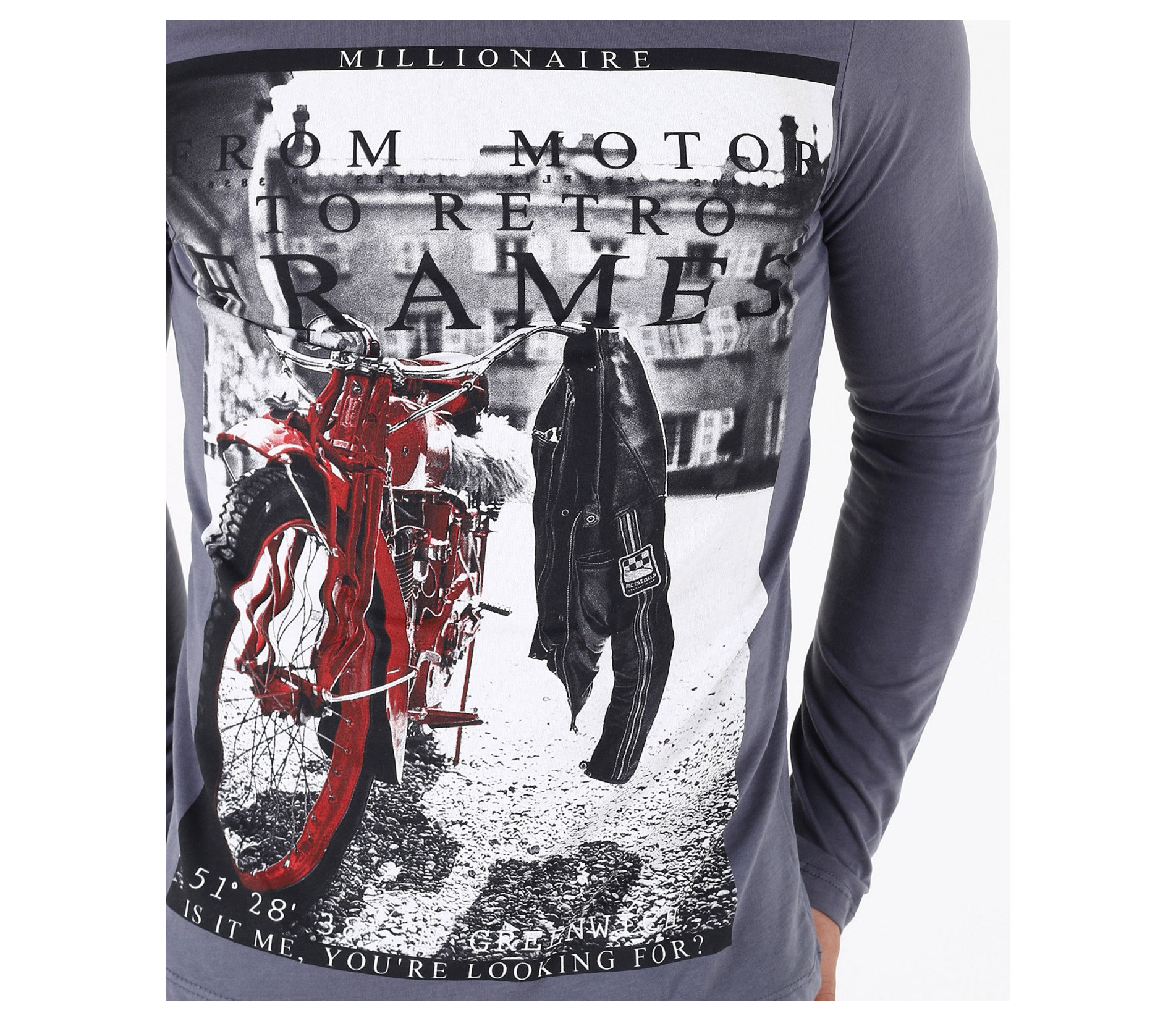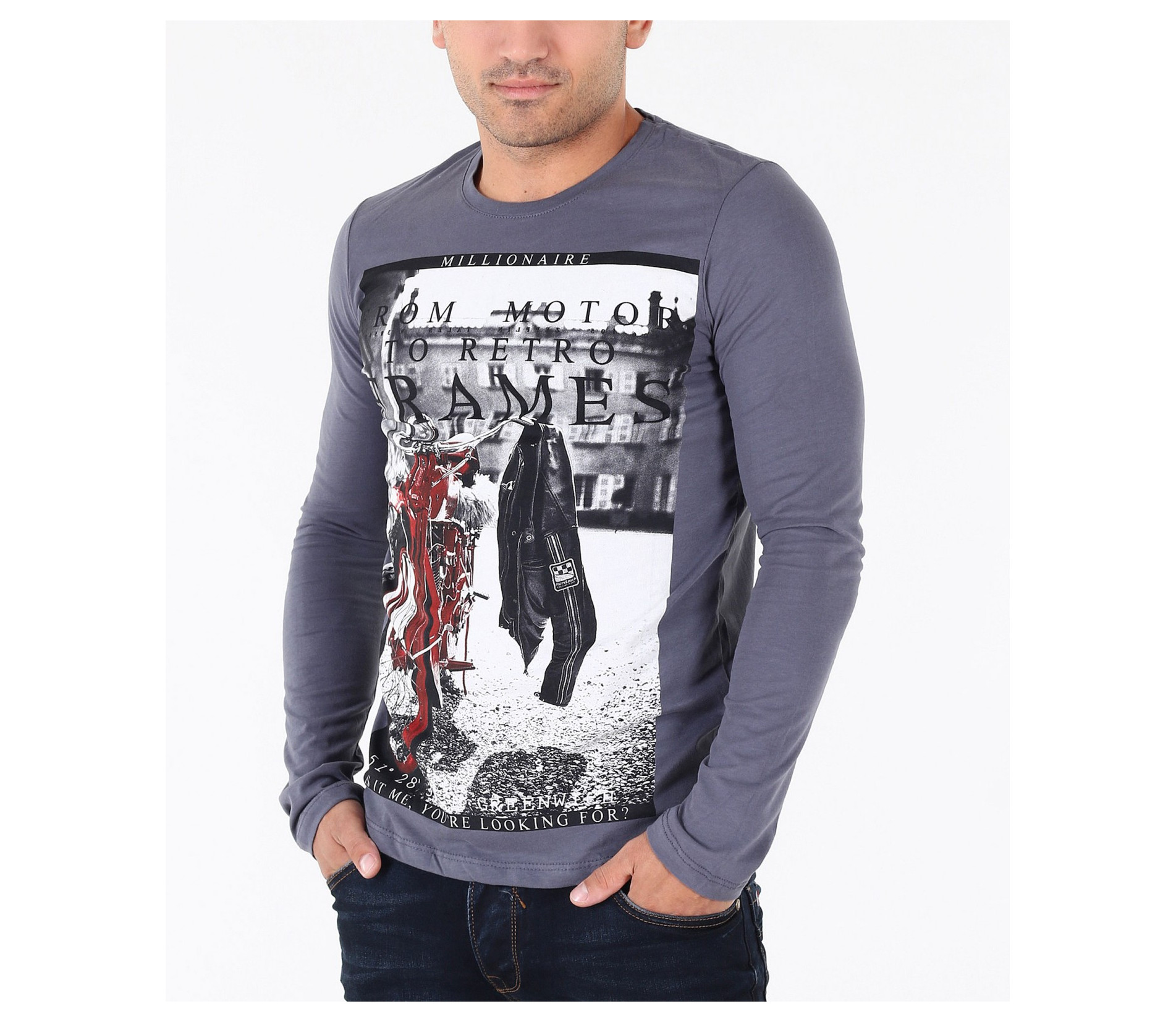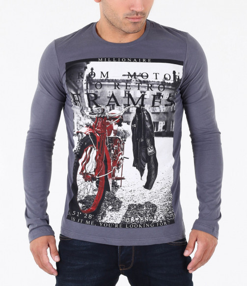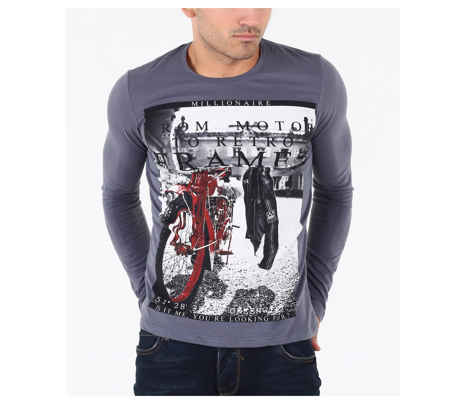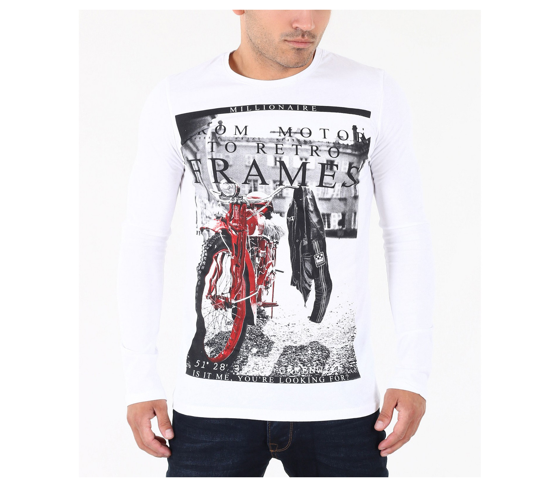 Описание на продукта: Модерна мъжка блуза с дълъг ръкав. В предната част моделът е декориран с интересен принт изобразяващ мотор, в който се преплитат най-актуалните цвтове за сезона: бял, черен и червен. Апликацията наподобява рамка от черни очертания. С вталена кройка, стандартна дължина и овално деколте, този модел се превръща в изключително харесван и желан. Смело съчетавайки блузата с широка гама от цветове на панталони, дънки, обувки или кецове и аксесоари, завършвате уникална fashion визия, подходяща за всеки ден. Изработката е от 100% висококачествен памук.