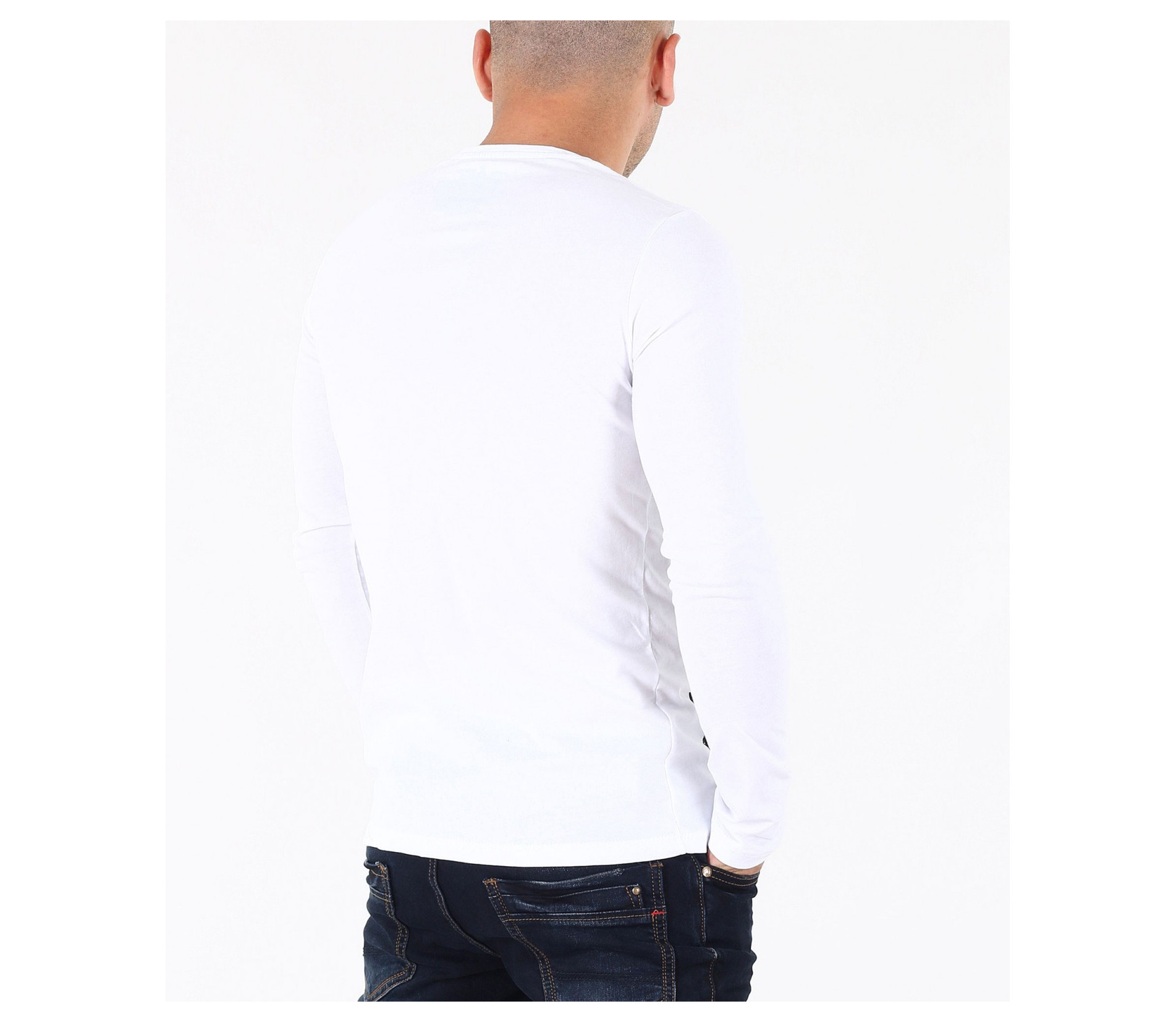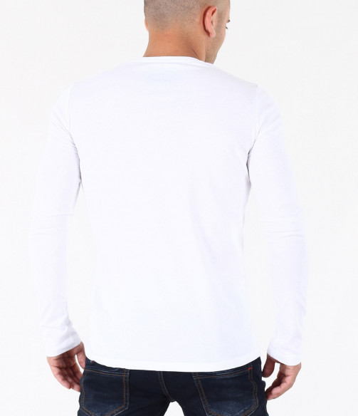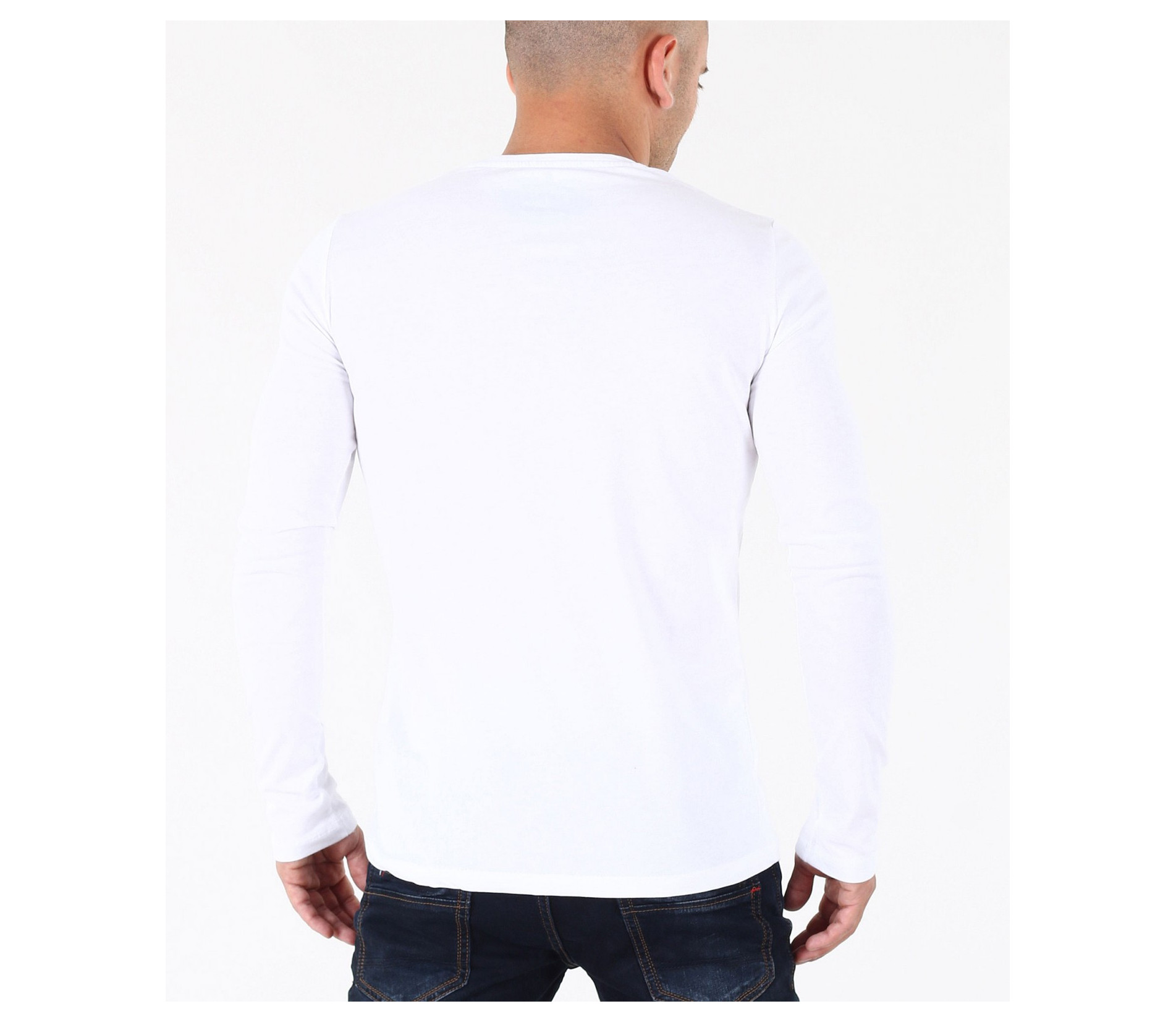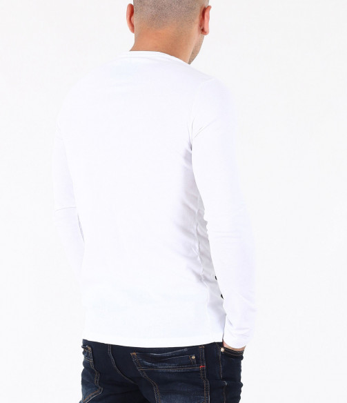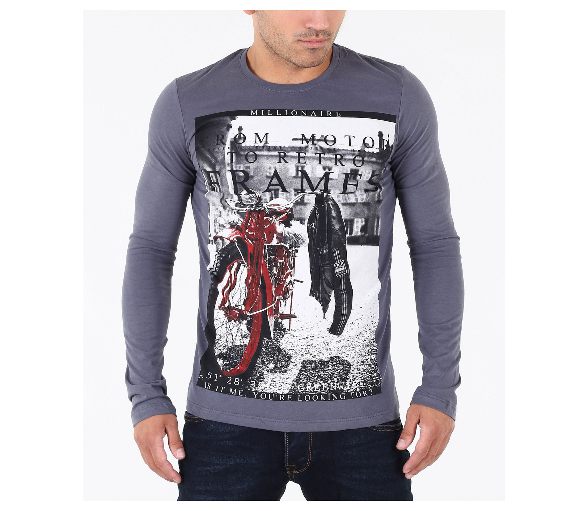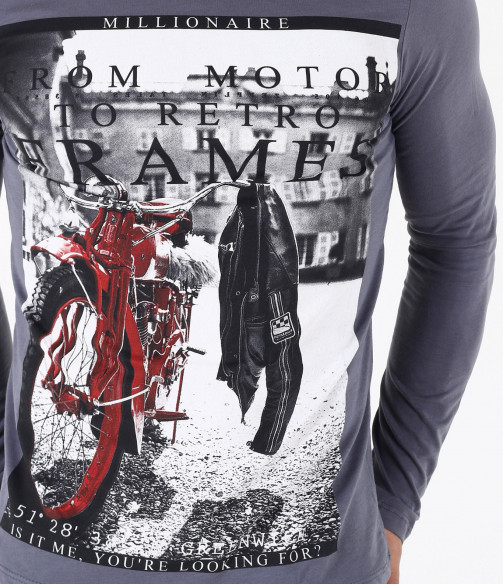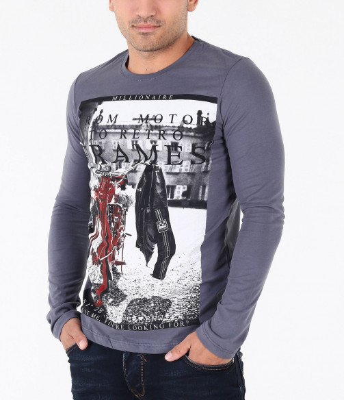 Описание на продукта: Модерна мъжка блуза с дълъг ръкав. В предната част моделът е декориран с интересен принт изобразяващ мотор, в който се преплитат най-актуалните цвтове за сезона: бял, черен и червен. Апликацията наподобява рамка от черни очертания. С вталена кройка, стандартна дължина и овално деколте, този модел се превръща в изключително харесван и желан. Смело съчетавайки блузата с широка гама от цветове на панталони, дънки, обувки или кецове и аксесоари, завършвате уникална fashion визия, подходяща за всеки ден. Изработката е от 100% висококачествен памук.
