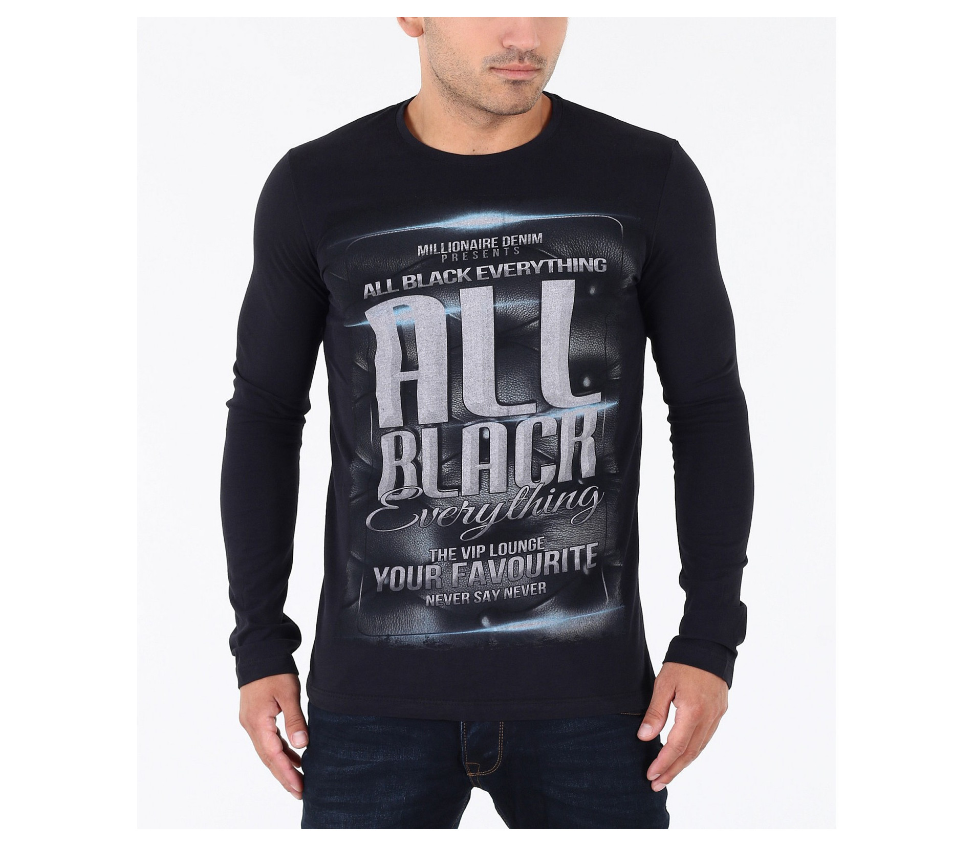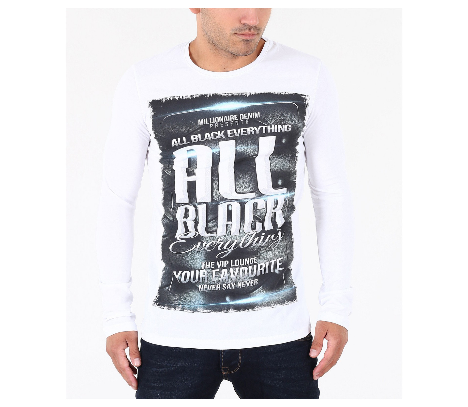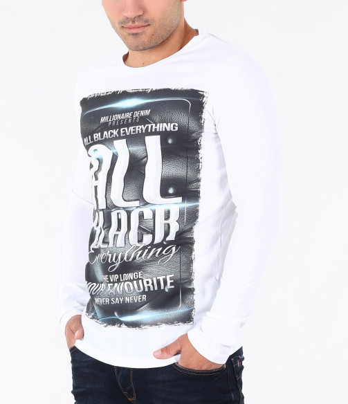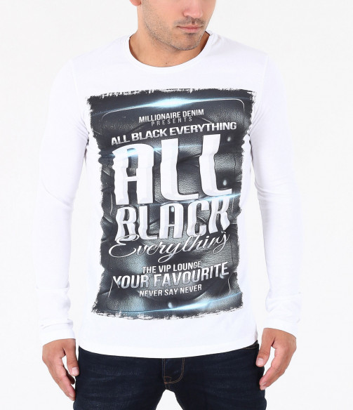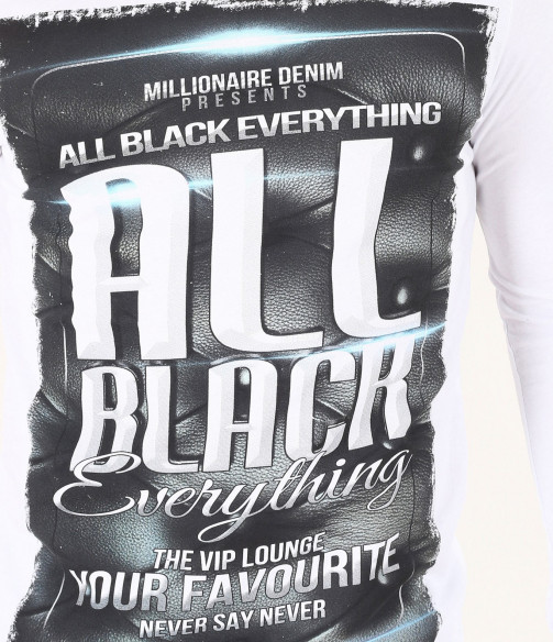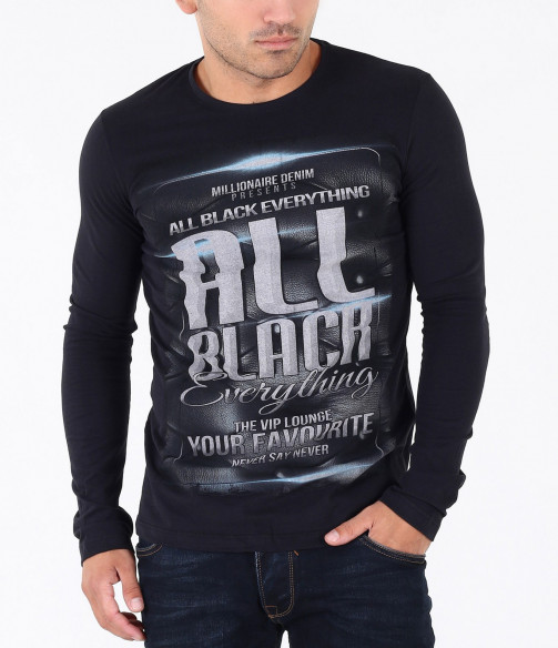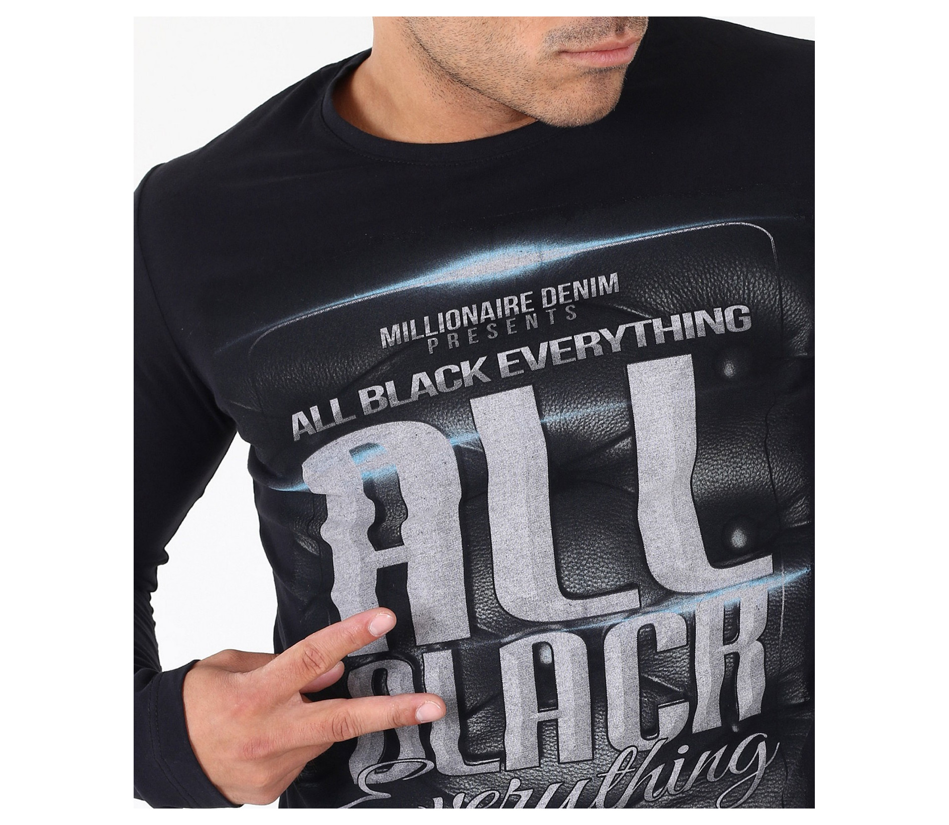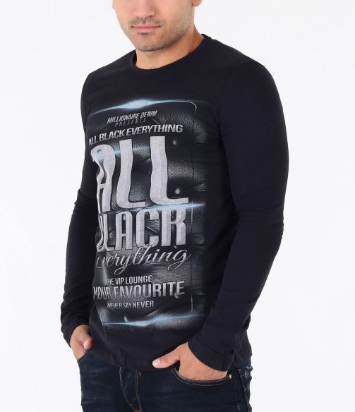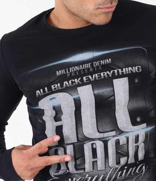 Описание на продукта: Стилна мъжка блуза с дълъг ръкав и модерен принт. В предната част е поставена голяма щампа с надписи ALL BLACK. Апликацията е на тъмен фон, с което перфектно се октроява от надписите. На места са поставени по светлосини отблясъци, които правят моделът още по-интересен. Гърбът на фанелката е напълно изчистен, с което акцент пада върху лицето. С вталена кройка, интересен принт, овално деколте и стандартна дължина, този шърт се превтъща в любимата дреха за този сезон. В съчетание с чифт светъл или тъмен деним, модерни кецове и леко яке, създавате собствен стил и перфектен сет.