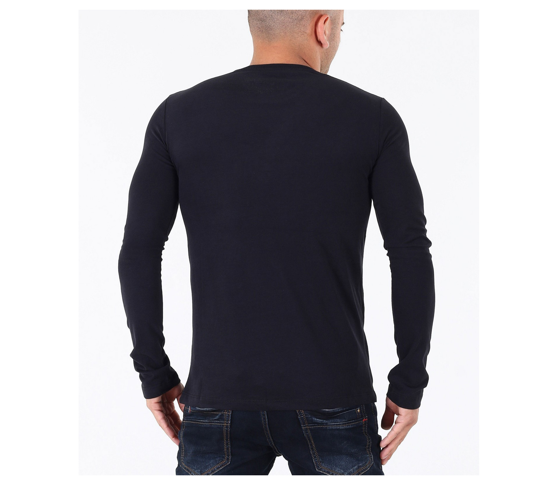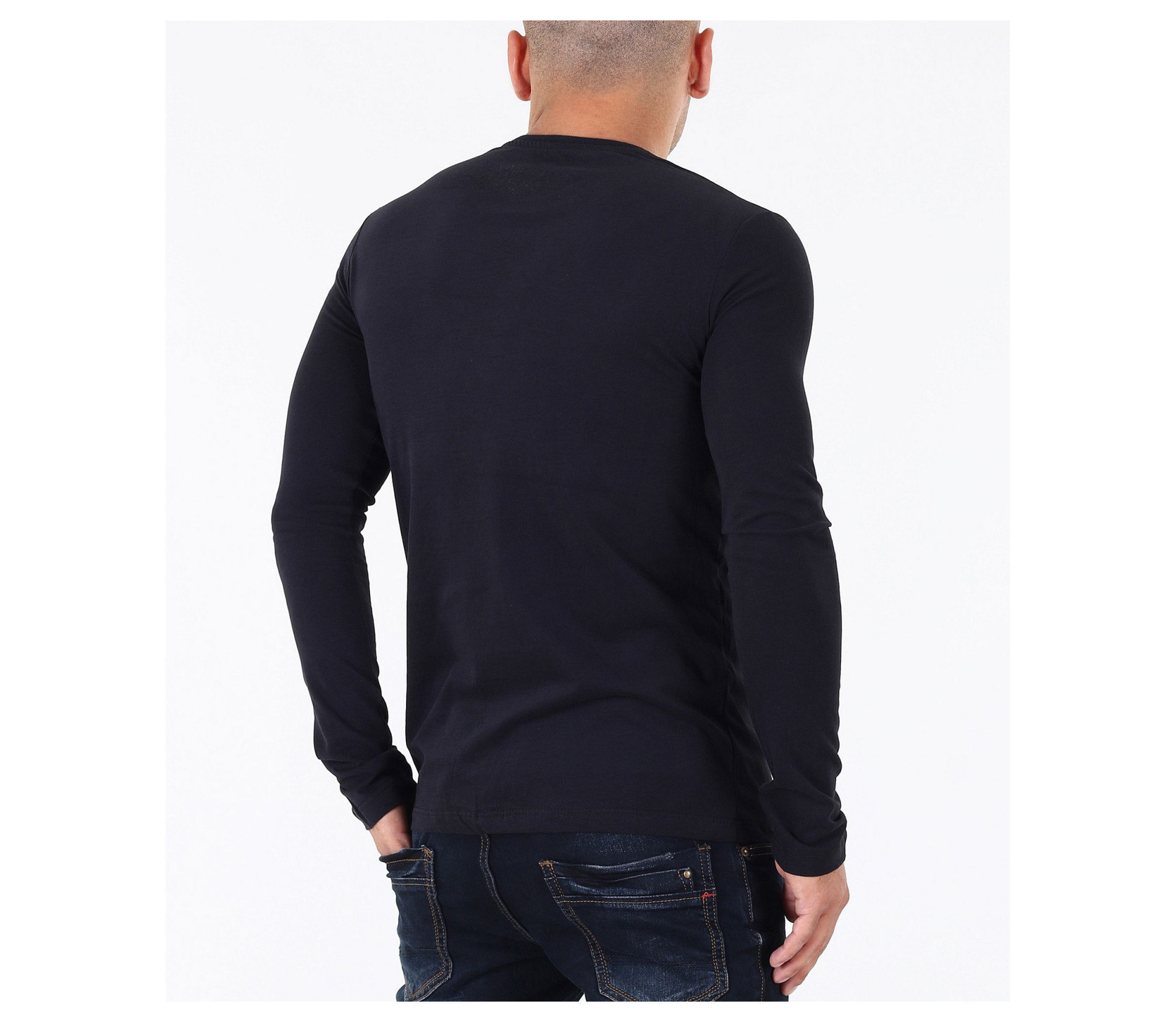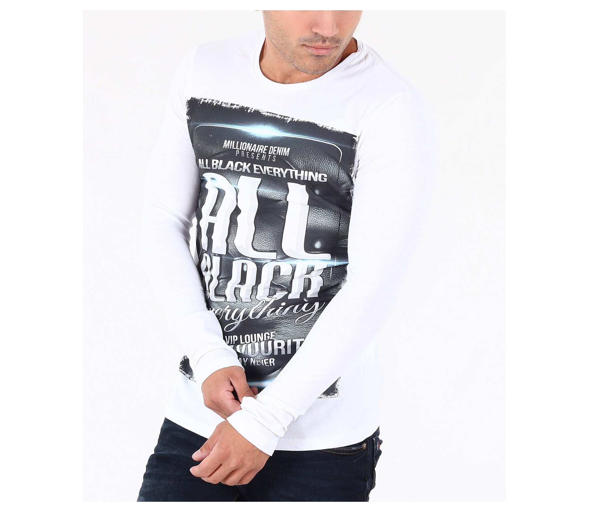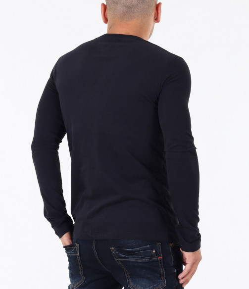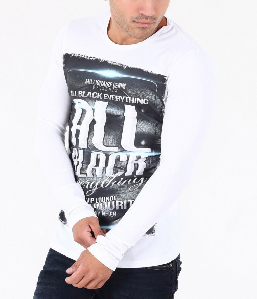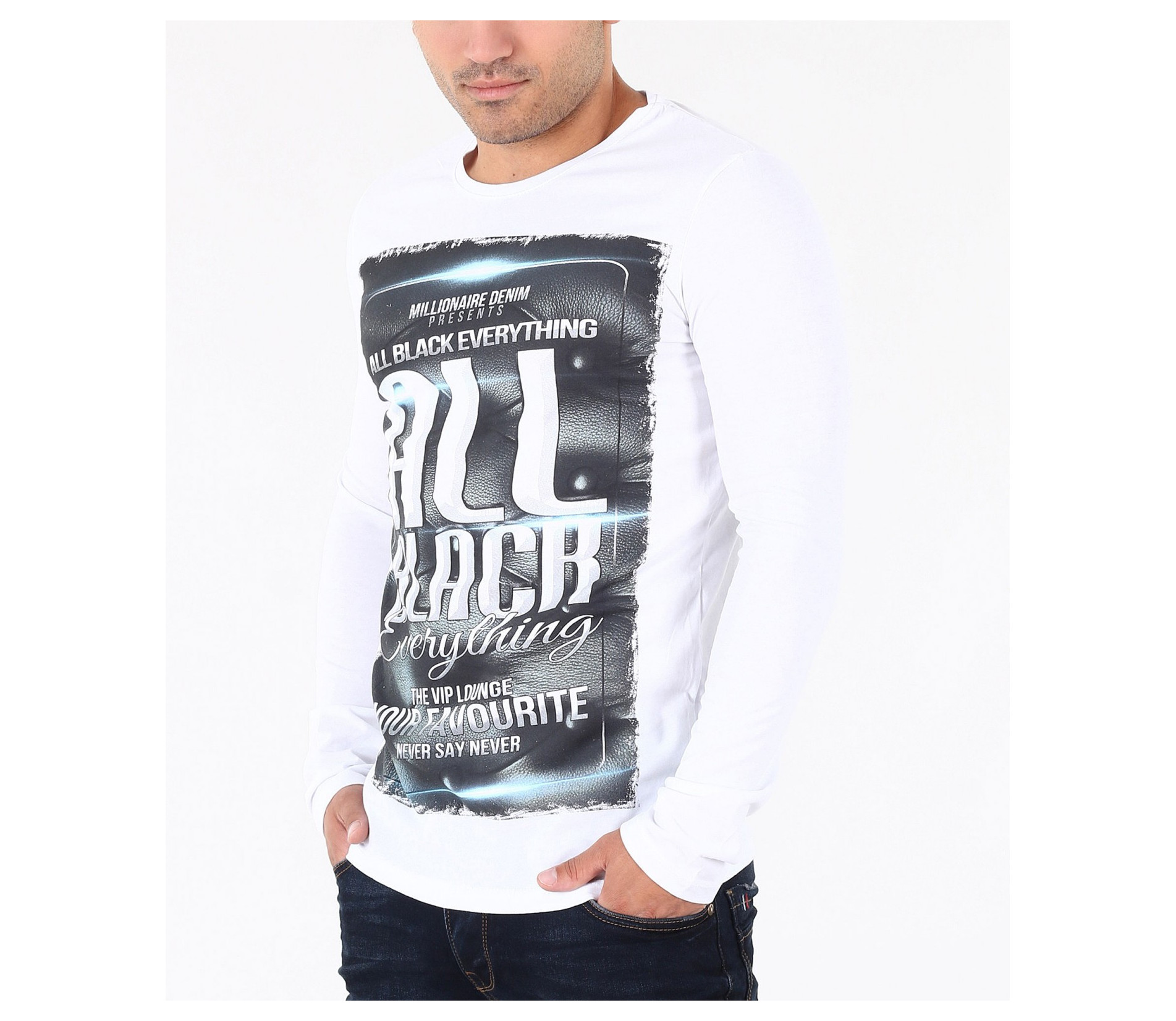 Описание на продукта: Стилна мъжка блуза с дълъг ръкав и модерен принт. В предната част е поставена голяма щампа с надписи ALL BLACK. Апликацията е на тъмен фон, с което перфектно се октроява от надписите. На места са поставени по светлосини отблясъци, които правят моделът още по-интересен. Гърбът на фанелката е напълно изчистен, с което акцент пада върху лицето. С вталена кройка, интересен принт, овално деколте и стандартна дължина, този шърт се превтъща в любимата дреха за този сезон. В съчетание с чифт светъл или тъмен деним, модерни кецове и леко яке, създавате собствен стил и перфектен сет.
