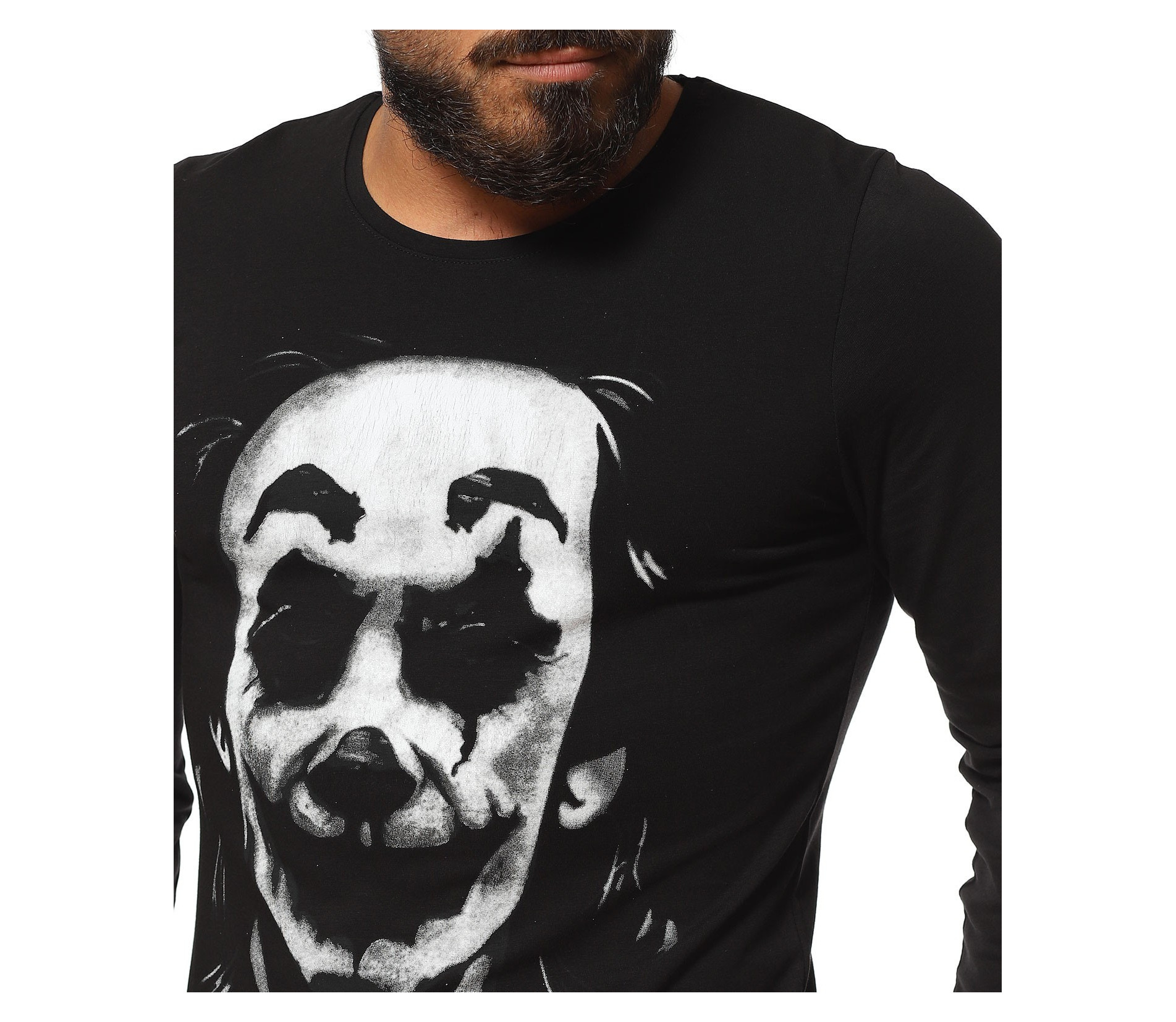 Блуза с дълъг ръкав и голяма апликация - Черен