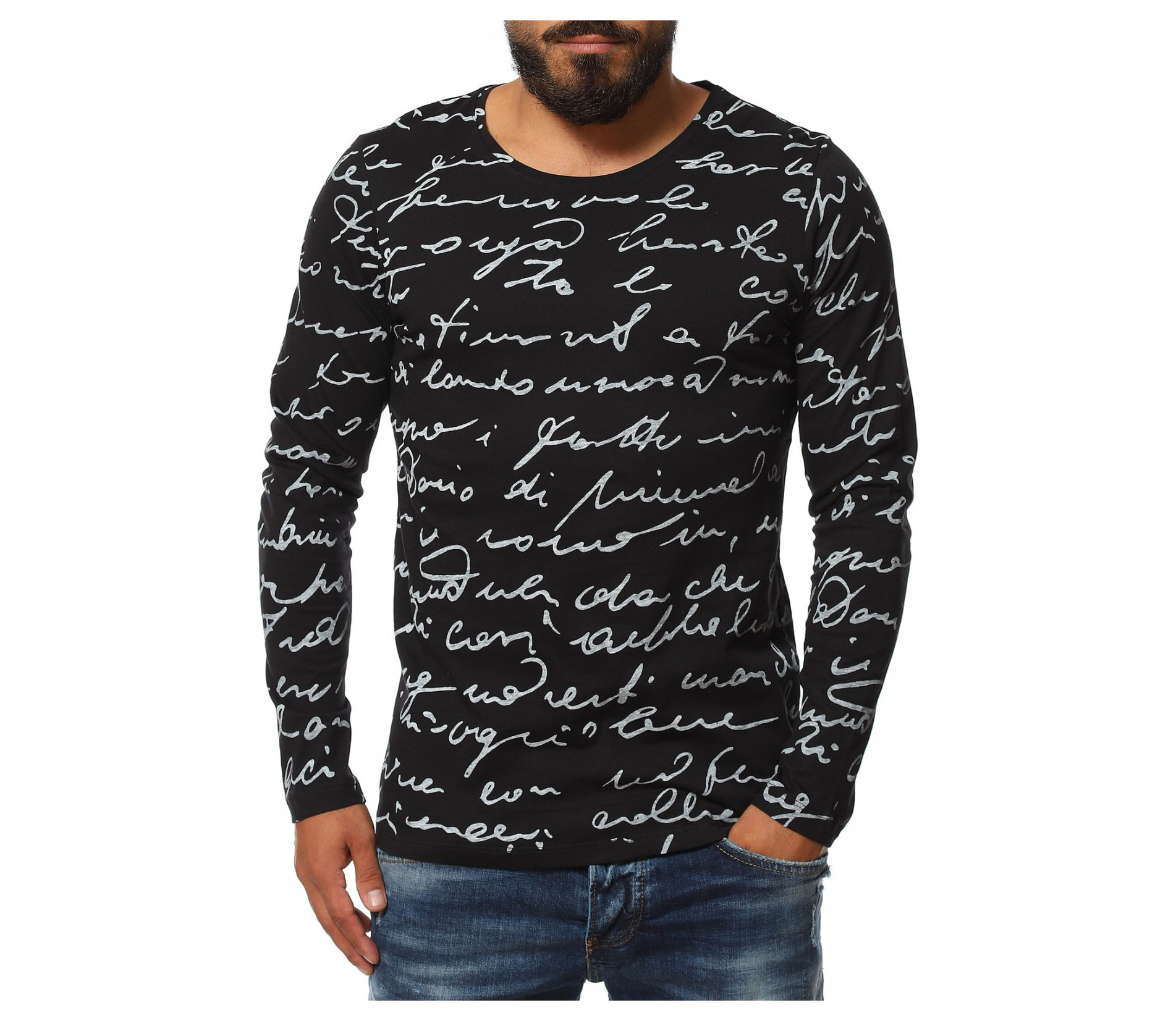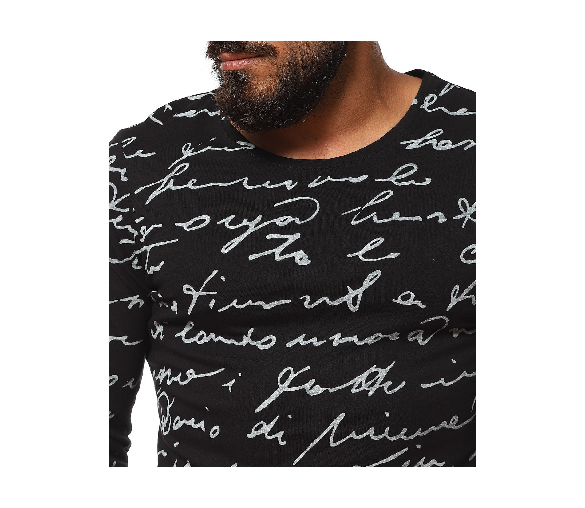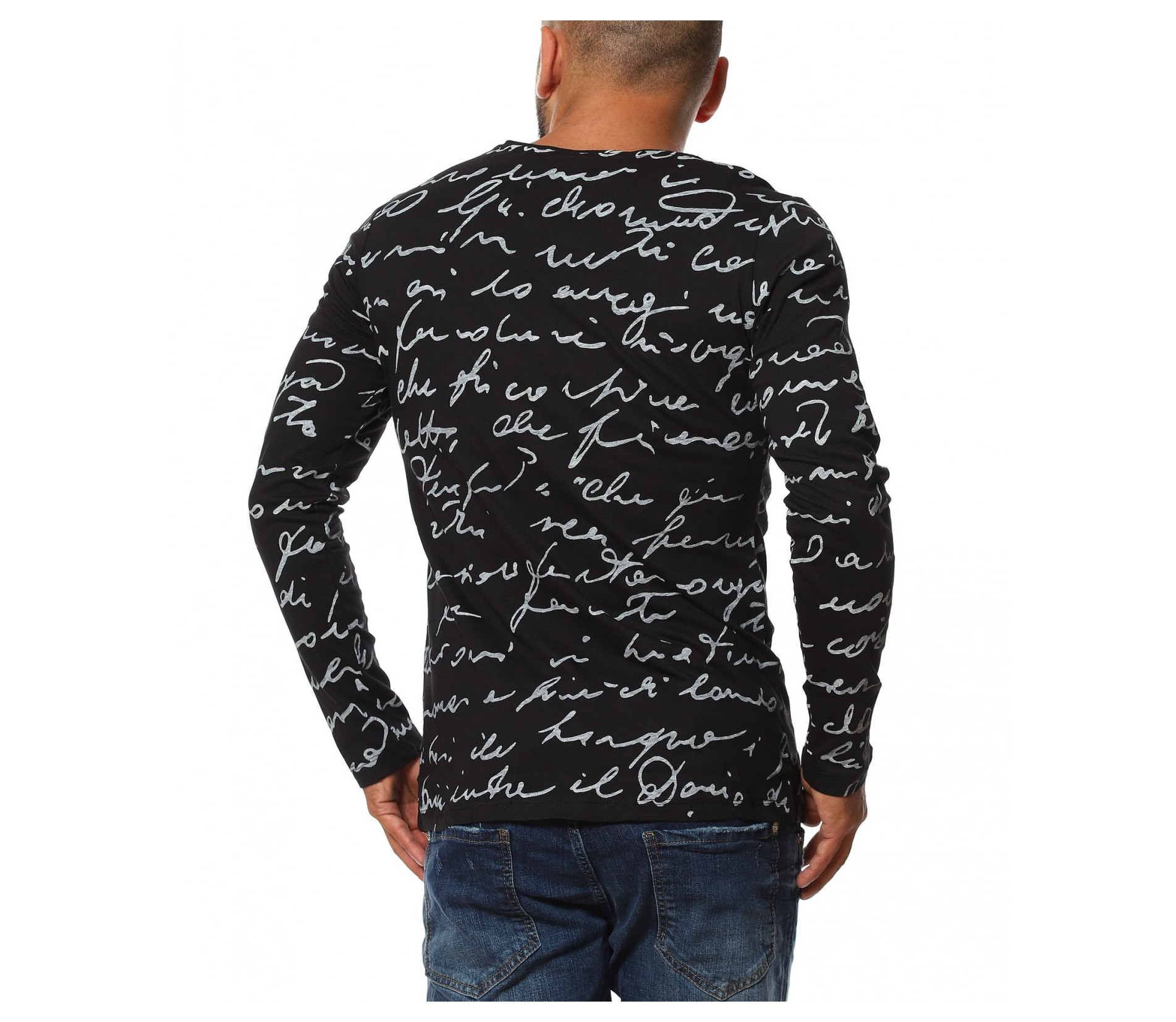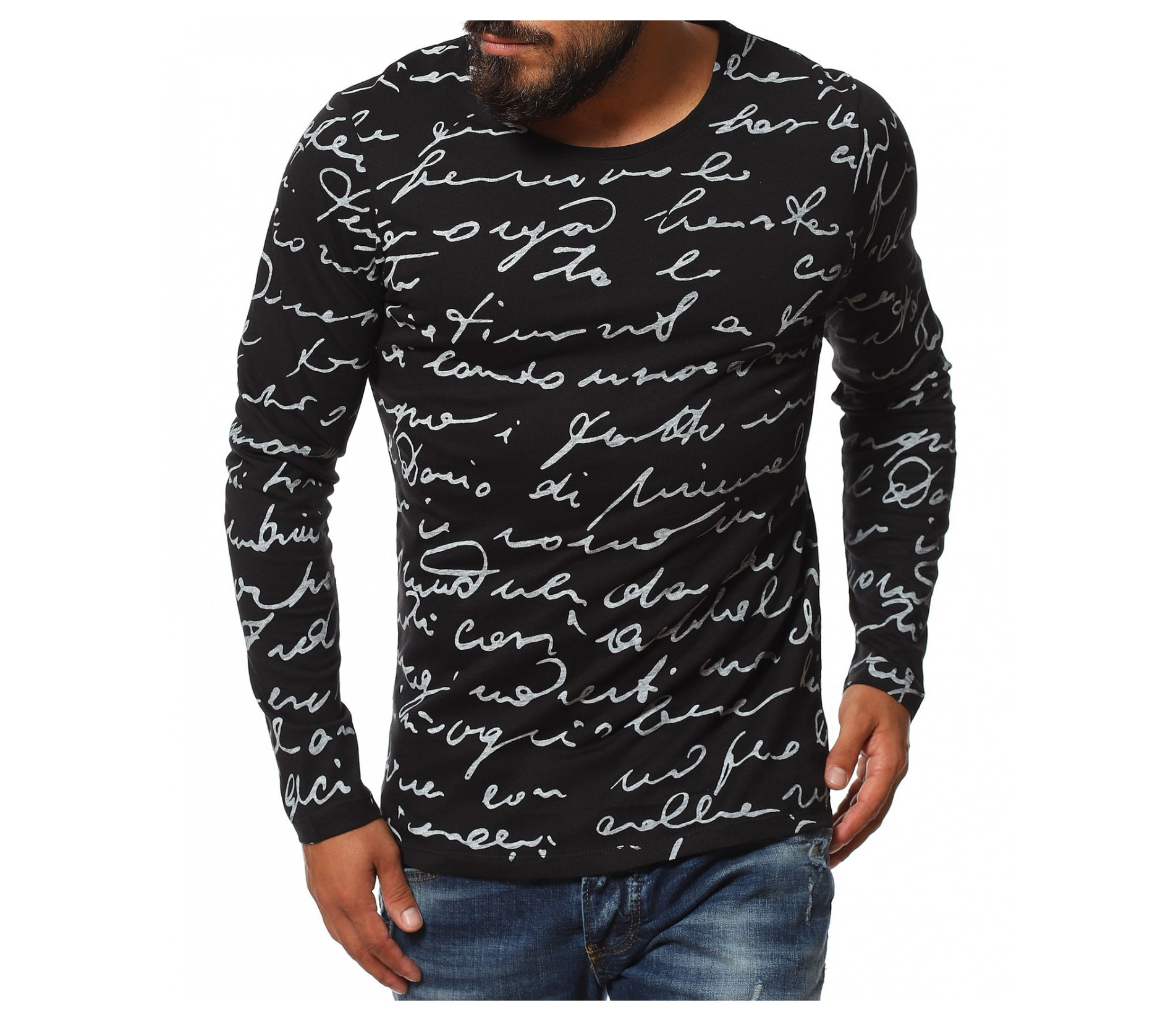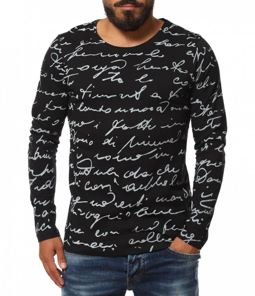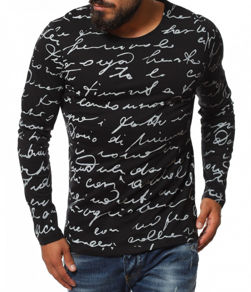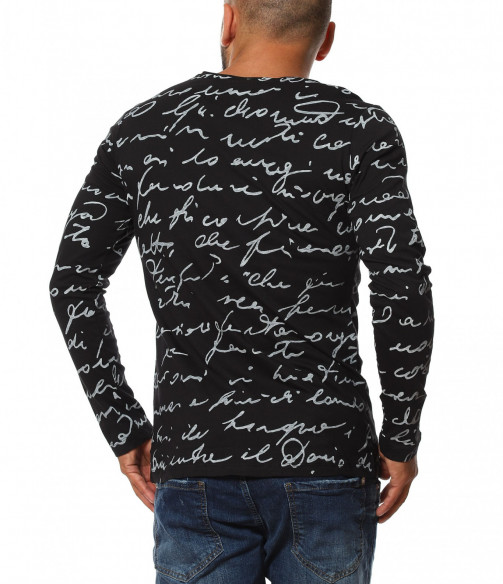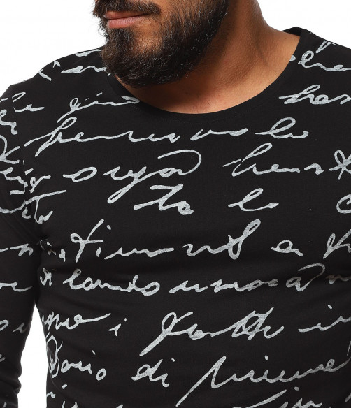 Описание на продукта: Класическа мъжка блуза, чиито дизайн е поверен изцяло на класическите мотиви и елементи. На първо място побрания нюанс дава възможност да я съчетаете с широк диапазон от цветове, като във всяка една комбинация да откривате нова страна на фланелката. В декоративен аспект, мъжката блуза е в по семпъл вид, като макар и масивен принт, разположен по цялата дължина, под формата на ръкописни надписи, той придава една ефирност и елегантност. Кройката на тениската с дълъг ръкав е по-вталена, като е наситена с еластичност, която създава нужния комфорт на тялото Ви. Последния мотив  това е деколтето. Овалната му форма слага и крайния щрих, вдъхващ стил и класност, необходима във всеки един мъжки гардероб.