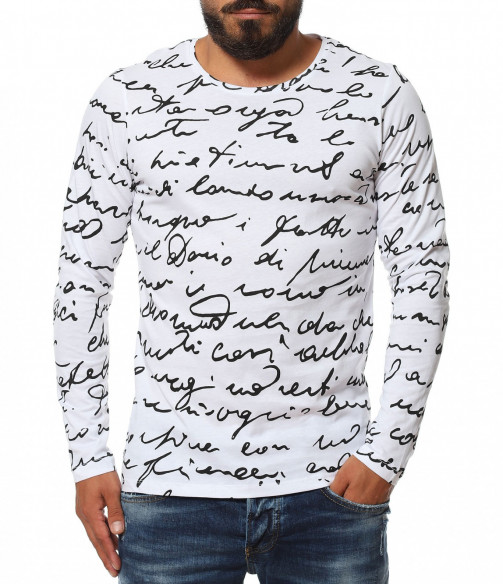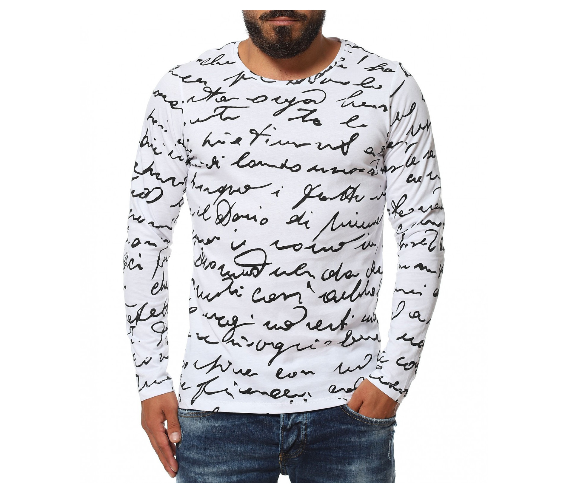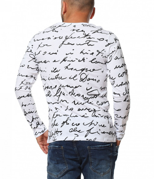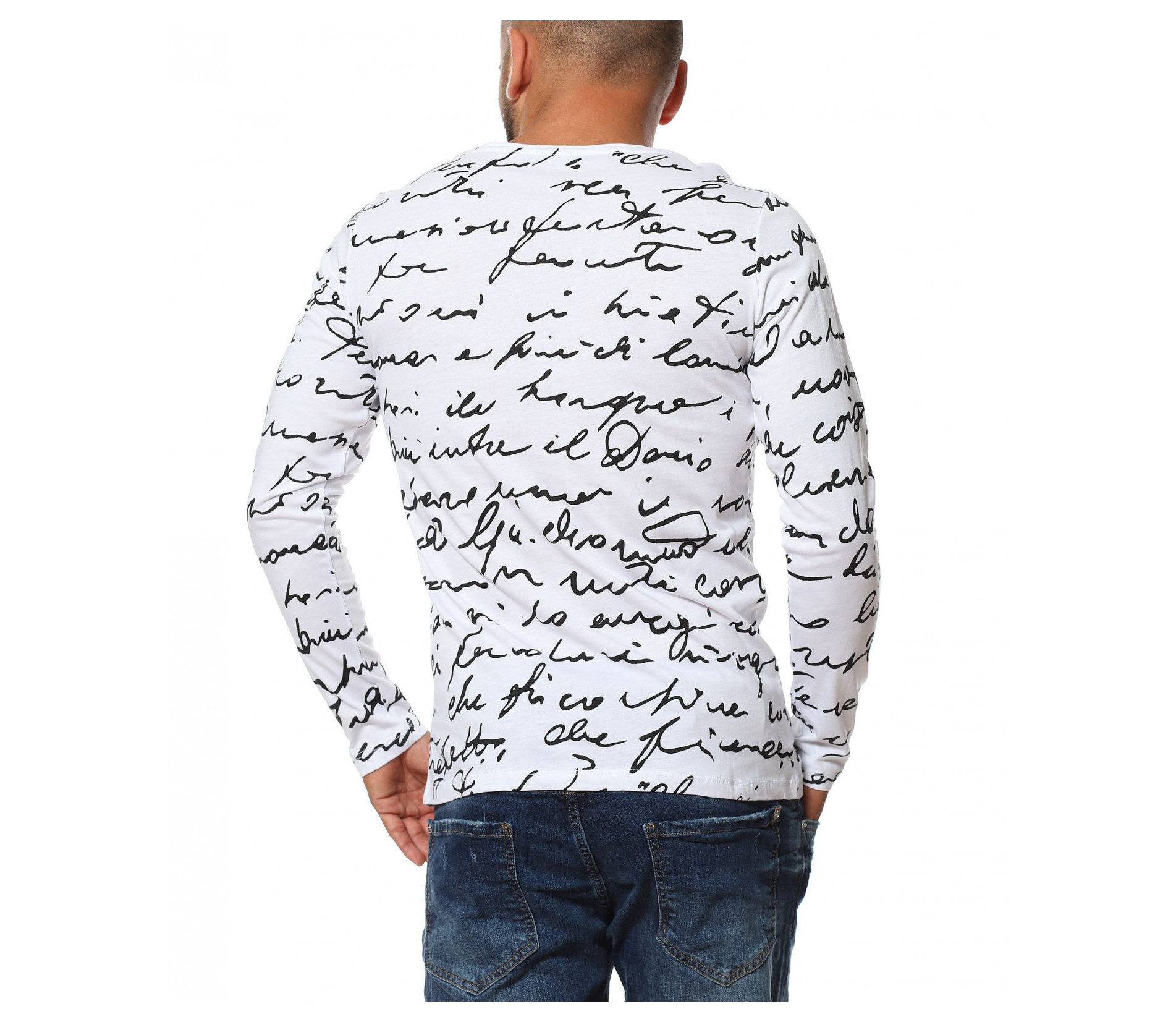 Описание на продукта: Класическа мъжка блуза, чиито дизайн е поверен изцяло на класическите мотиви и елементи. На първо място побрания нюанс дава възможност да я съчетаете с широк диапазон от цветове, като във всяка една комбинация да откривате нова страна на фланелката. В декоративен аспект, мъжката блуза е в по семпъл вид, като макар и масивен принт, разположен по цялата дължина, под формата на ръкописни надписи, той придава една ефирност и елегантност. Кройката на тениската с дълъг ръкав е по-вталена, като е наситена с еластичност, която създава нужния комфорт на тялото Ви. Последния мотив това е деколтето. Овалната му форма слага и крайния щрих, вдъхващ стил и класност, необходима във всеки един мъжки гардероб.