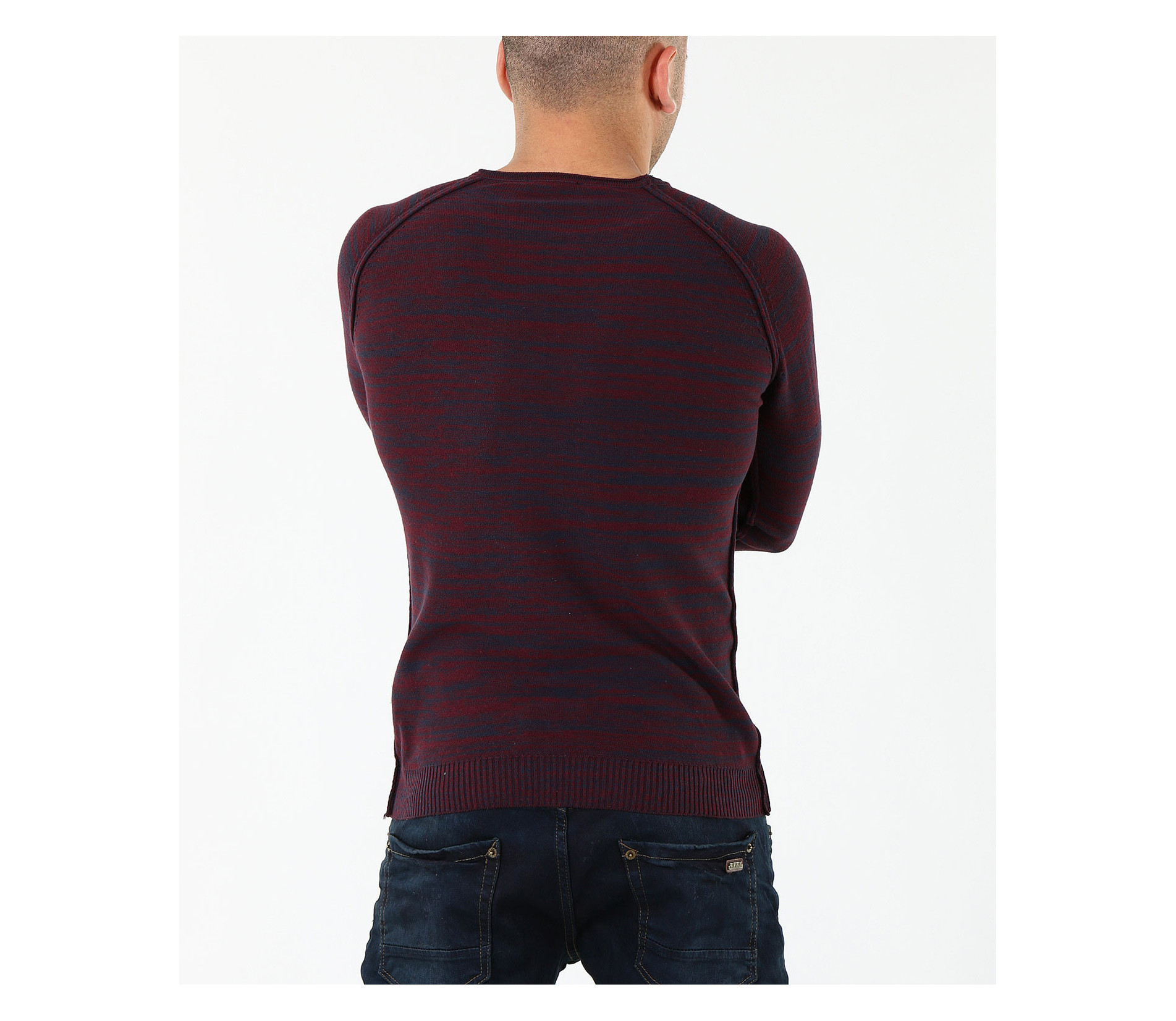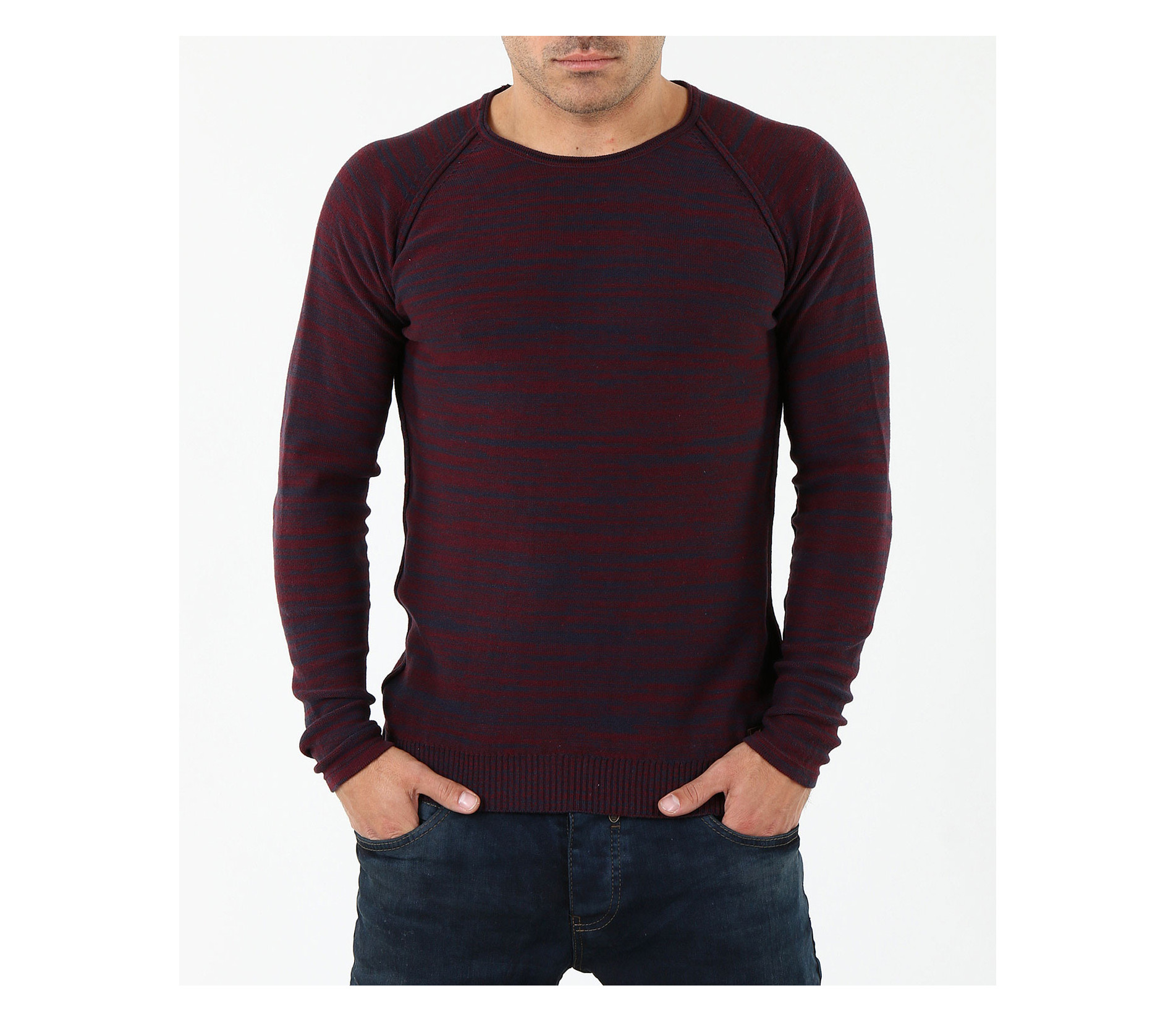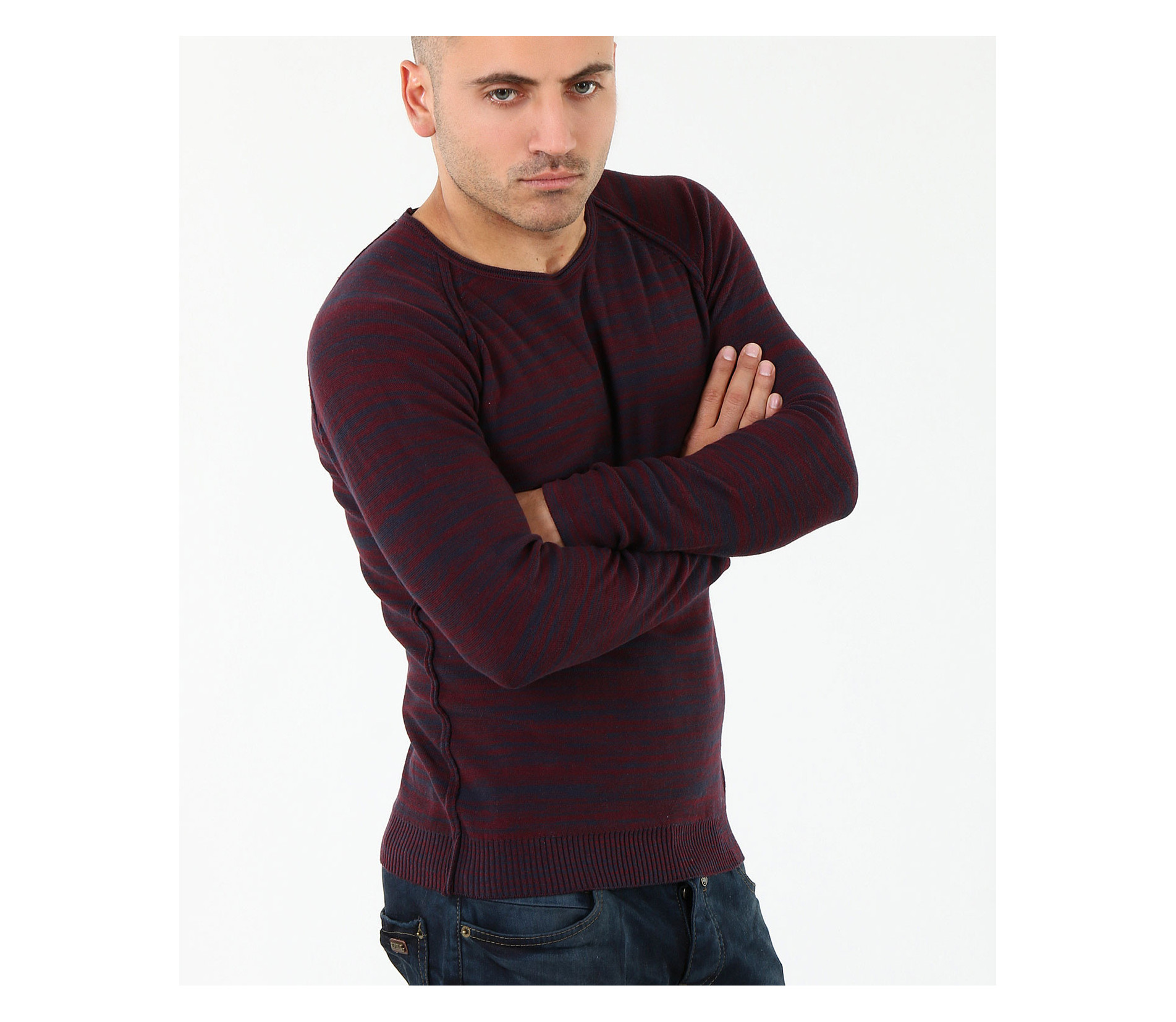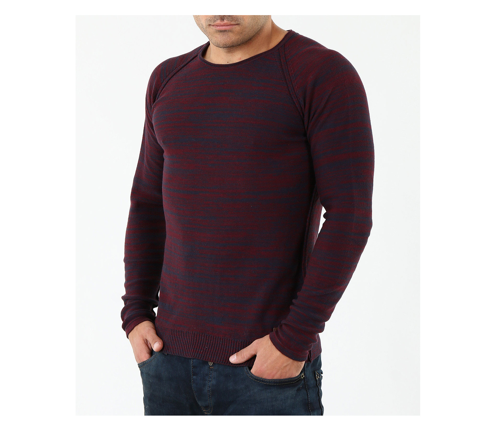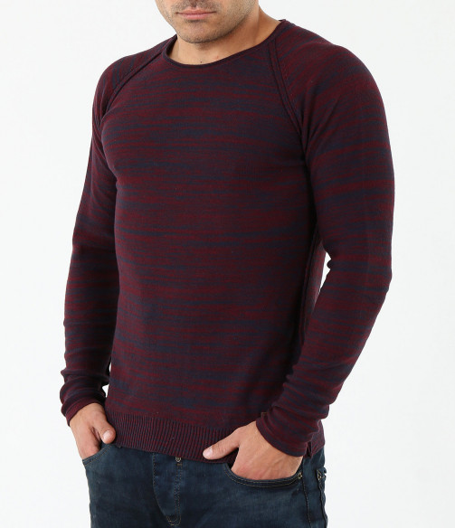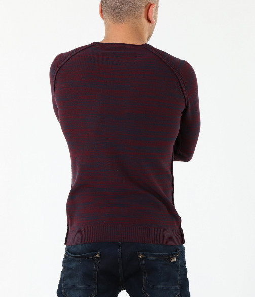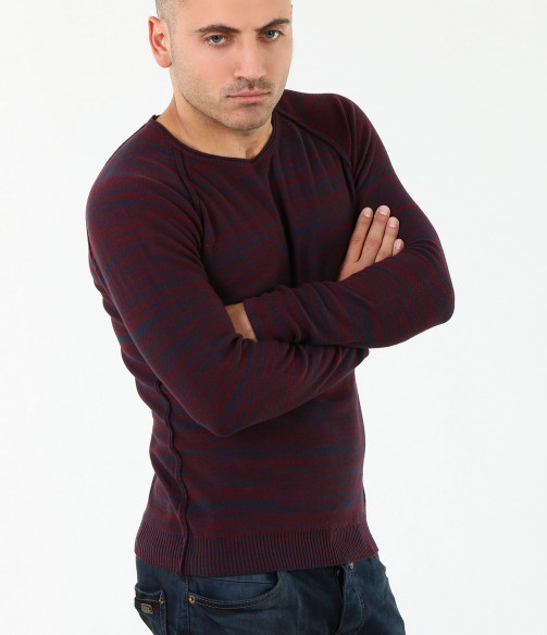 Описание на продукта: Мъжка блуза с преливащи цветове.Бордо,атуалния цвят за сезона,и сиво се преплитат, като създават меланж от цветове, което прави стандартния класически пуловер харесван и предпочитан.С ненатрапчиви акценти и изчистен от апликации и ефекти, това е перфекно допълнение към една изчистена визия,като комбинацията от цветове я разчупва.Съчетайте с дънки, спортен панталон, кецове,яке и аксесоари по Ваш вкус.