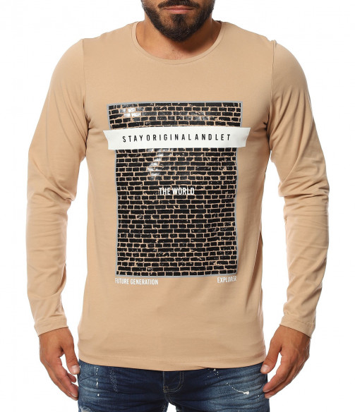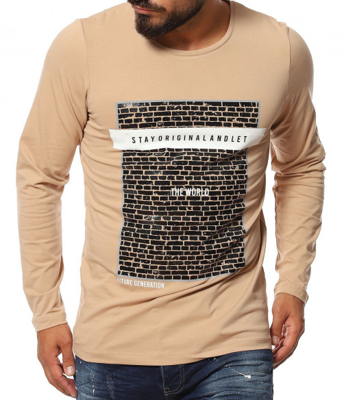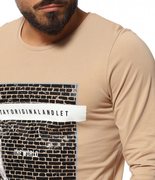 Описание на продукта: Представяме на вашето внимание супер актуален и силно оригинален модел мъжка блуза с дълъг ръкав, която впечатлява със своя акцент. Цялата предна част на модела е декорирана с цветни апликации, а над тях е нанесен надпис с големи букви с крещящ акцент. Памучната материя на блузата осигурява висококачествен комфорт, на който знаем, че държите. Кройката е леко вталена и еластична, следваща силуета. Деколтето е с овална форма, подчертано от кант в същия като основата десен. Самата мъжка блуза е налична в две актуални, класически, цветови разновидности - бял и бежов, и са отлична предпоставка за ежедневието. Лесно се комбинират с всякакви модели дънки, карго панталони и кецове, оставяйки винаги безупречен стайлинг, подбран идеално, доверявайки се на модните тенденции.