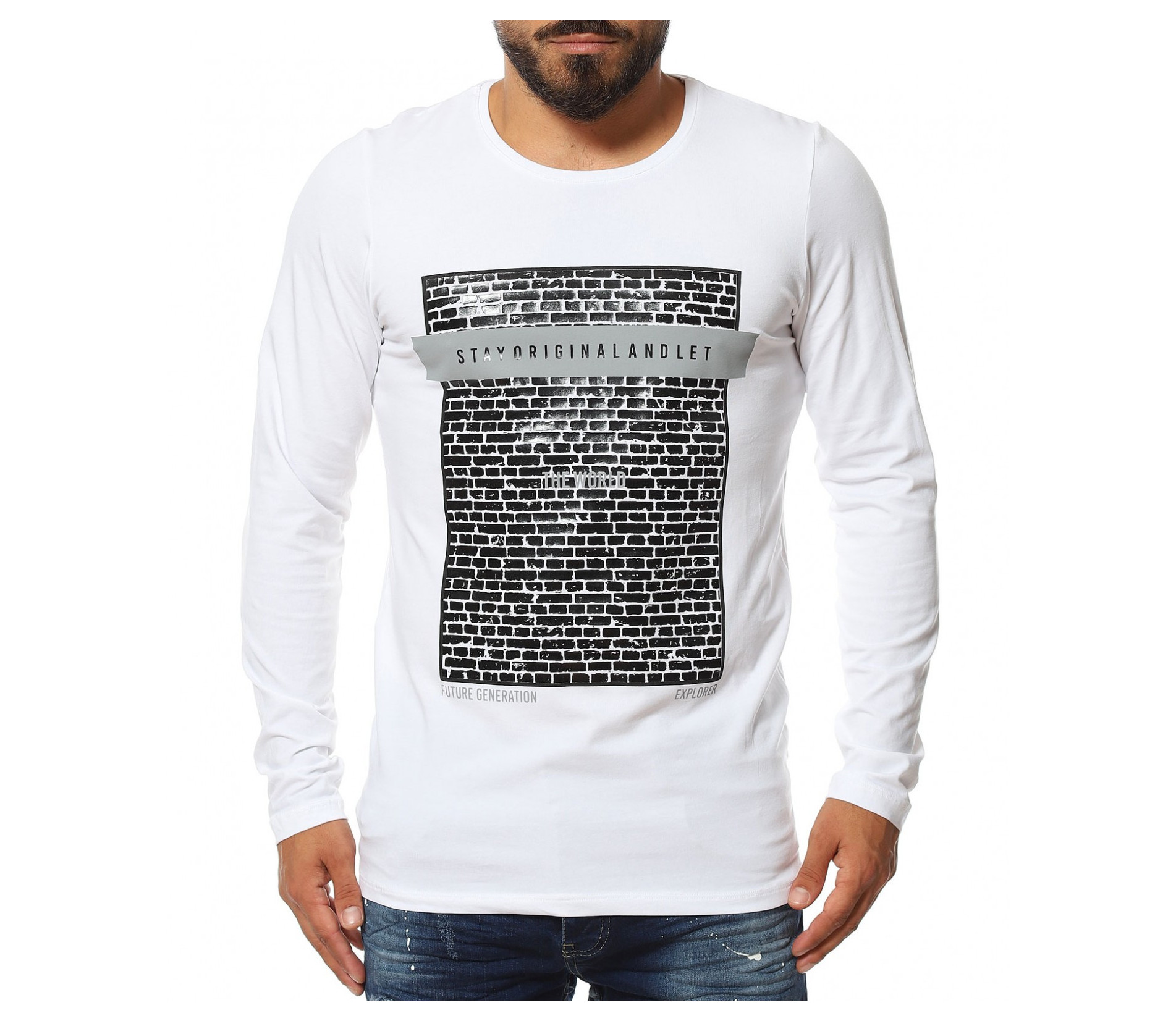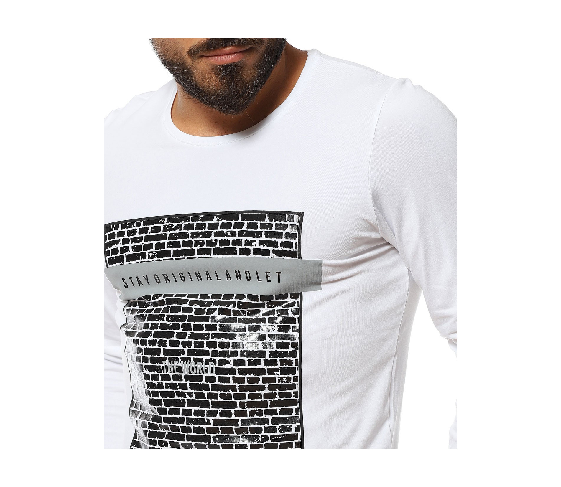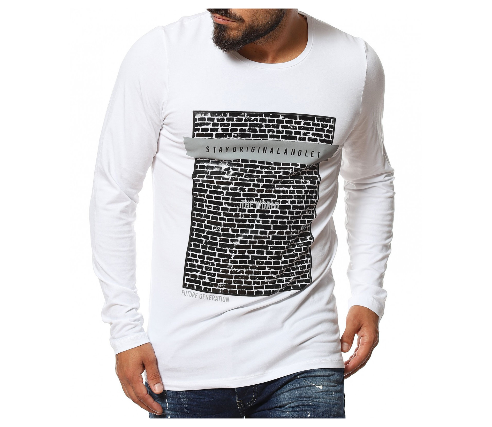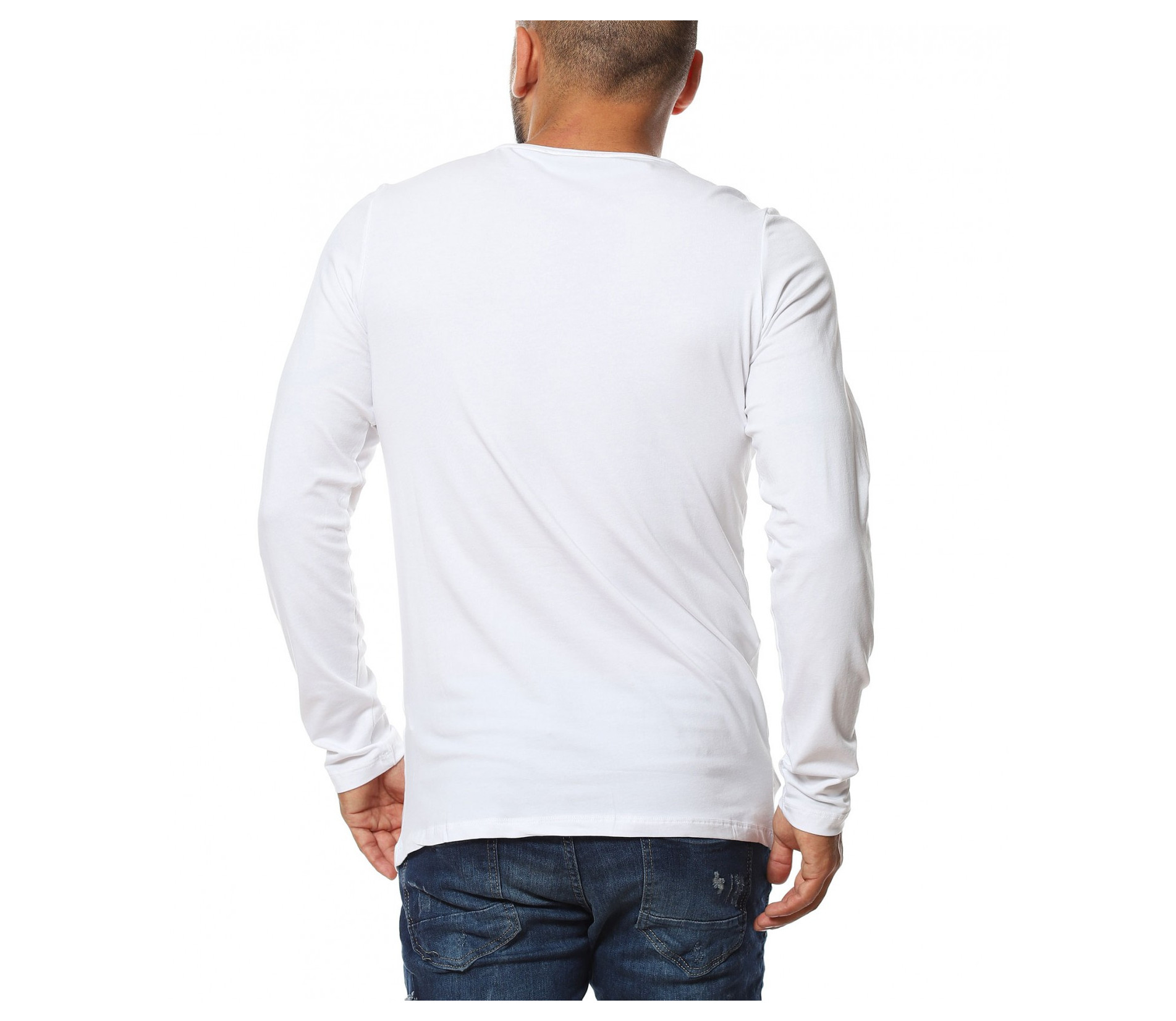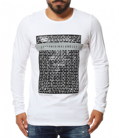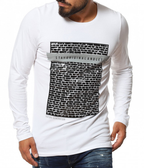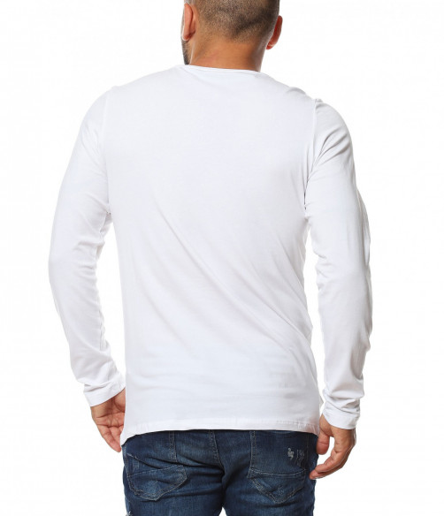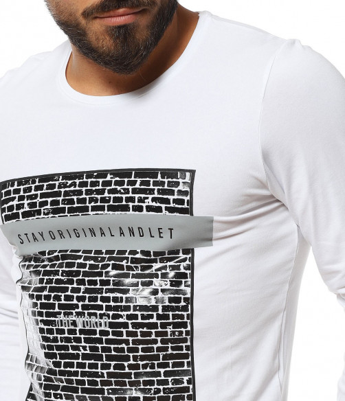 Памучна тениска с дълъг ръкав 11622 - Бял
