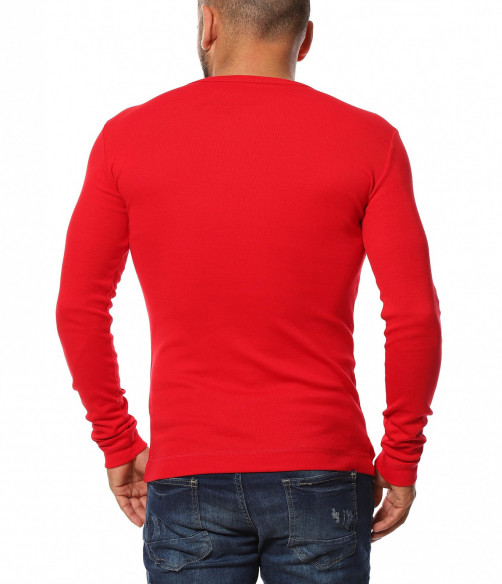 Описание на продукта: Стилът и класата на един мъжки имидж се крие в деталността. Именно заради това Ви представяме един модел мъжка тениска с дълъг ръкав, която успява да изгради у всеки стайлинг автентично и същевременно модерно излъчване. Дизайнът на блузата е поверен на едноцветна основа, която откривате в няколко наситени нюанса, а именно зелен, червен, черен и син. Около раменете са поставени два одебелени шева, които оформят линията на ременете, създавайки им перфектен силует. Цялата материя е подбрана в много ситен рипсен вариант, наситен с еластичност, която допълва с комфорт. Деколтето е с нотка на атрактивност, подбрано в бод форма Практичността на този модел мъжка блуза е безкрайна, тъй като е подходяща както за ежедневен аутфит, заедно с чифт дънки и кецове, така и за елегантен имидж под спортно сако или блейзер.