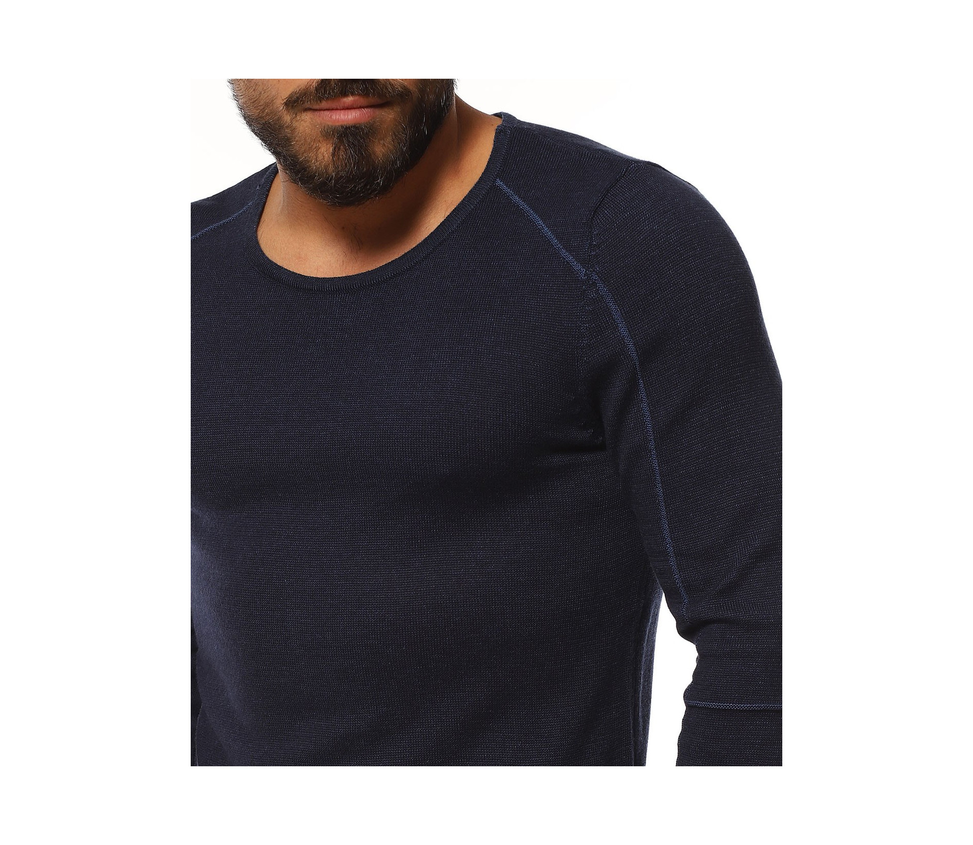 Описание на продукта: Ефектен модел мъжка спортно-елегантна блуза, на пръв поглед семпла и стилна. Вглеждайки се в иначе еднотнния десен, забелязваме интересната декорация, разположена в предната част. Ситно наребреният плат успява да привлече погледите в себе си, като разчупи строгия вид на блузата и внесе настриение и неизменния индивидуален привкус, към който се стремим. Допълнена от вталена линия, прилягаща по тялото и разбира се прибрно овално деколте, завършващо ефектния имидж, получавате мъжки пуловер, отговарящ на всички критерии за елегантен и атрактивен стайлинг.Финалчен щрих се отличава при рамото, чрез релгна ръкав и подчертаващ кантСемплия му на пръв поглед вид, позволява различни съчетание както с цветове така и модели на дънки, обувки и връхни дрехи. Подберете точния нюанс, избирайки от: черен, сив или син.