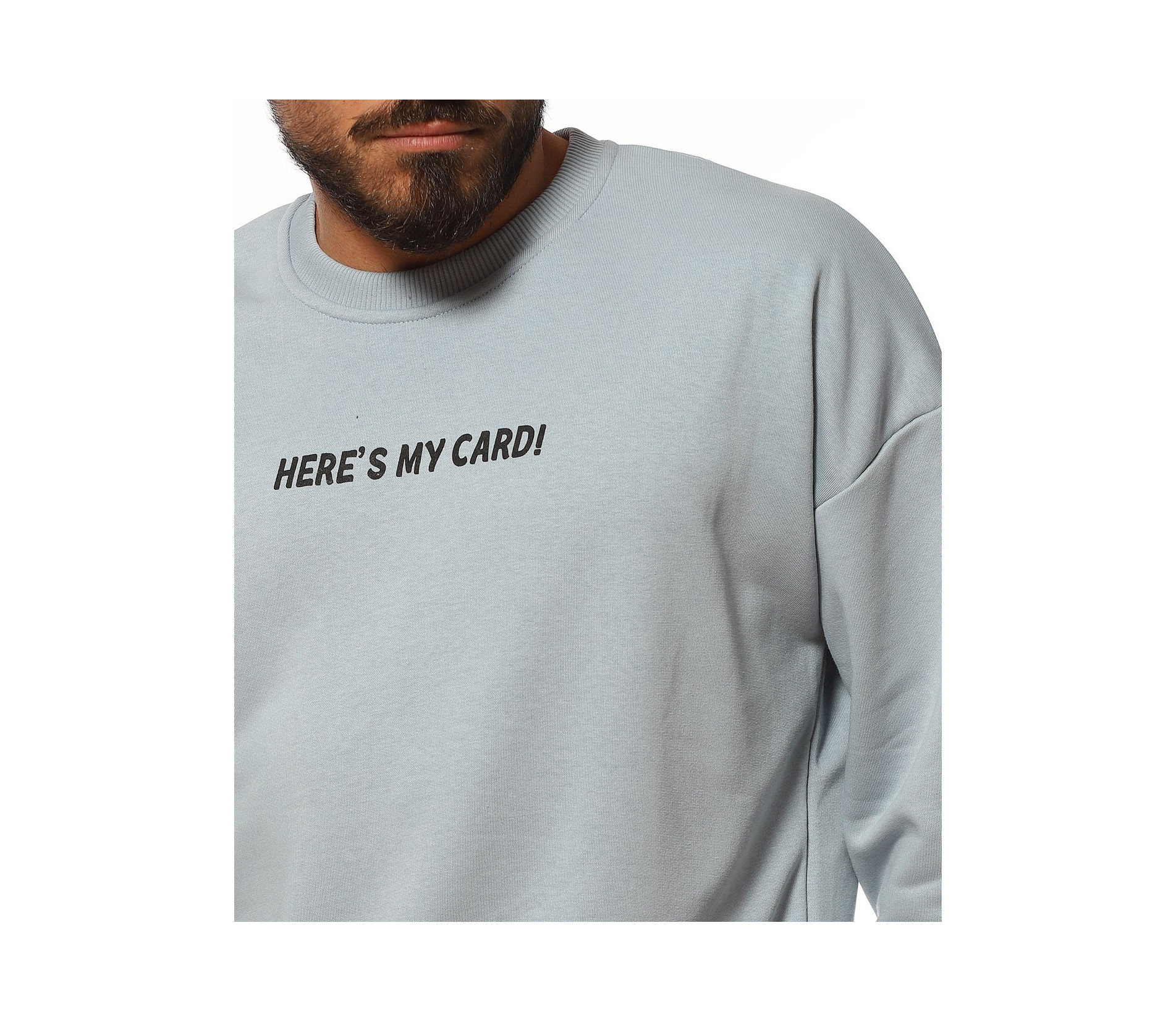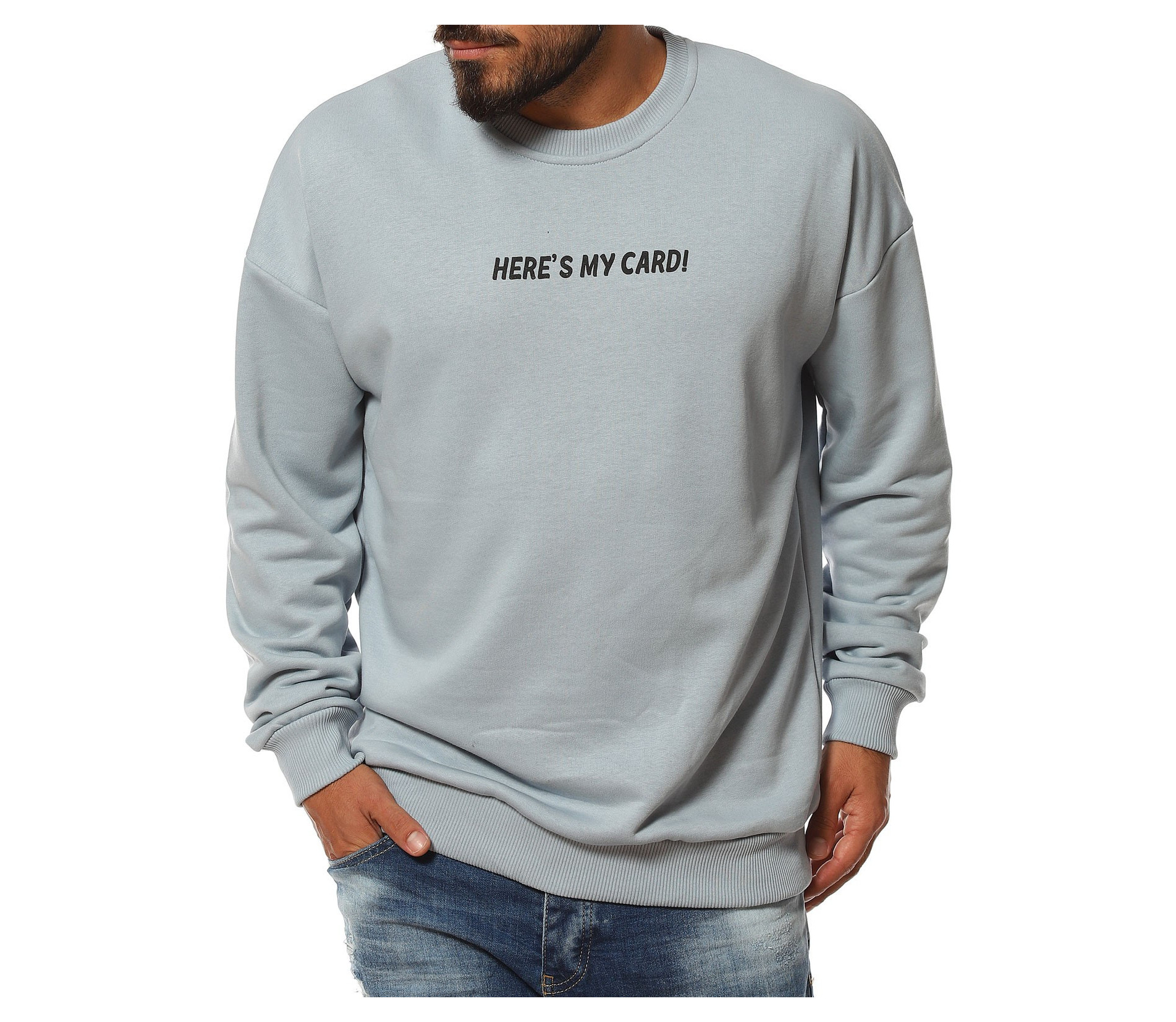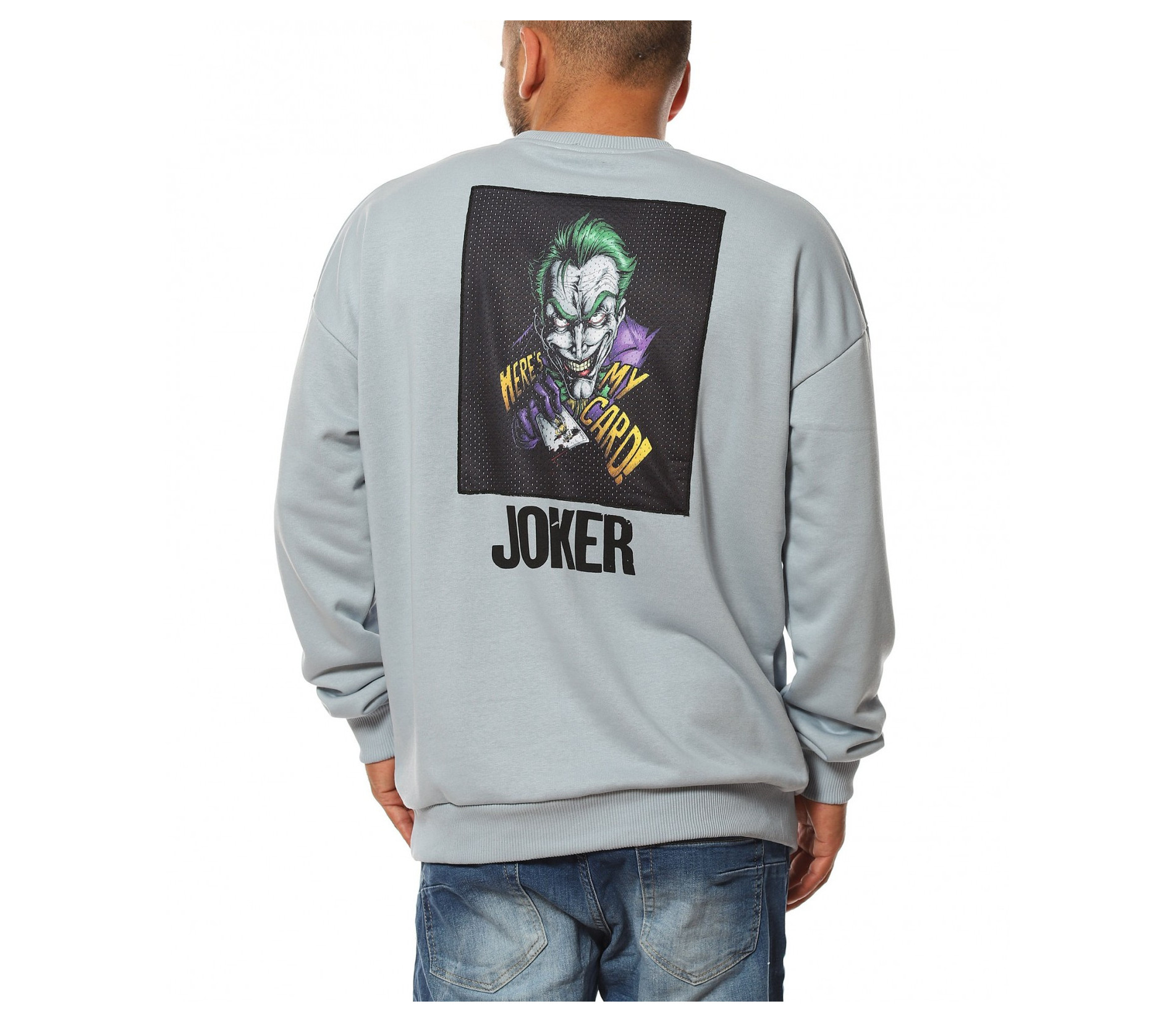 Описание на продукта: Зарадвай себе си или любим човек с топла, есенна блуза с интересна, леко спортна кройка. Самия дизайн е изработен в два лесно съчетаеми и класически цветови десена - бледо син и черен, които бързо ще паснат на голяма част от твоя гардероб. Мъжката блуза е подходяща за ежедневна употреба, а кройката е леко свободна, но осигуряваща достатъчна свобода на движение и уют през студените дни. В долната част моделът завършва с ластик, който обхваща и областта на ръкавите. Именно този мотив придава леко спортния дъх на блузата, като поставя началото за лесно комбиниране както с дънки, така и със дрехи от спортен, ежедневен характер. Върху предната част са поставени няколко семпли надписа Here is my card. а на гърба е изобразен ликът на The Joker, тази закачка превръща блузата в абсолютен любимец за този сезон. Деколтето е в любимата на всички овална форма, подчертано от малък кант. Бъди модерен с топла, есенна блуза в стилен дизайн.