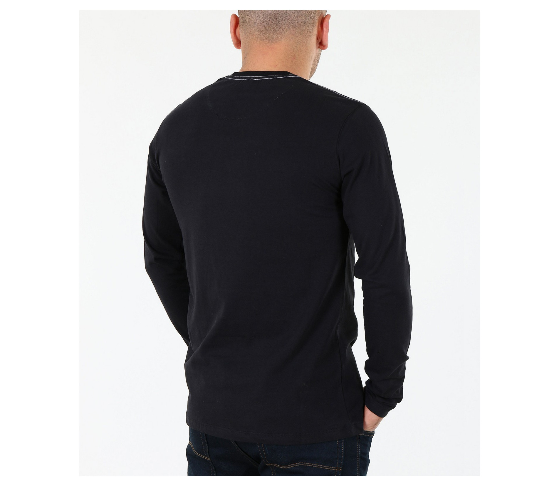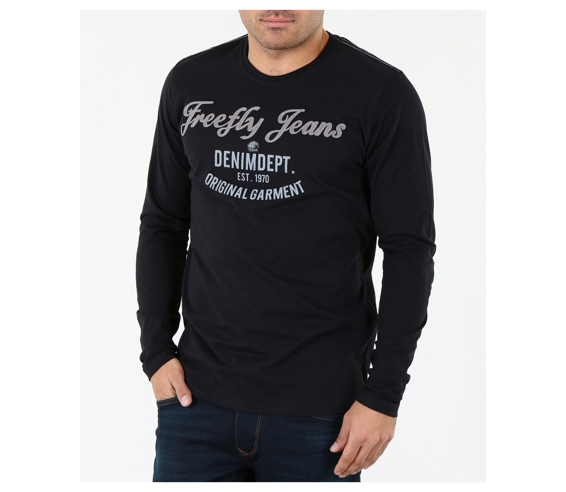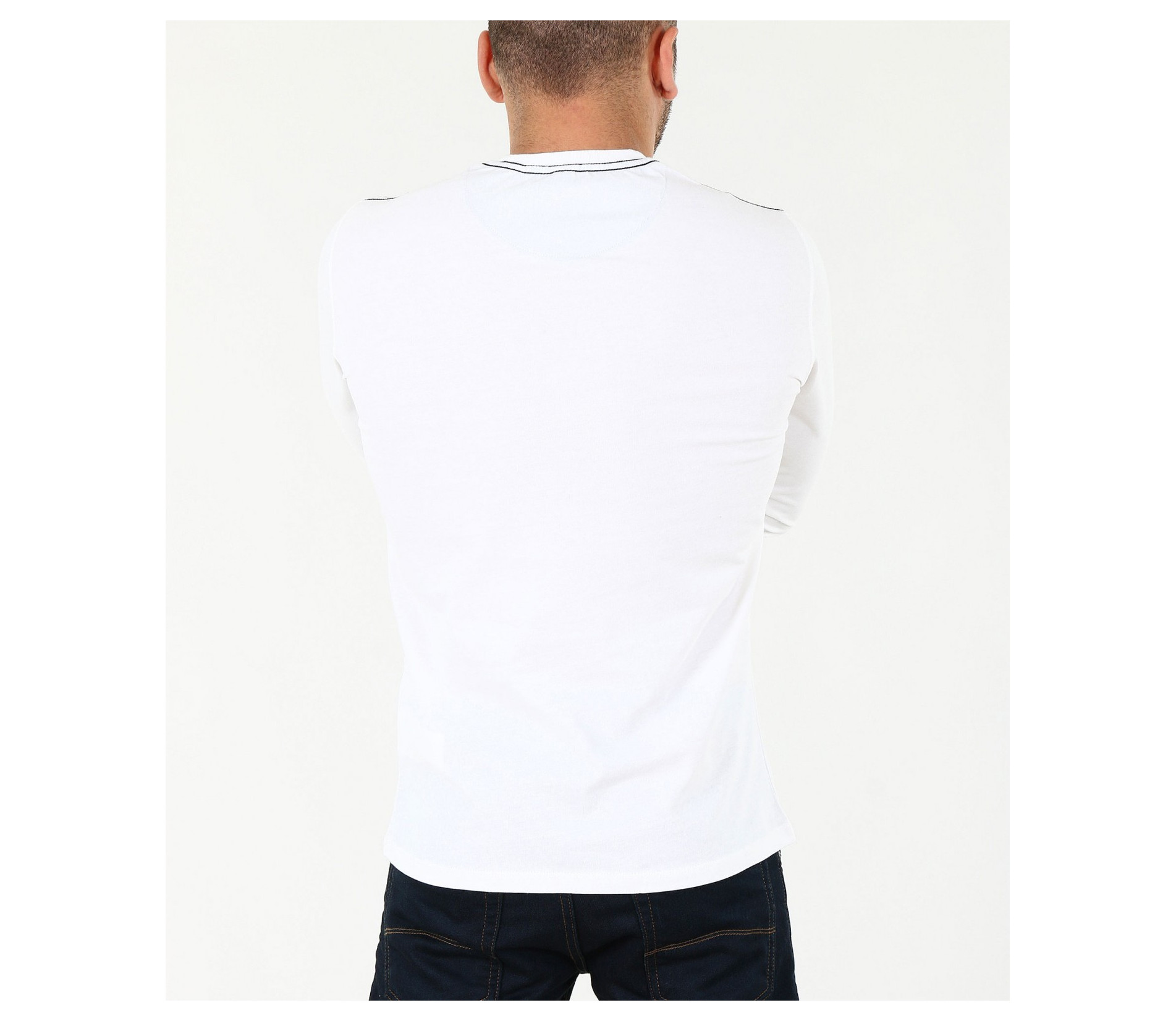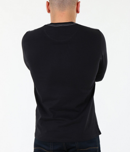 Описание на продукта: Мъжка семпла блуза в черен и бял цвят. Моделът е напълно подходящ за всички, които предпочитат по-изчистения външен вид. Спортно-елегантена, в класическите цветове, безспорно бързо харесван от по-голямата част от мъжкото съсловие. Като акцент са поставени няколко надписи в предната част на модела, открояващи се със светло сив цвят. Деколтето е овално, стилно следващо линията на врата. Дължината е стандартна, а кройката леко вталена. Напълно подходяща е за ежедневна употреба, а в комбинация с удобни обувки и чифт атрактивни дънки, получавате изискан street стайлинг, който определено ще отговори всички ваши очаквания.