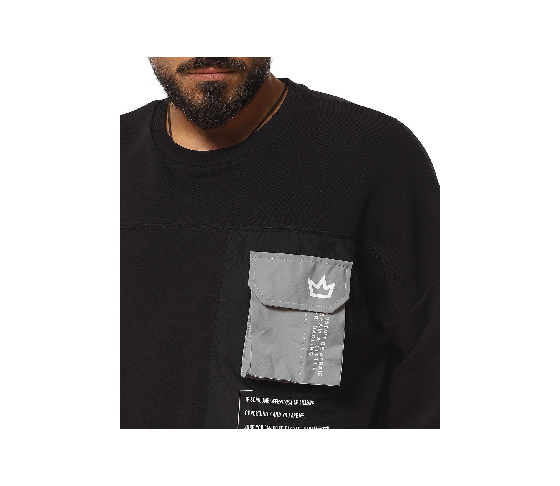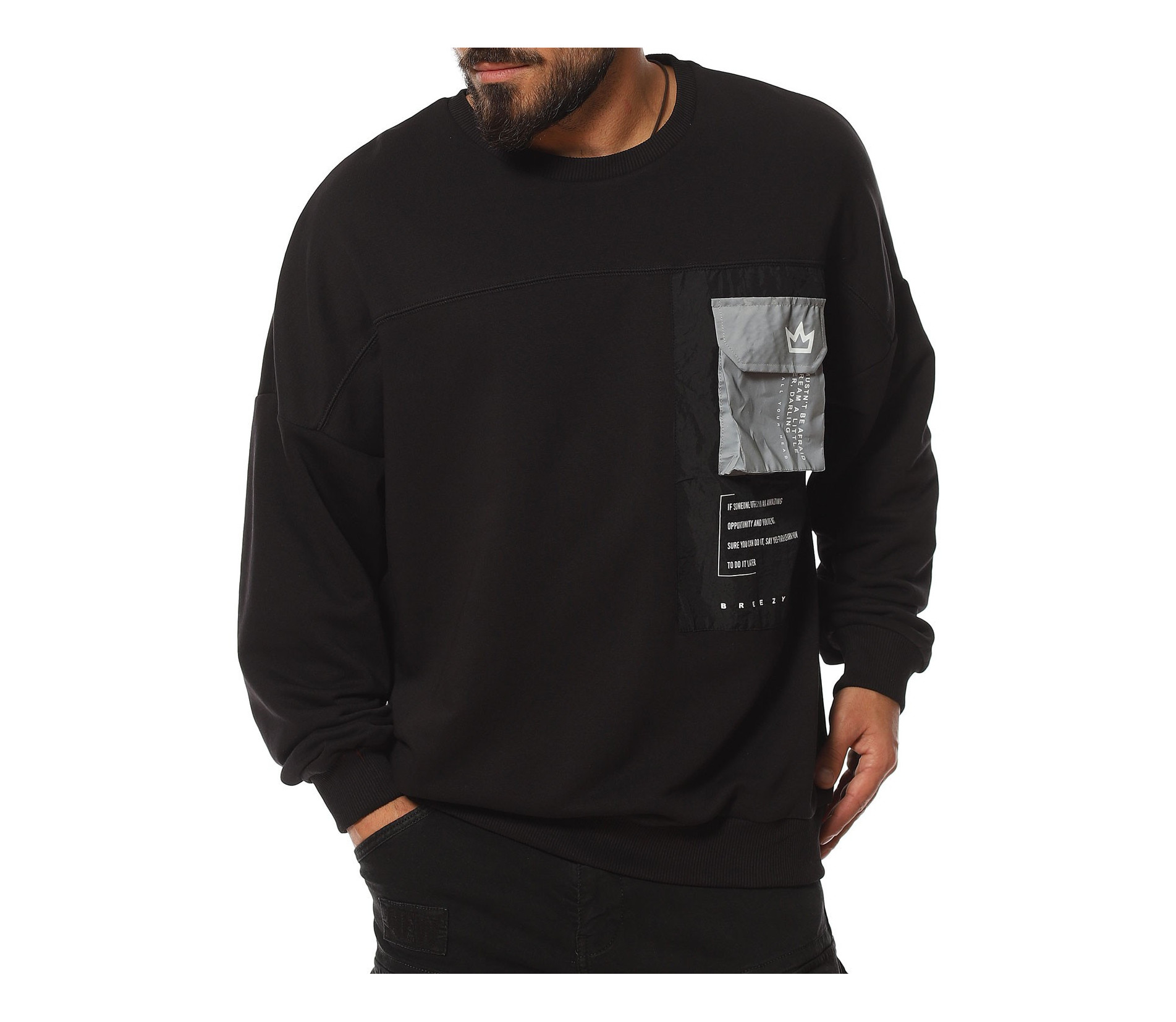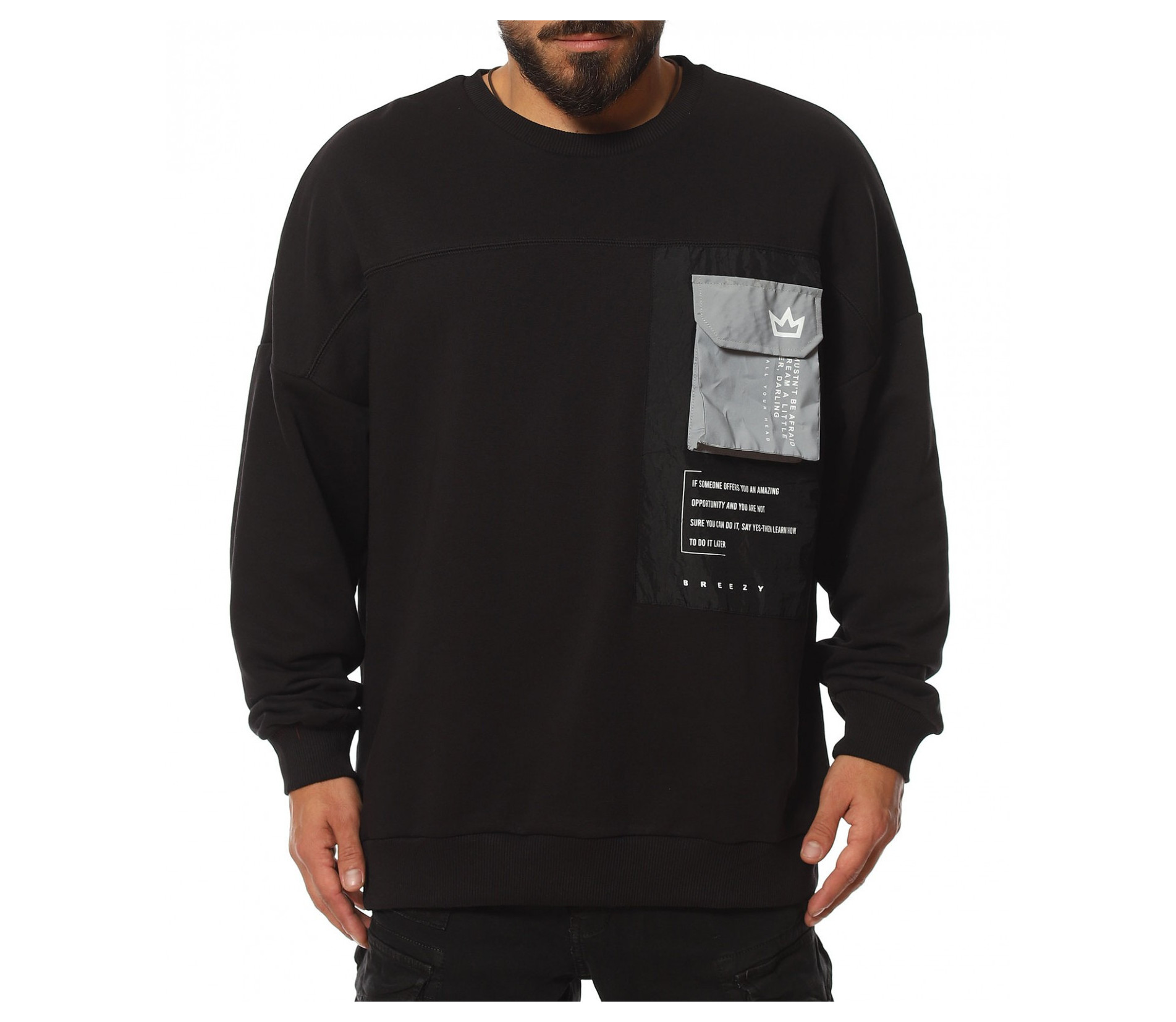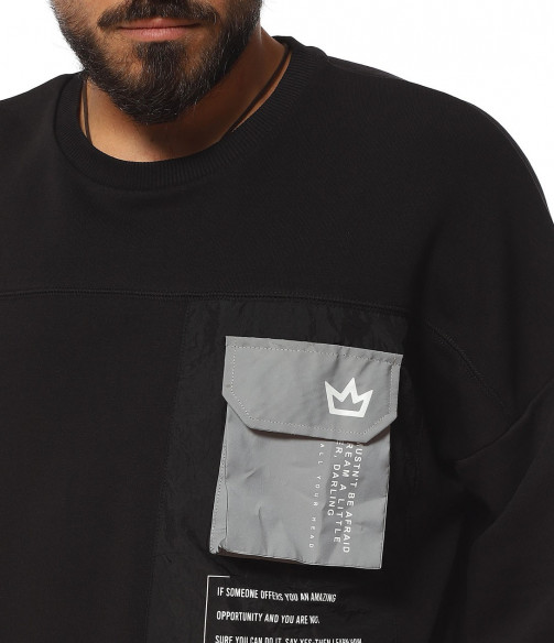 Описание на продукта: За феновете на новите модни тенденции, наситени с авангардност, стил и комфорт, предлагаме този неповторим модел мъжка ежедневна блуза, чията поплата позволява да се съчетае както с яке, така и със спортен елек, макар и в по-студените дни от годината. Линията н фланелата е свободна, тип oversize. Този тип дизайн се отличава с по-свобнда линия, като основно впечатление прави и ръкава. В областта на рамото е разнообразно с паднал шев, което от своя  страна води до по-обемен и дълъг ръкав, който съставя това небрежно излъчване. В края му е разположен и ластик, пренесен като мотив от талията. Деколтето, последния елемент от изработката е поверено на типична овална форма. Разбира се, на лице е и авангарден акцент, под формата на масивна черна щампа при гърдите, над която е добавен и декоративен джоб с капаче.