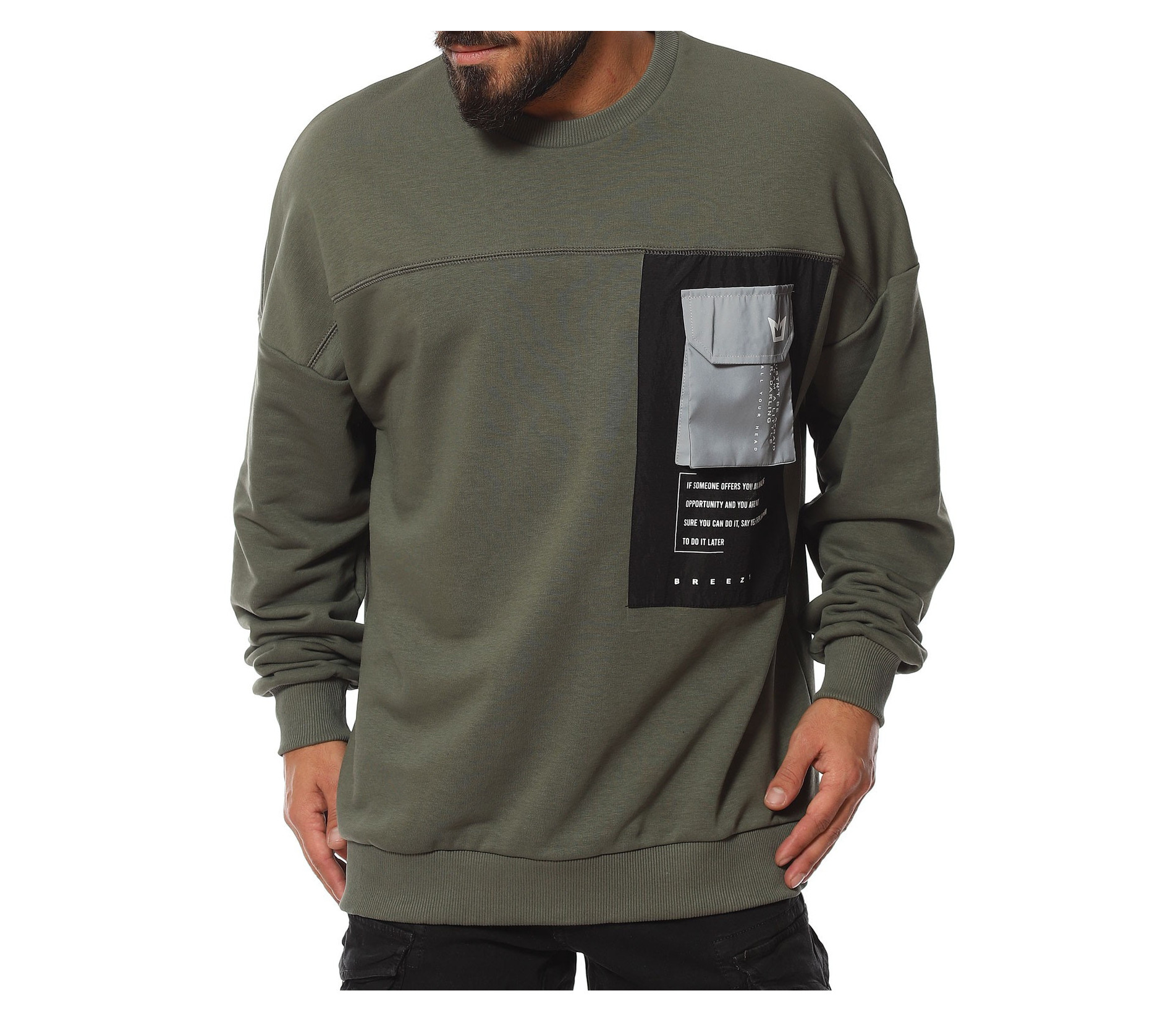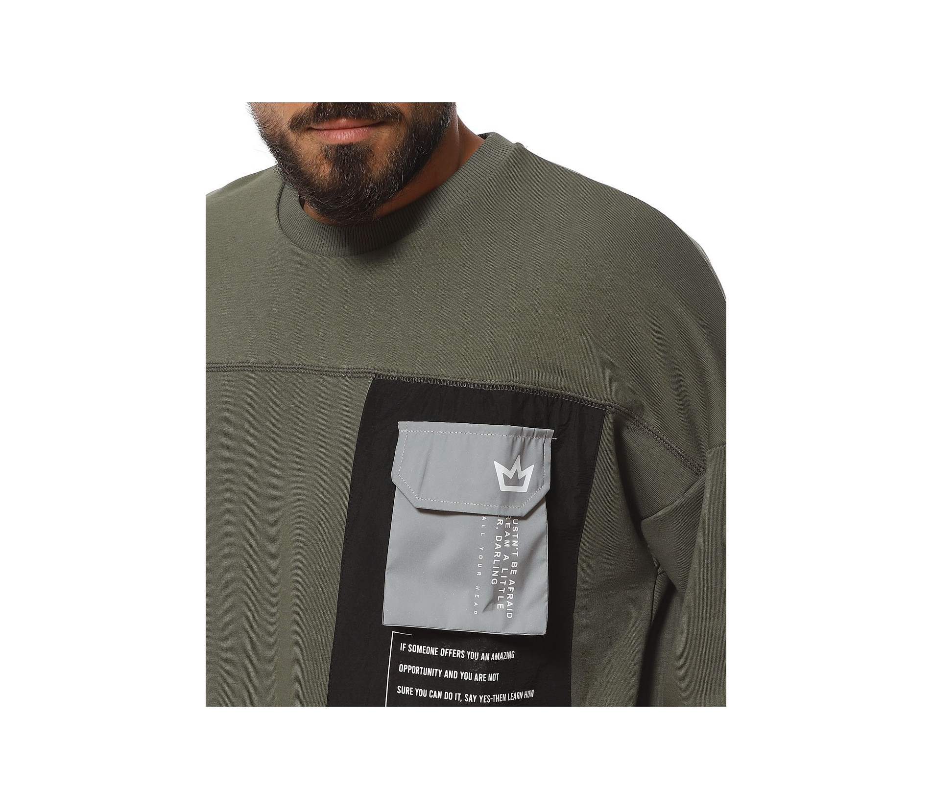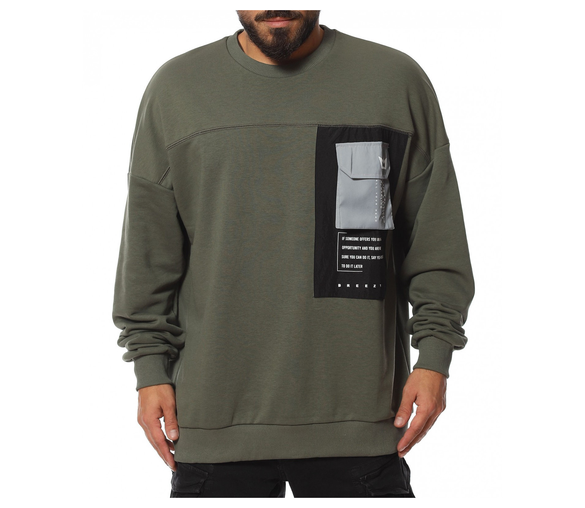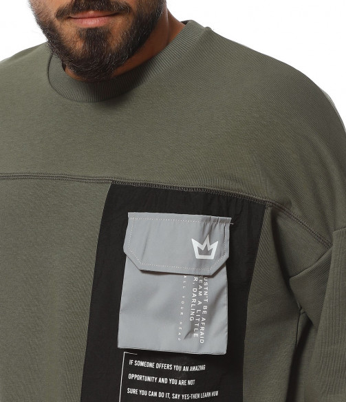 Описание на продукта: За феновете на новите модни тенденции, наситени с авангардност, стил и комфорт, предлагаме този неповторим модел мъжка ежедневна блуза, чията поплата позволява да се съчетае както с яке, така и със спортен елек, макар и в по-студените дни от годината. Линията н фланелата е свободна, тип oversize. Този тип дизайн се отличава с по-свобнда линия, като основно впечатление прави и ръкава. В областта на рамото е разнообразно с паднал шев, което от своя страна води до по-обемен и дълъг ръкав, който съставя това небрежно излъчване. В края му е разположен и ластик, пренесен като мотив от талията. Деколтето, последния елемент от изработката е поверено на типична овална форма. Разбира се, на лице е и авангарден акцент, под формата на масивна черна щампа при гърдите, над която е добавен и декоративен джоб с капаче.