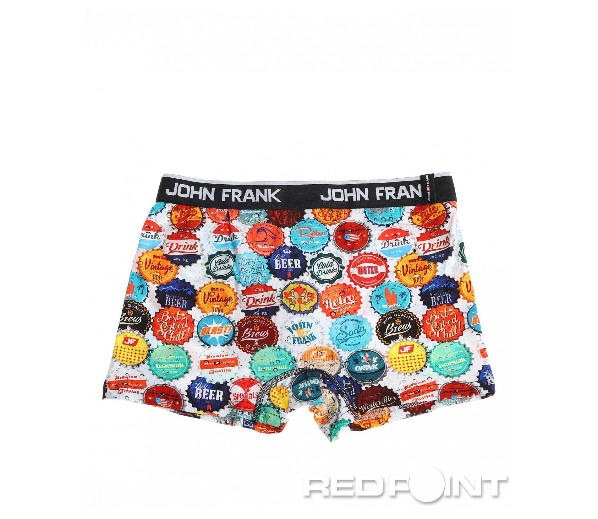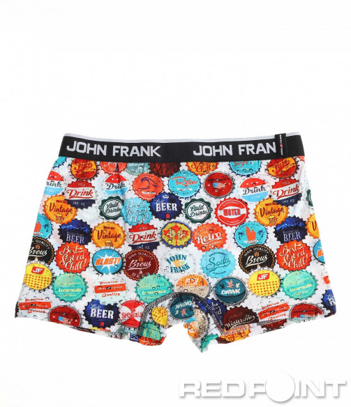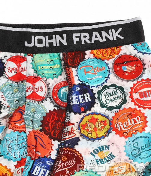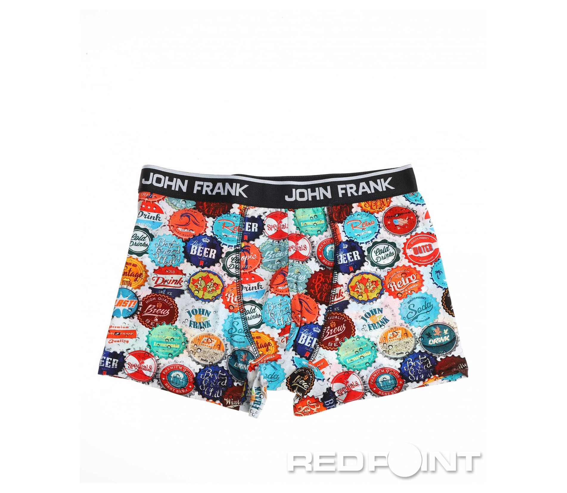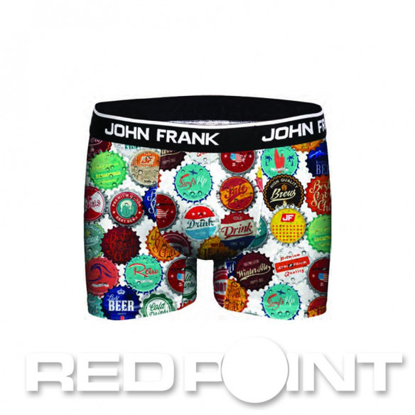 Описание на продукта: Мъжки актуални боксерки с интересни апликации. Самия принт имитира капачки от различни напитки, декорирани с много цветове и надписи. По този начин се създава един шарен и нестандартен десен, впечатляващ с оригиналност и неподражаемост. В областа на кръста има широк ластик в черен цвят с бял надпис с името на марката John Frank. Този модел боксерки се предлага в атрактивна кутия и е перфектен избор за подарък. Заложи на качественото бельо, съставено от памук и еластан, осигурявайки максимален комфорт и чувство на удобство през цялото ежедневие.