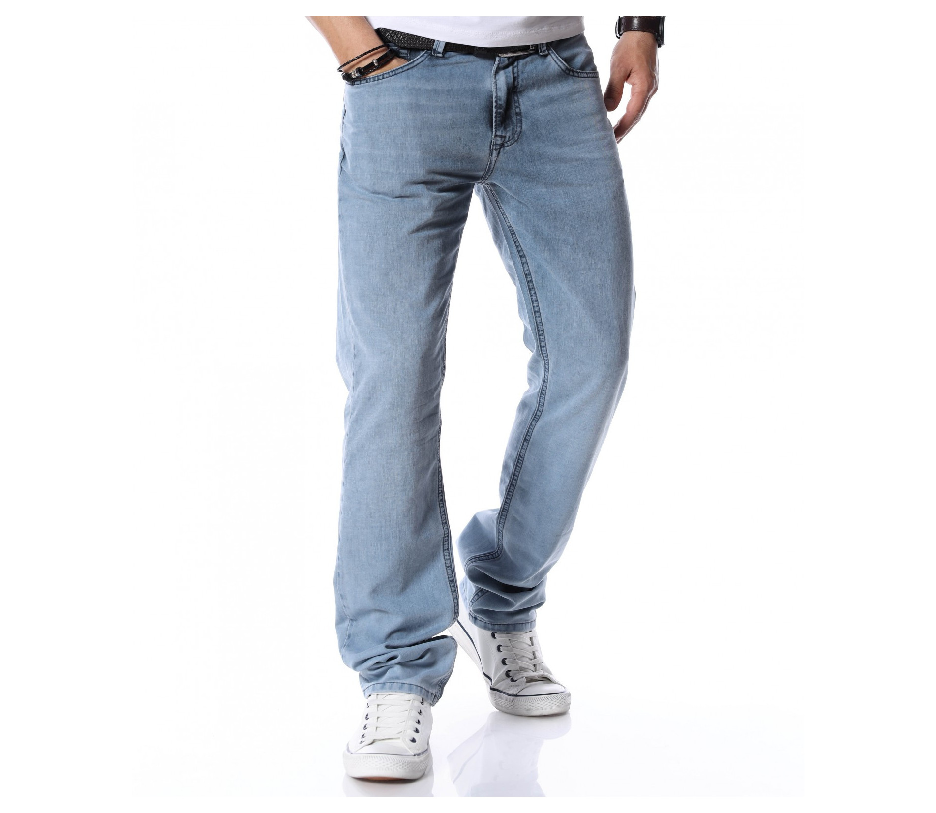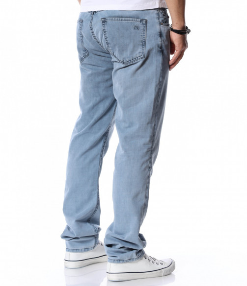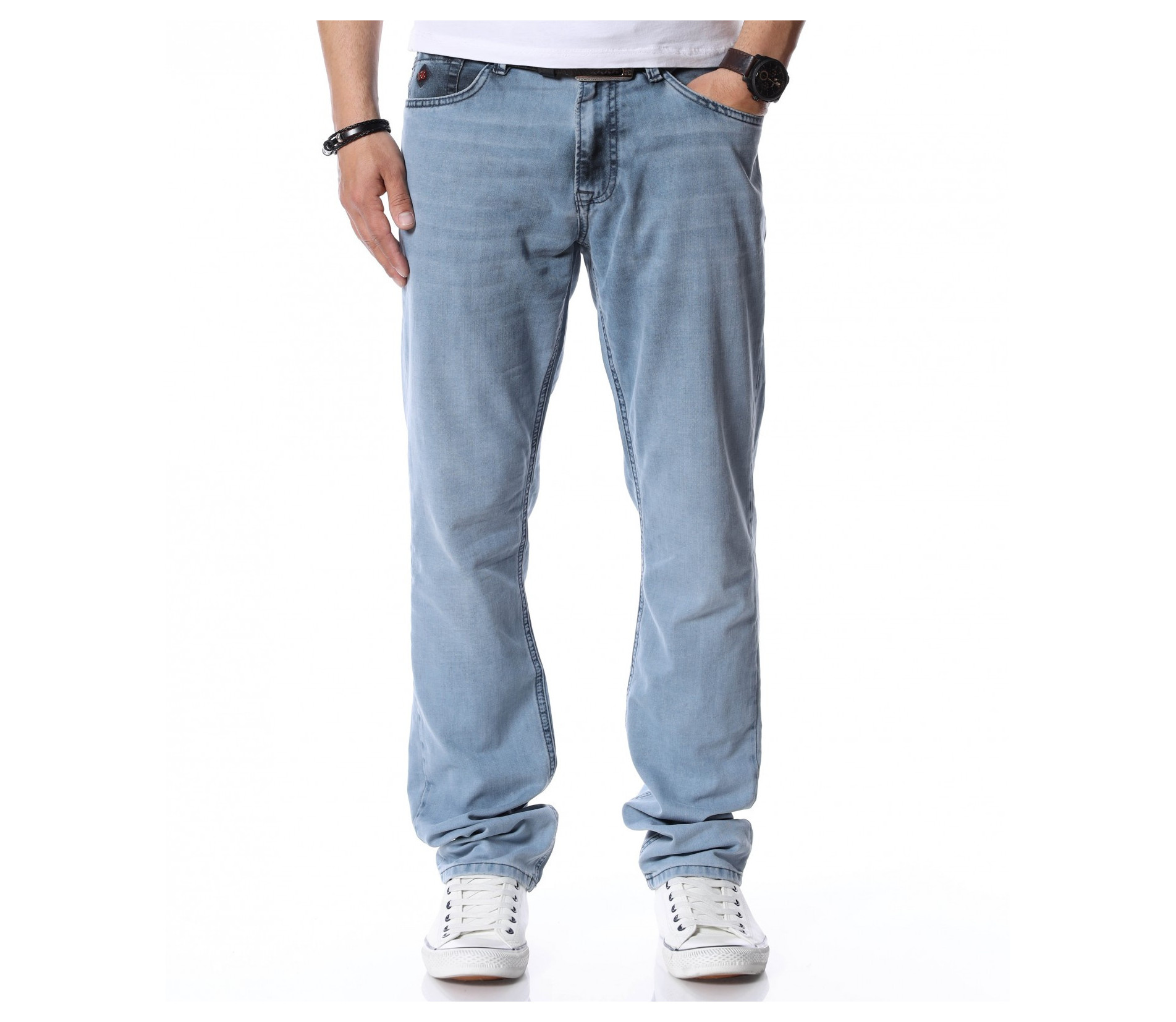 Най-предпочитани за съвременния моден стил са дънките, а сега може да се възползвате от най-новото ни предложение - Мъжки, летни дънки със свободна кройка, от тънка материя, които ще предоставят комфорт на тялото ви и лекота на движение. Моделът е изчистен от декорации, само отпред е поставена миниатюрна емблема. В предната част са разположени два, стандартни джоба и в допълнение, като декорация един малък. На талията е поставен колан, а закопчаването се състои в цип и копче. Изградете непринудена ежедневна визия като комбинирате с тениска, кецове или обувки по ваш избор.