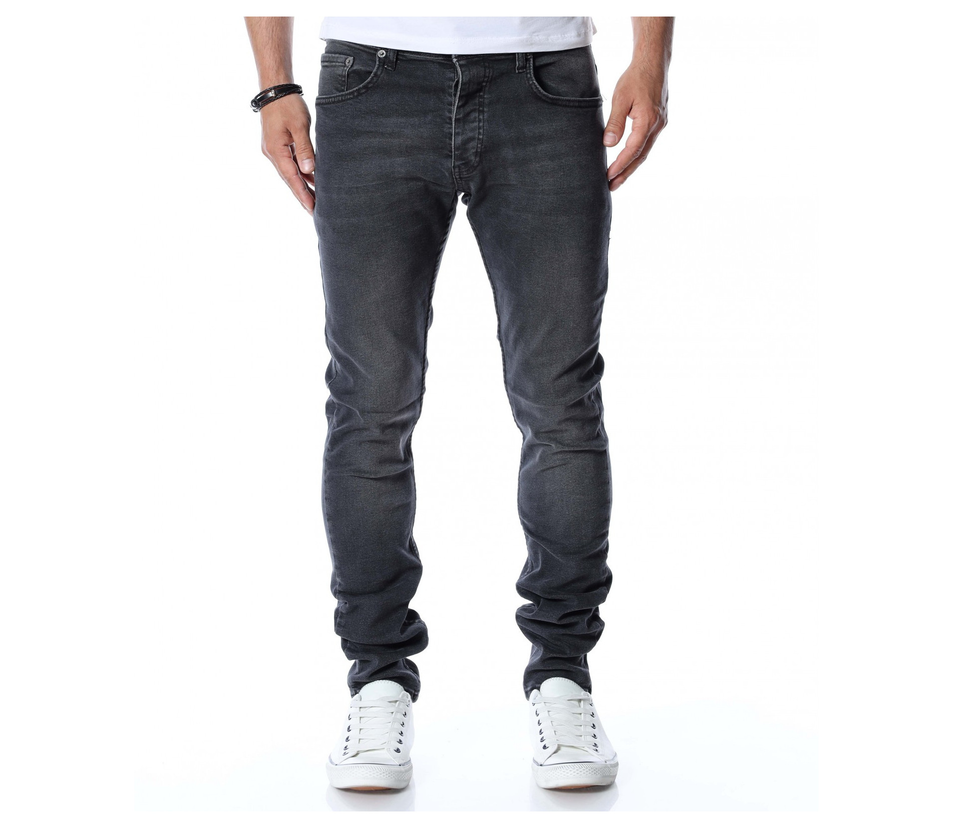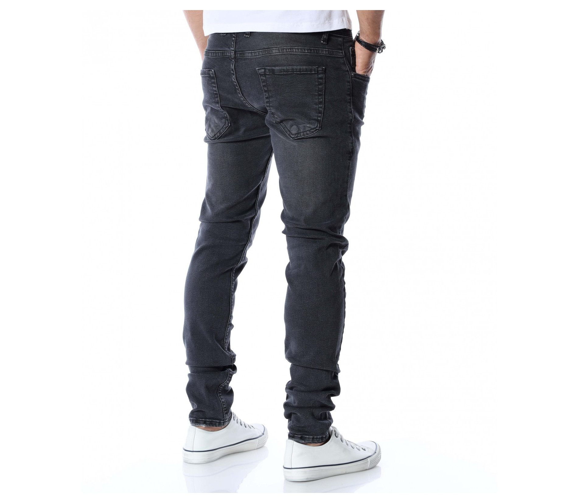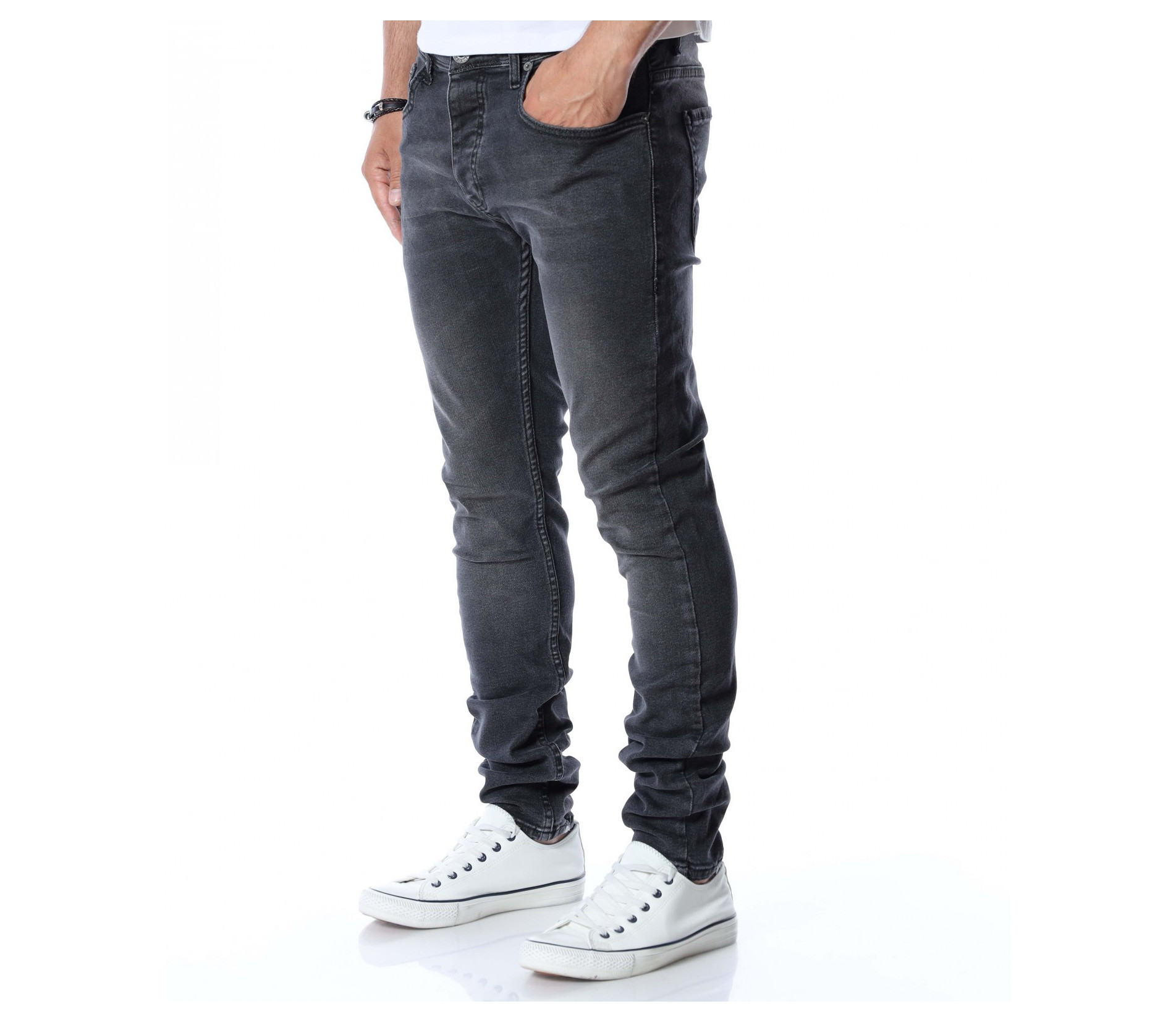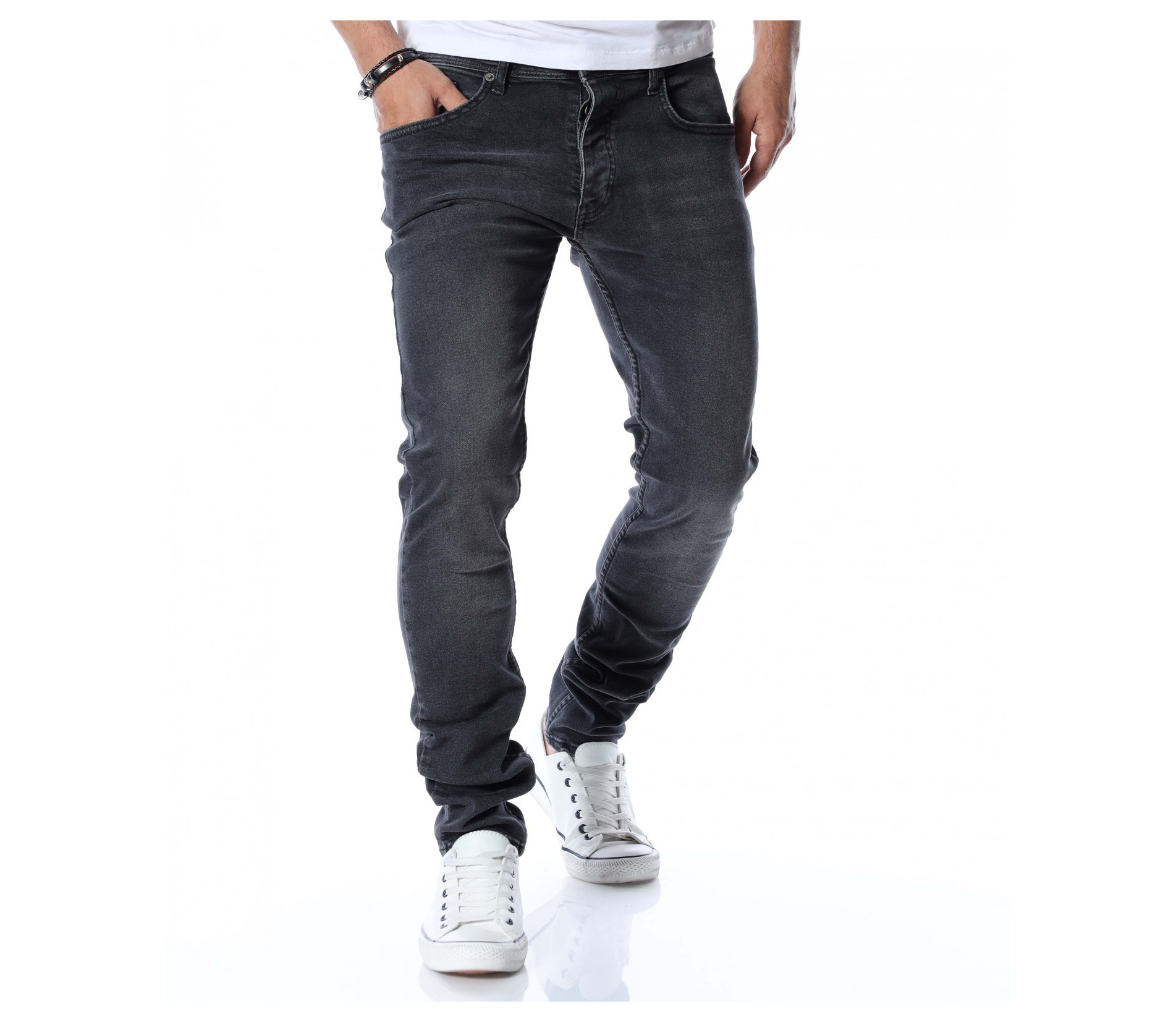 Вдъхновени от последните модни тенденции сме подготвили за вас черни мъжки дънки Red Point. Независимо от сезонът, вече няколко деситилетия дънките не спират да бъдат актуални всяка година и за всеки повод. Те са доказали безспорно своята практичност и предимства през годините. Основата на моделът е едноццветна, а по цялата дължина забелязваме леко избелели, фабрично ефекти. Закопчаването се състои в копче, а изработката е от 98%памук и 2%еластант. Кройката приляга перфектно към линиите на тялото. Съчетайте с тениска, блуза, кецове или ежедневни обувки.