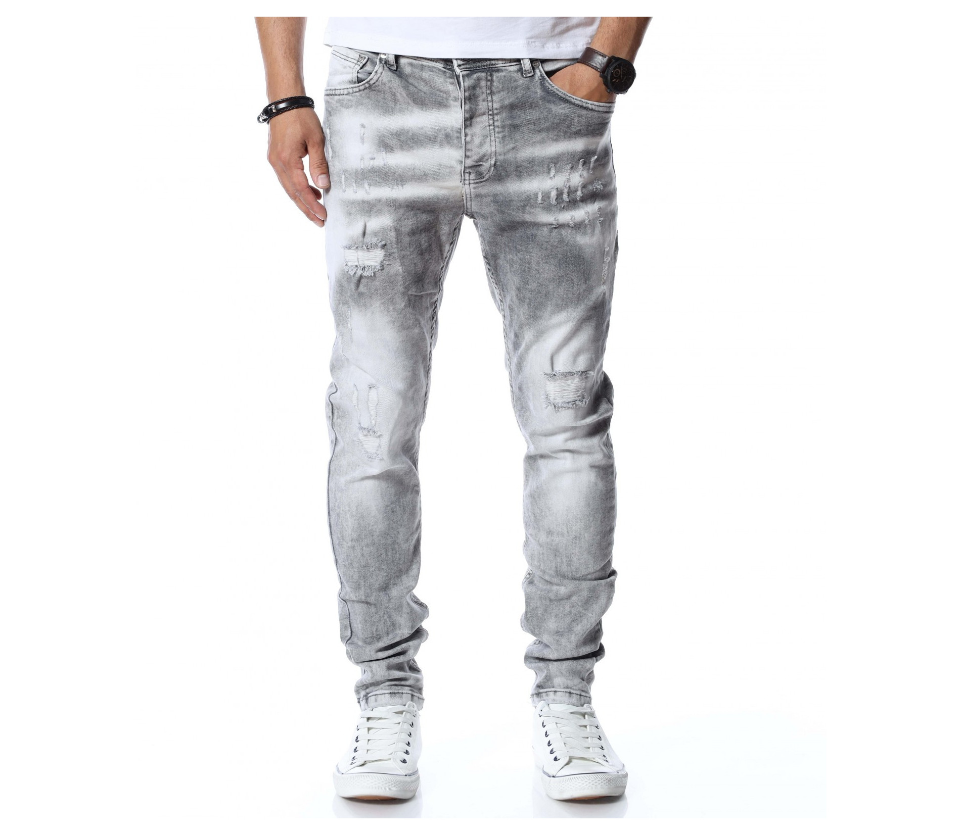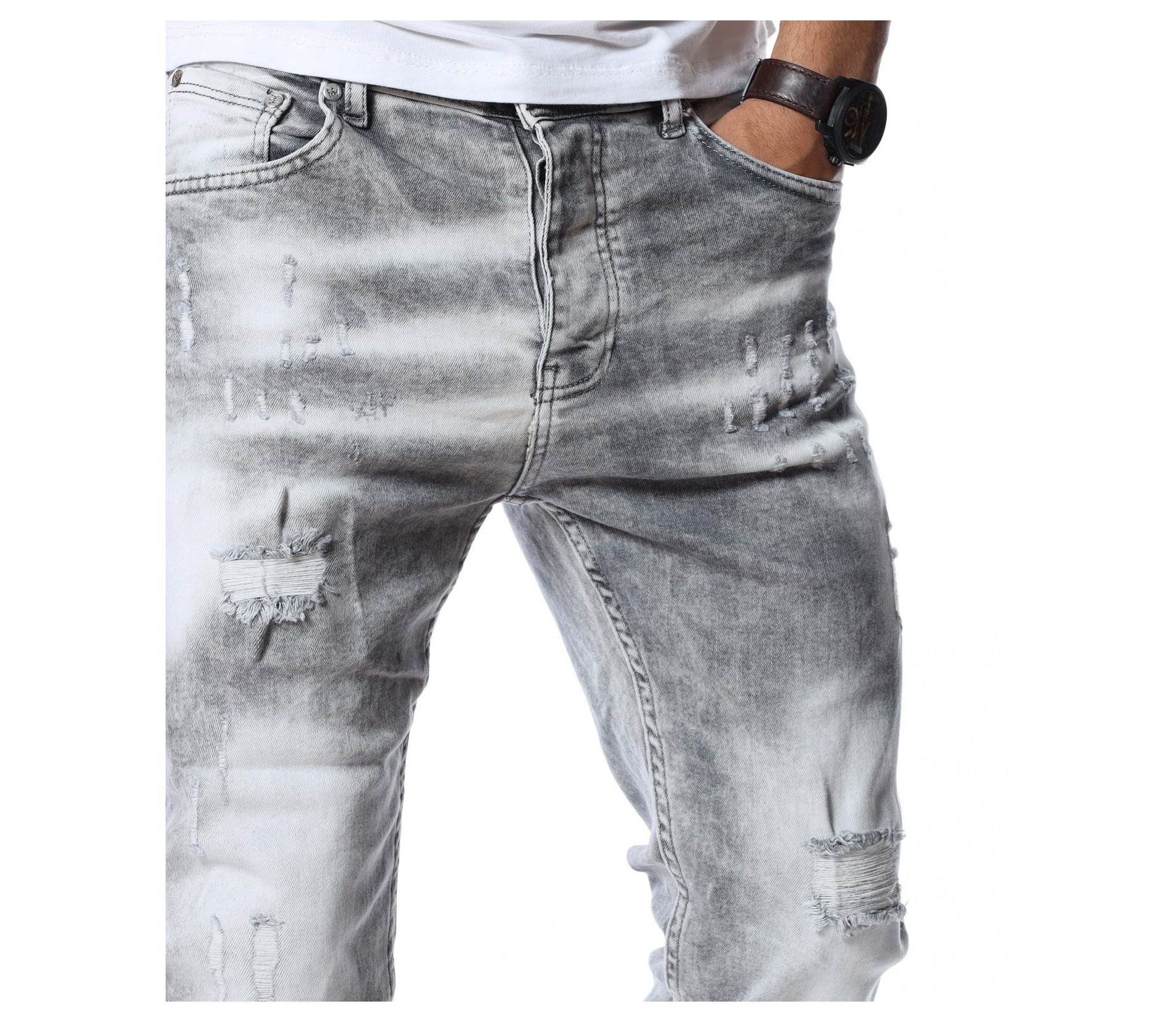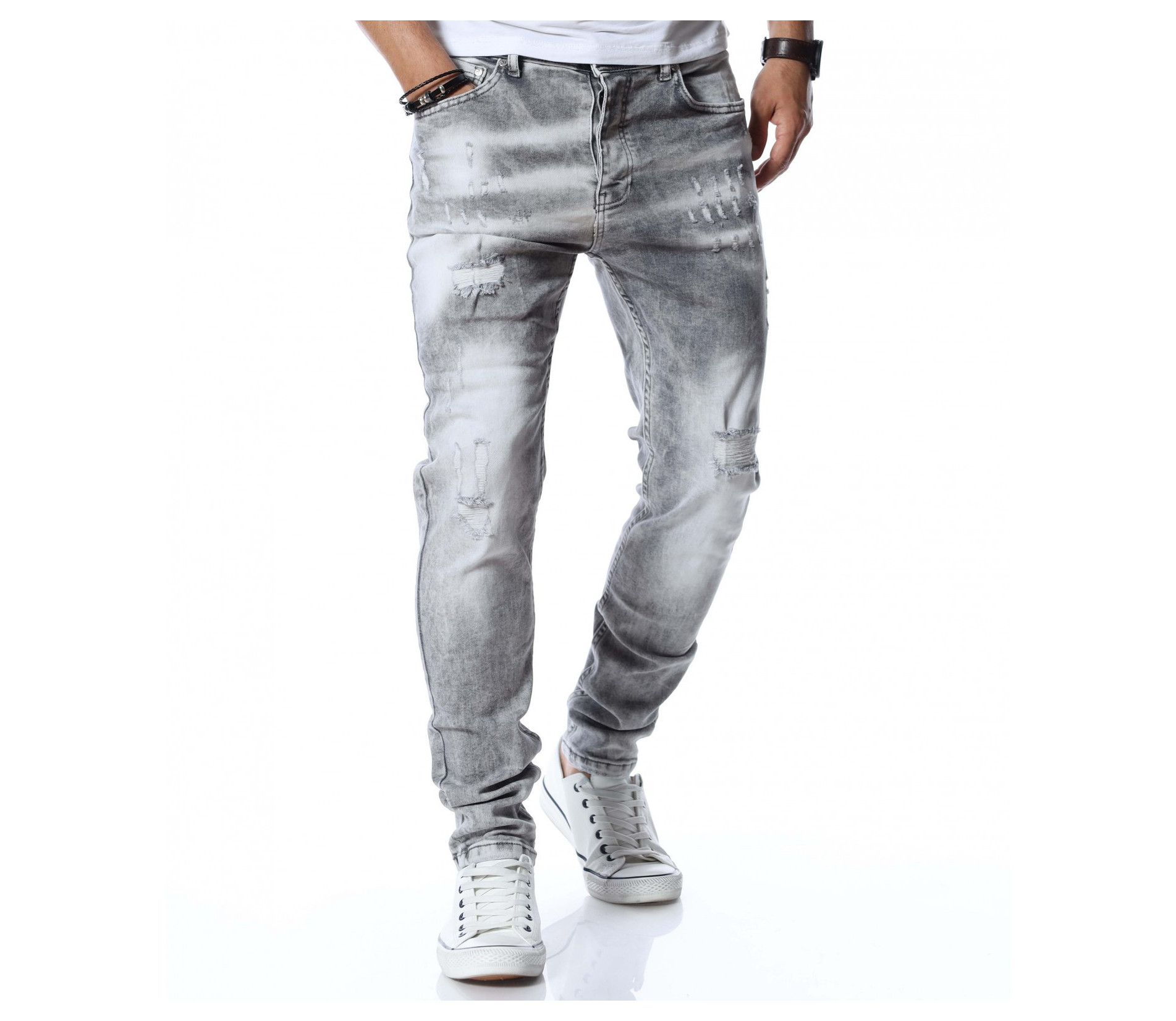 Светлосиви дълги дънки.