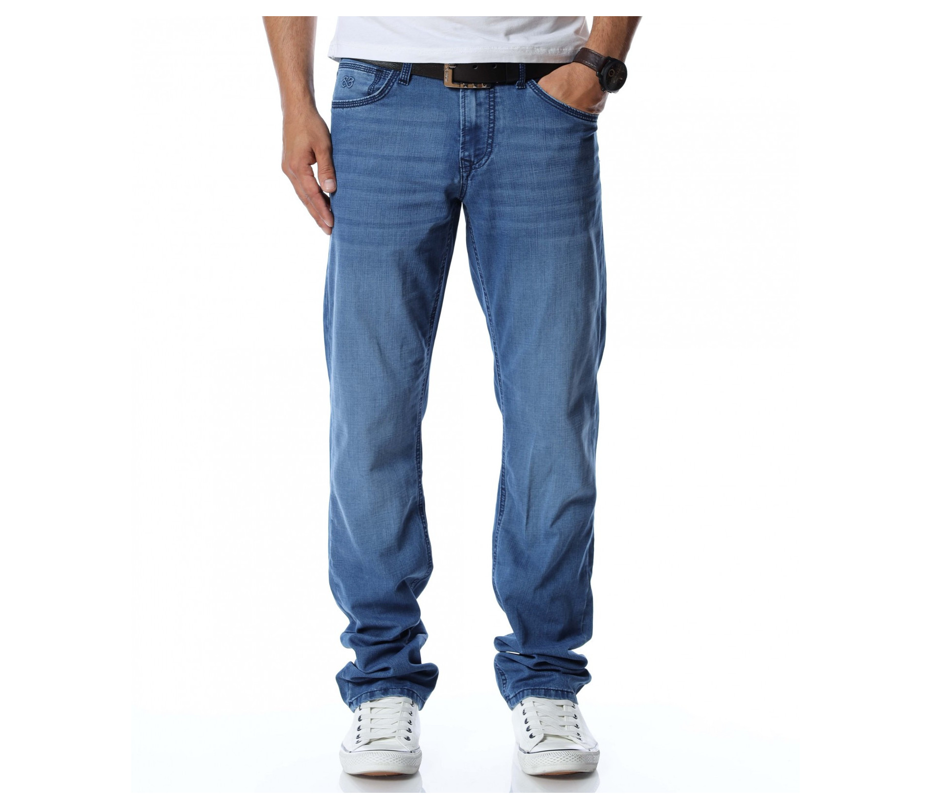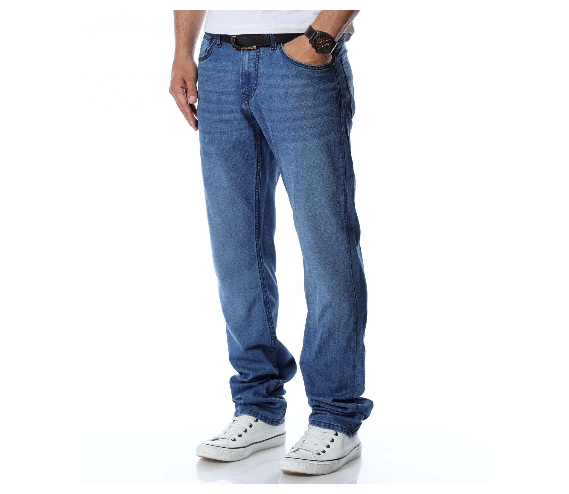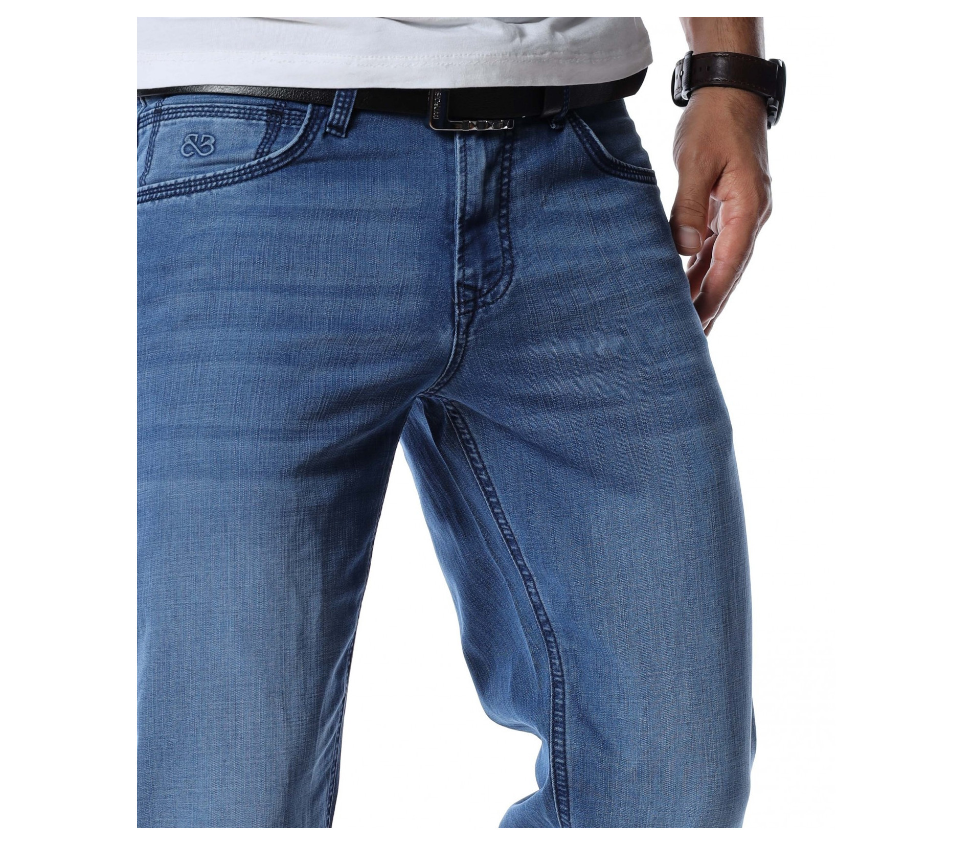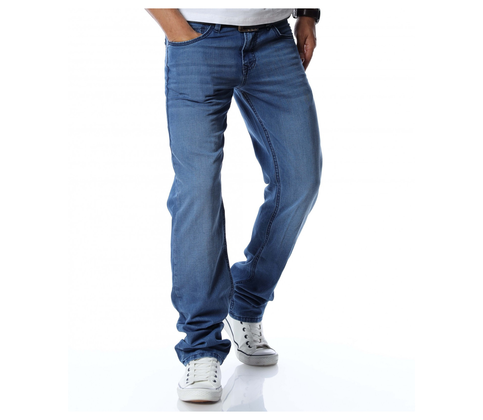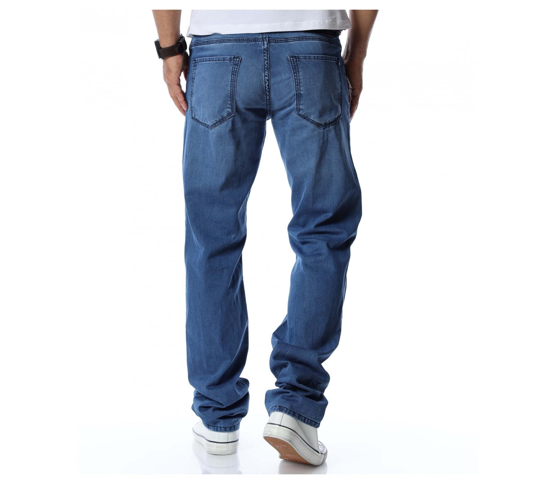 Дълги мъжки дънки от тънка материя.