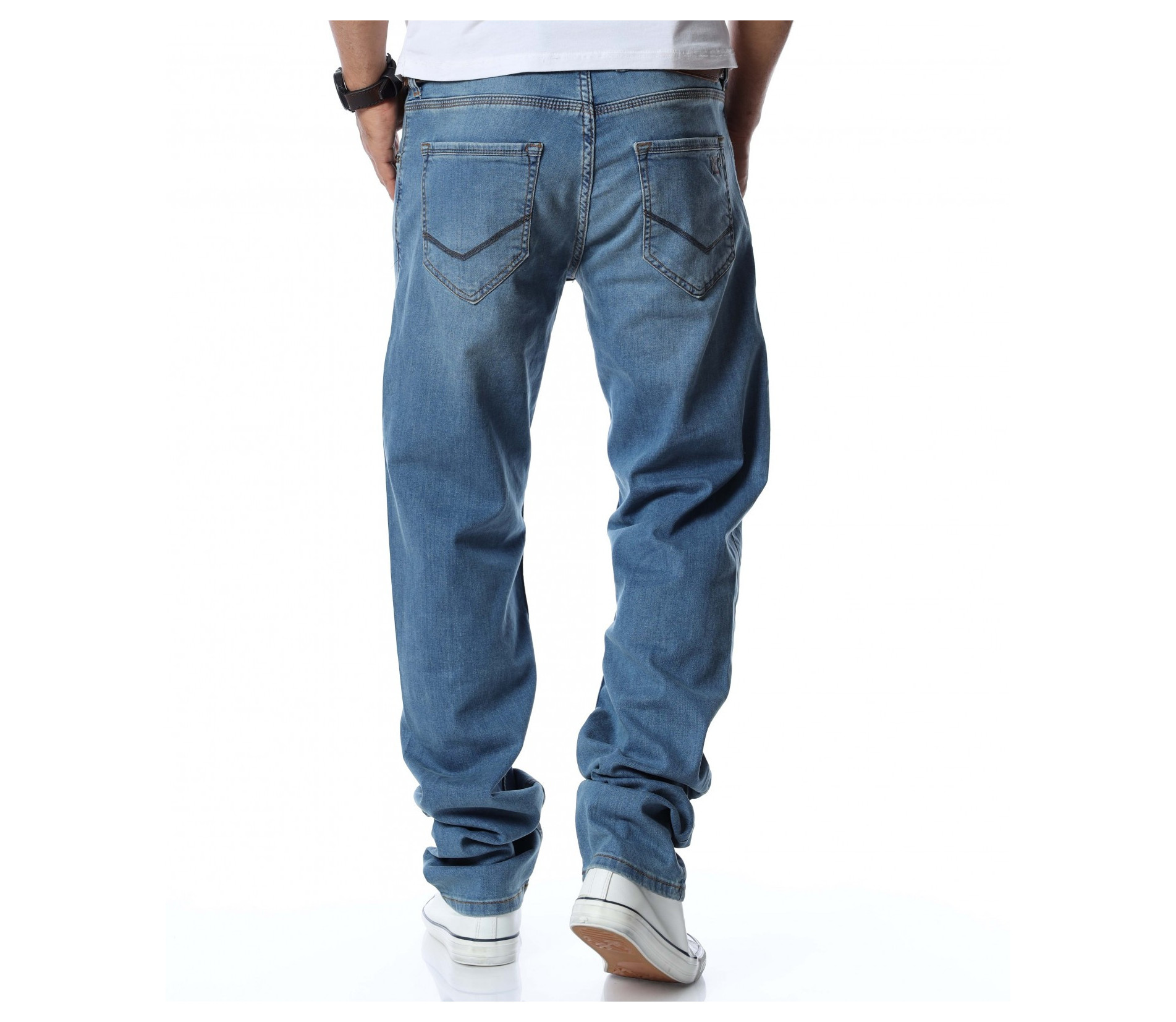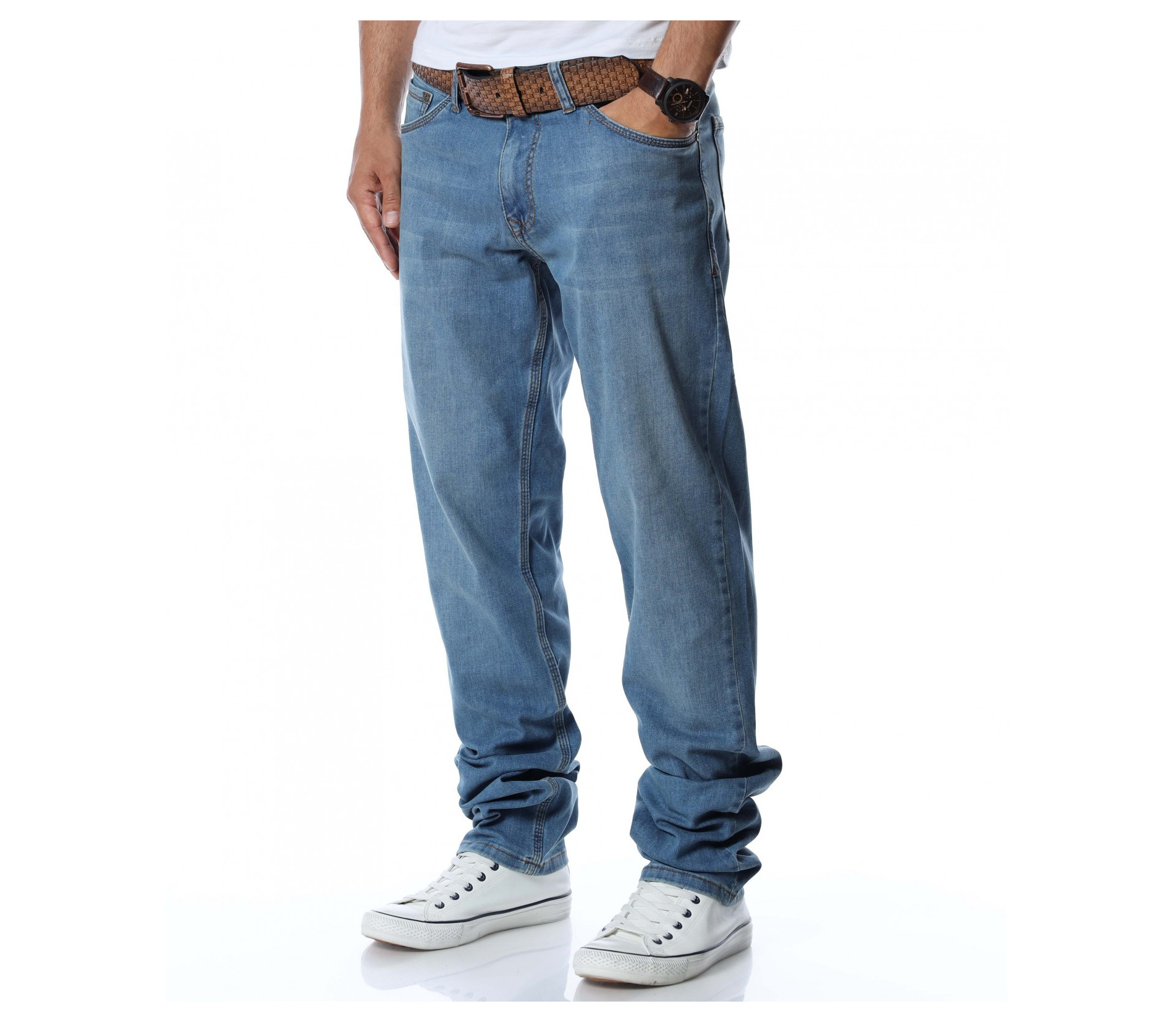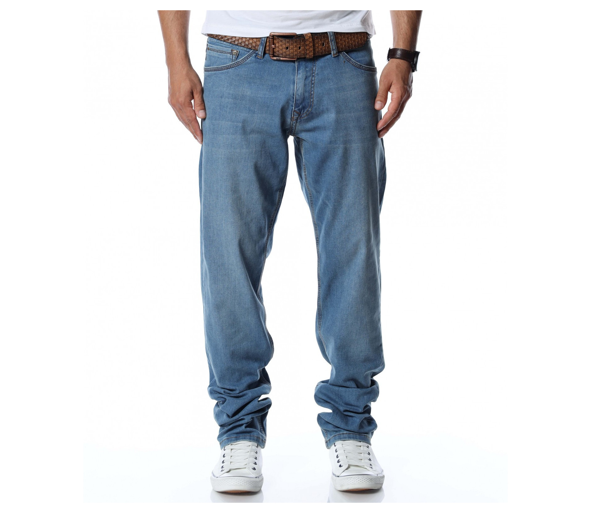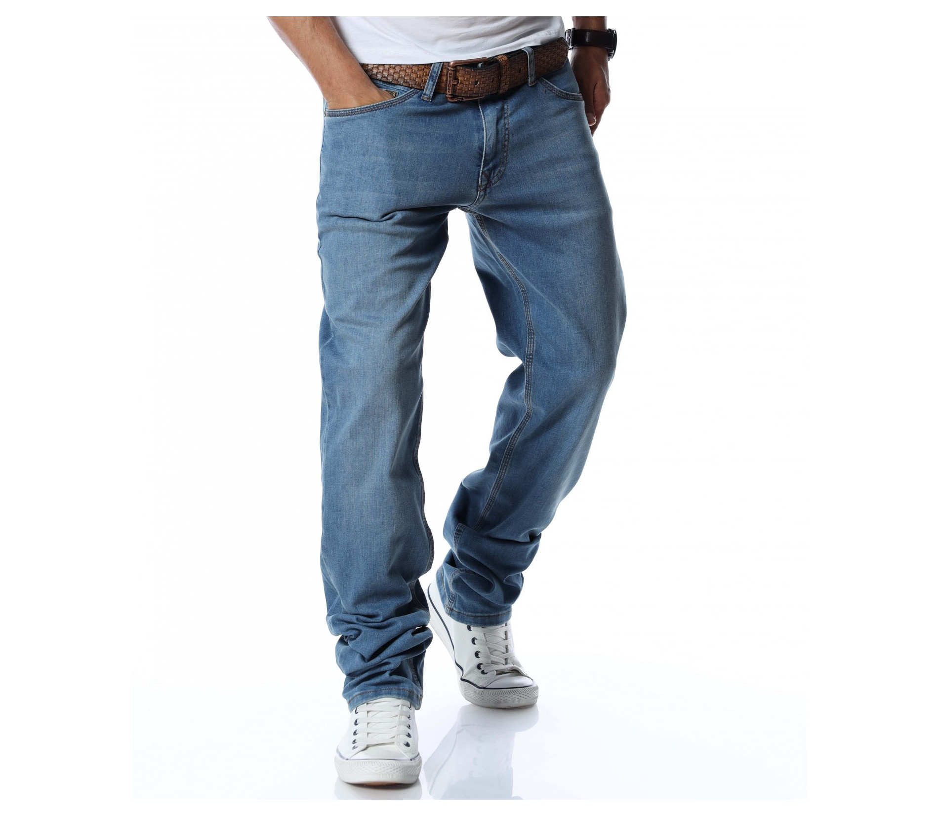Дънки с колан 12766 - Син