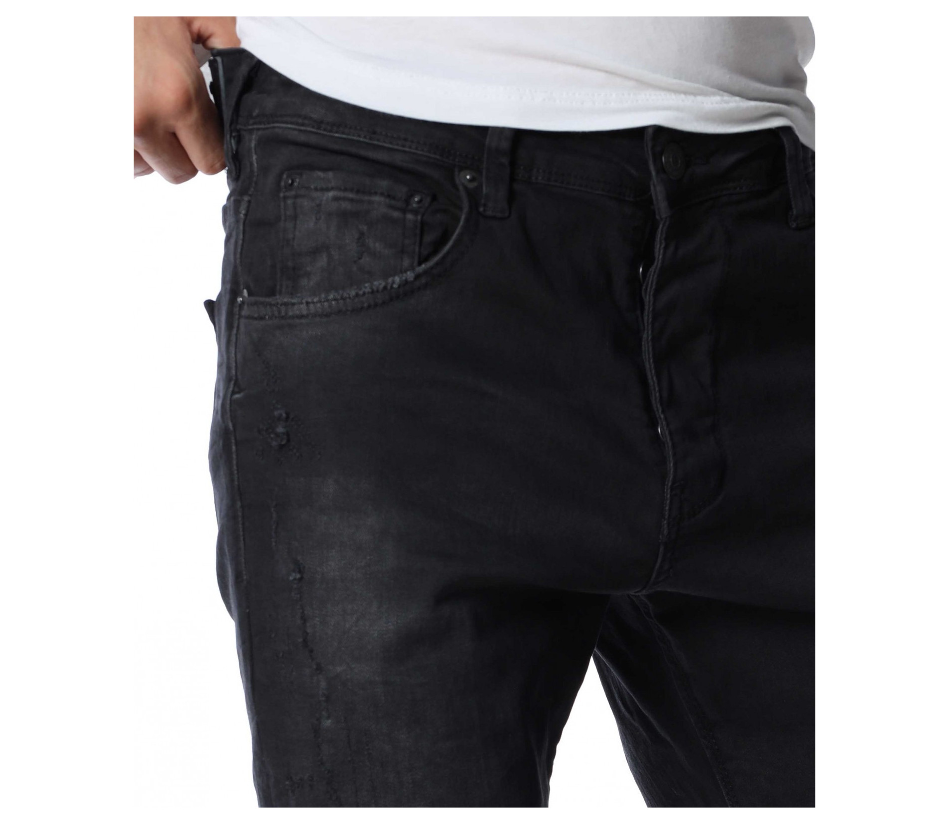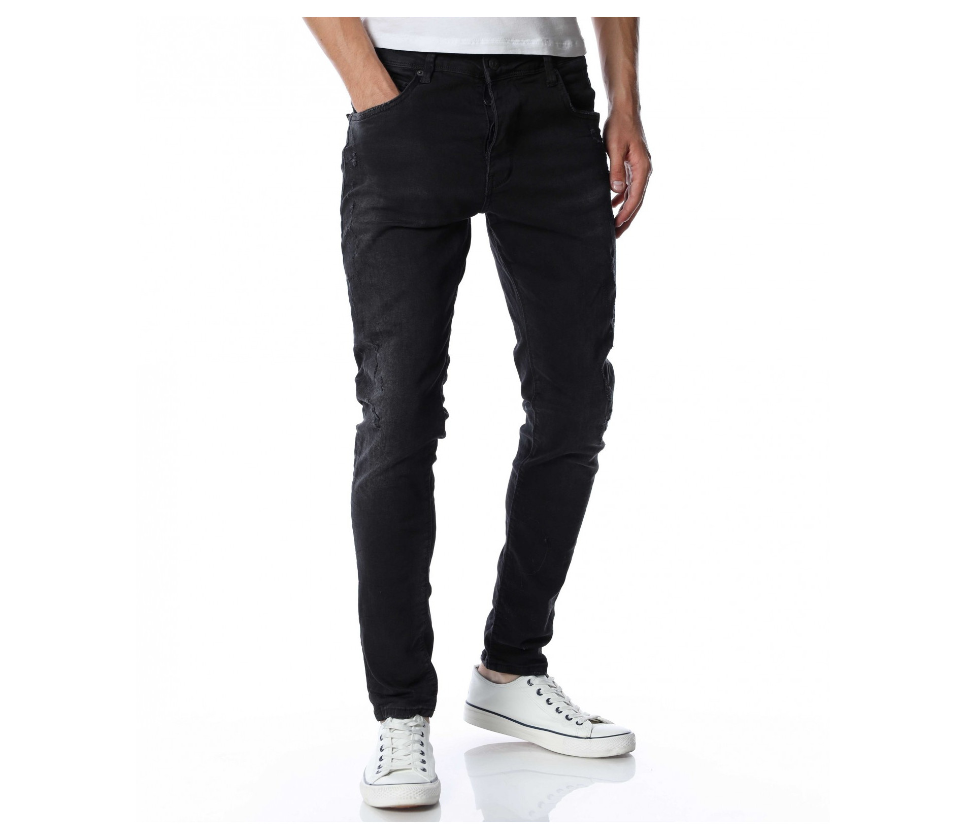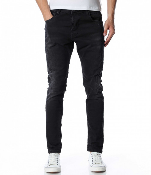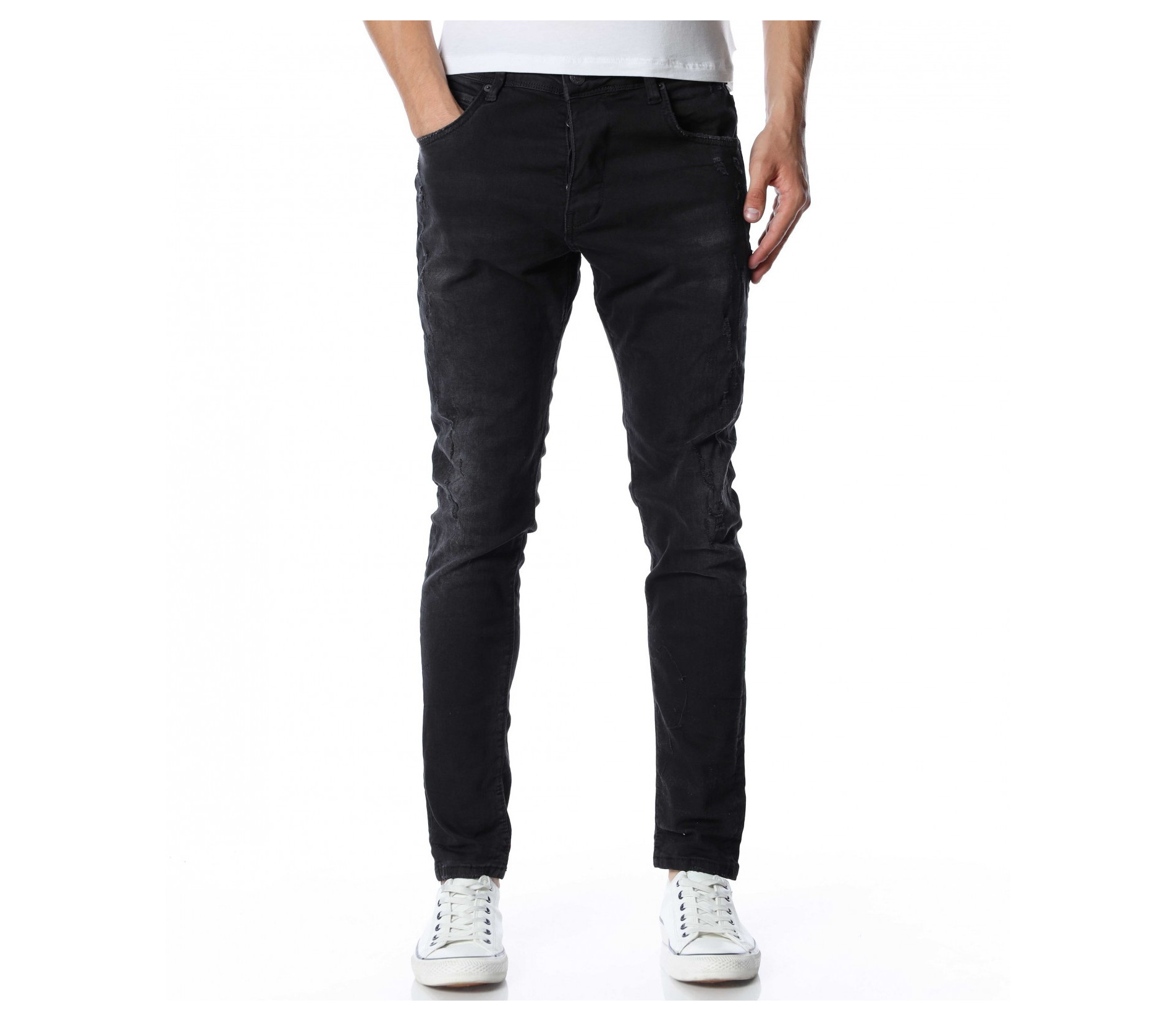 Черни, класически мъжки дънки. Моделът е изчистен от декорации и е подходящ за всякакъв повод. Кройката е вталена с достатъчна свобода на движение. В задната и в предната част са разположени стандартни джобове,. На колана са поставени гайки, за да добавите колан при нужда. Може да комбинирате с кецове, маратонки, тениска, блуза, яке и любим аксесоар.