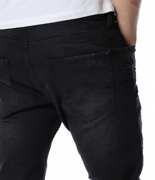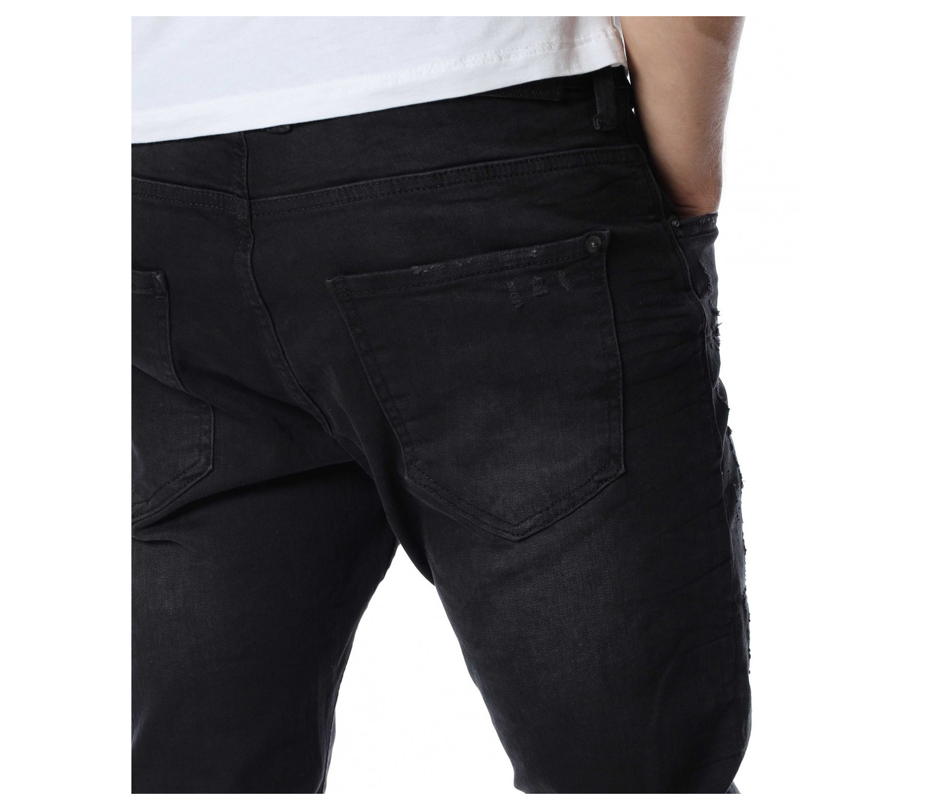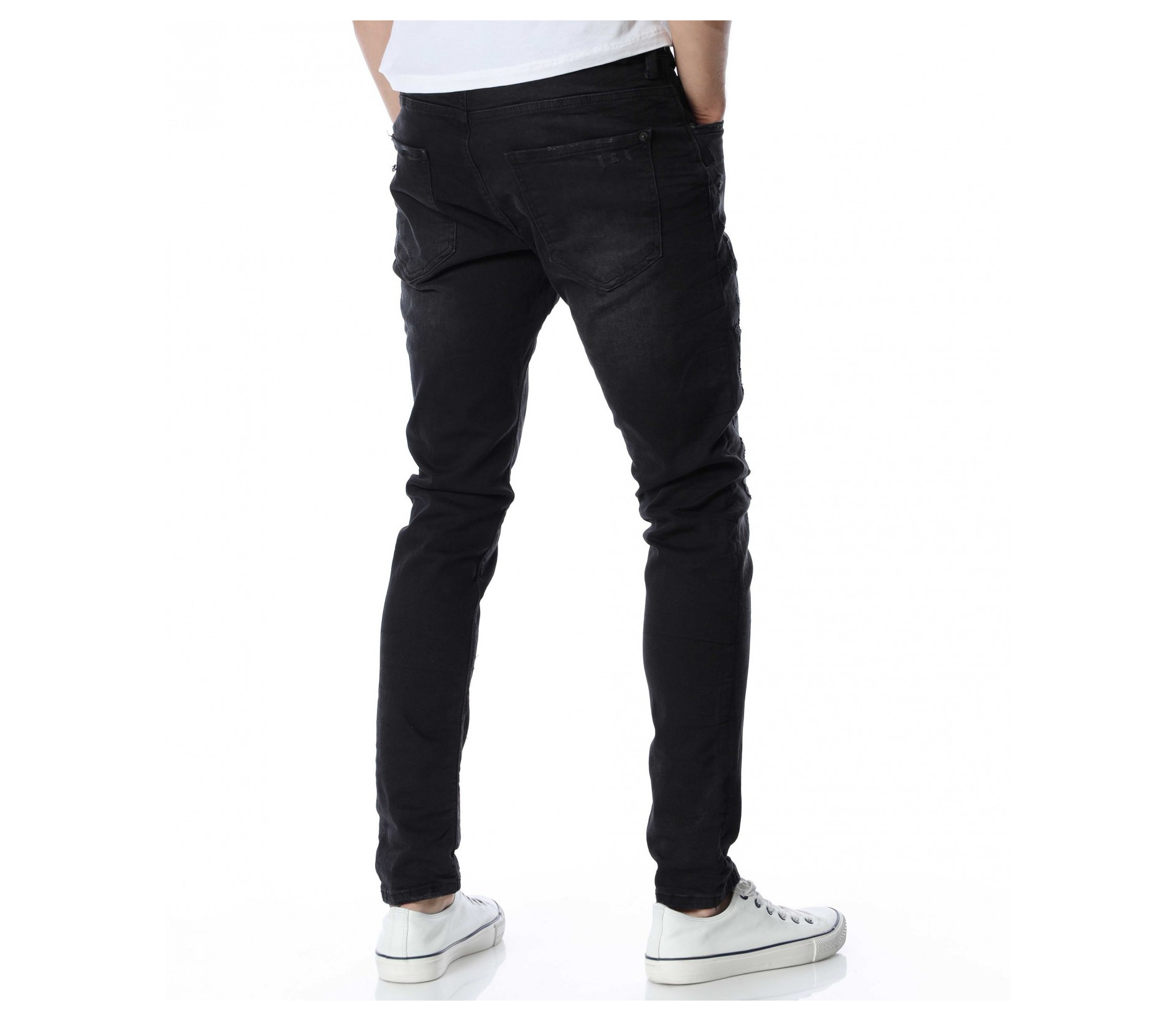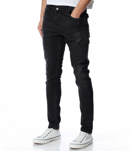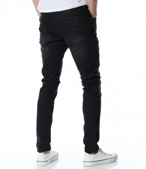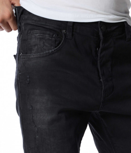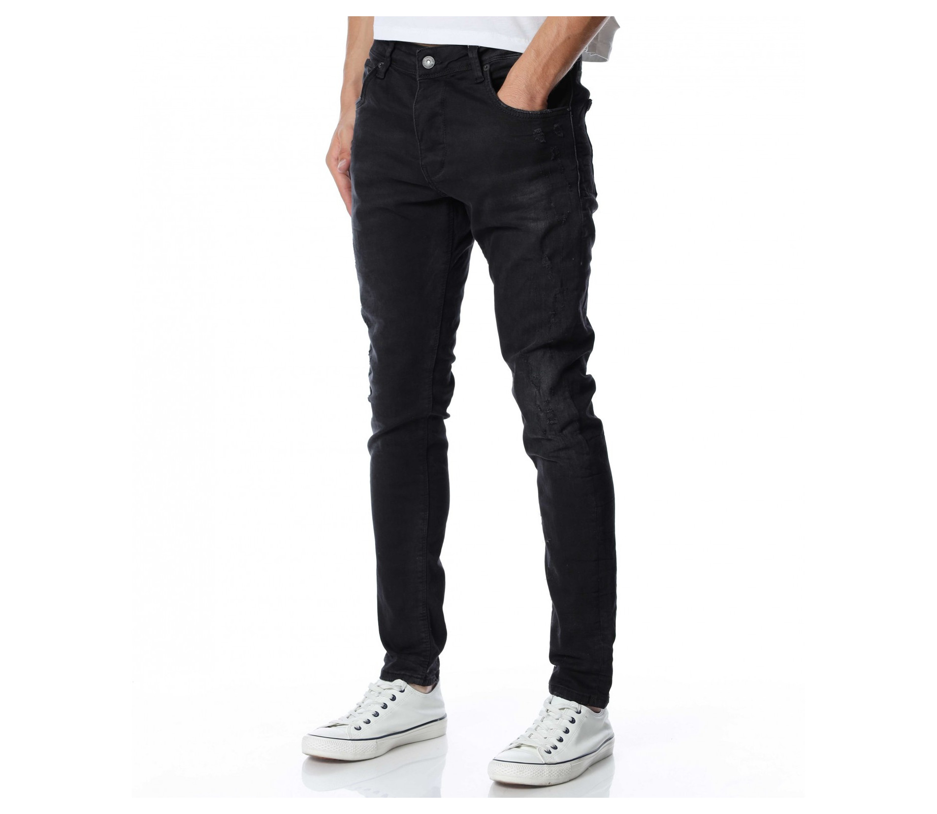 Черни, класически мъжки дънки. Моделът е изчистен от декорации и е подходящ за всякакъв повод. Кройката е вталена с достатъчна свобода на движение. В задната и в предната част са разположени стандартни джобове,. На колана са поставени гайки, за да добавите колан при нужда. Може да комбинирате с кецове, маратонки, тениска, блуза, яке и любим аксесоар.