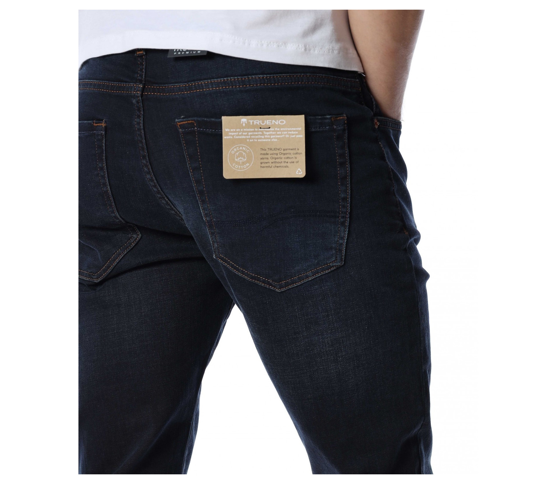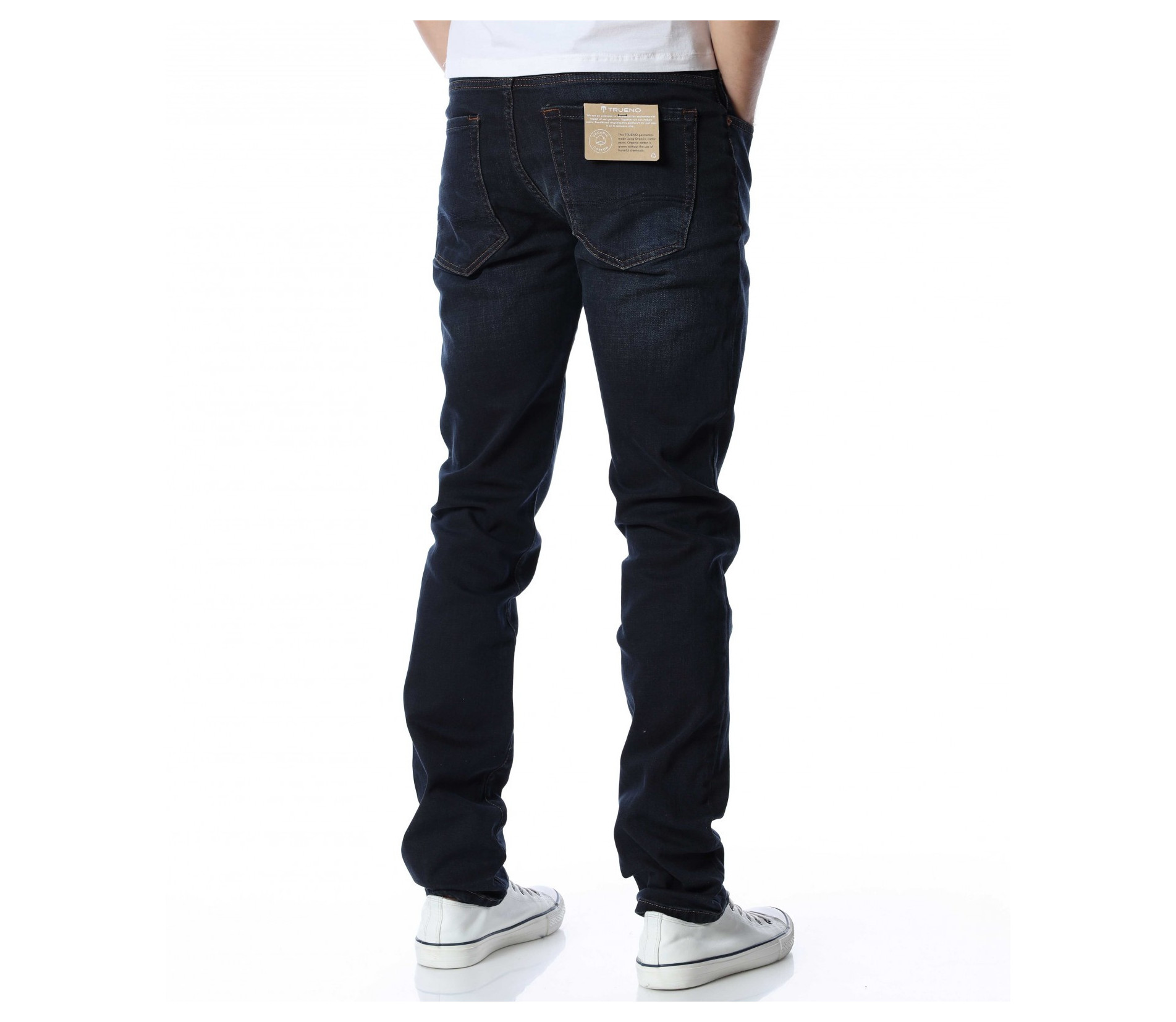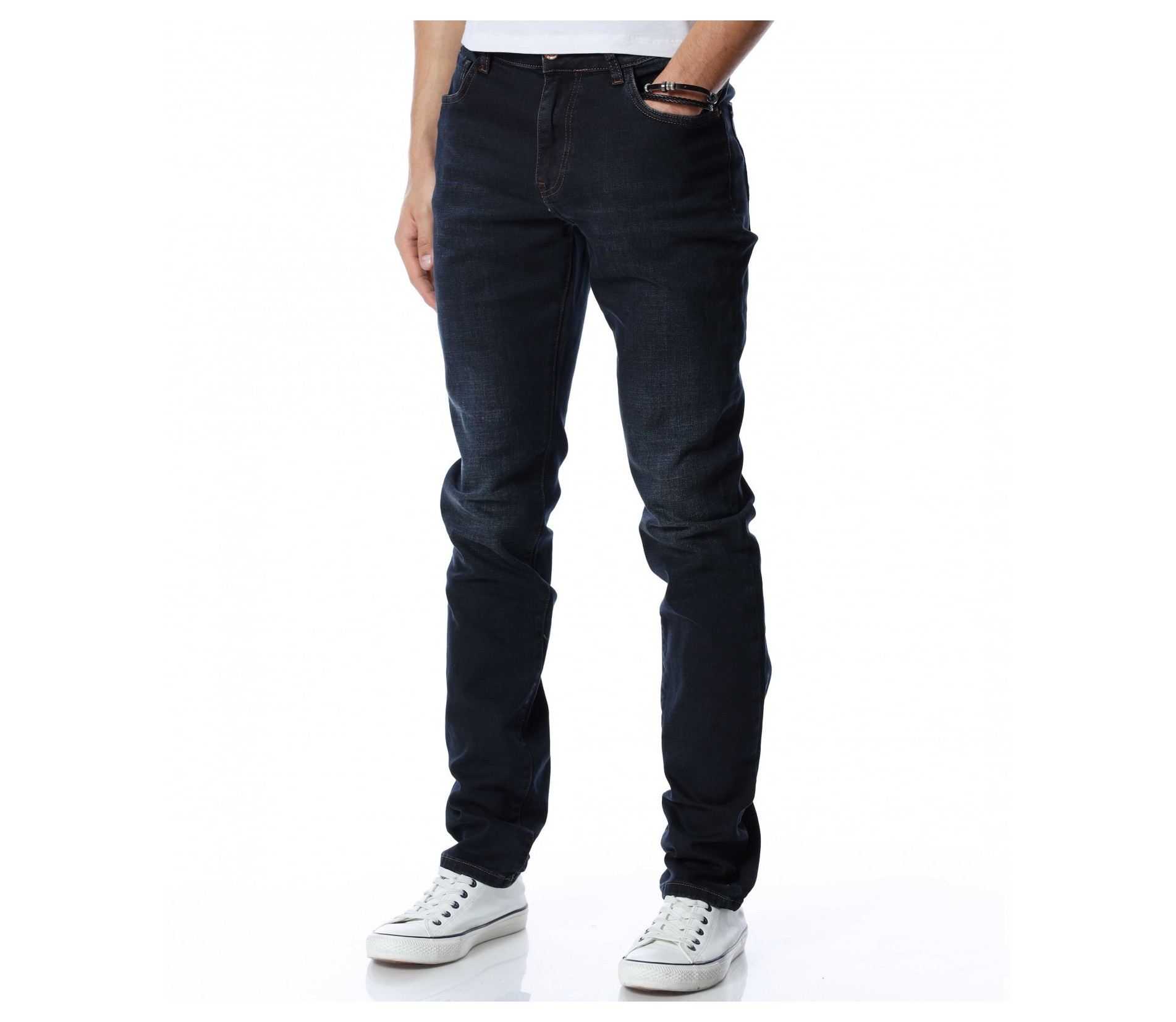 Мъжки, дълъг, черен дънков панталон с кройка във вариант classic fit, който следва линиите на тялото и същевременно осигурява достатъчна свобода на движение. Моделът е в напълно изчистен вариант, без декорации и допълнителни елементи. Забелязваме стандартните, отворени джобове, както в предната, така и в задната част. Закопчаването се състои в цип и копче, а на талията са разположени гайки, към които може да добавите колан. Комбинирайте с блуза и кецове.
