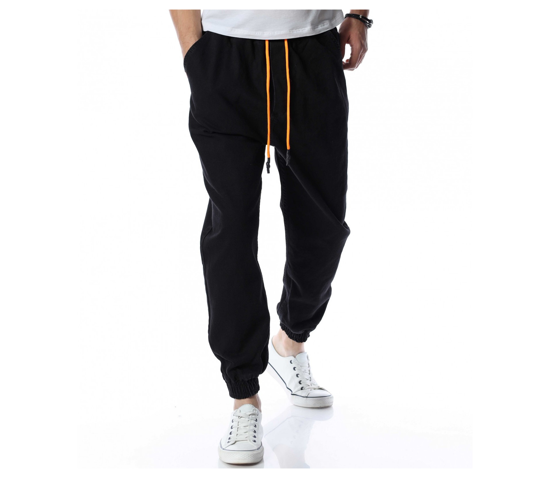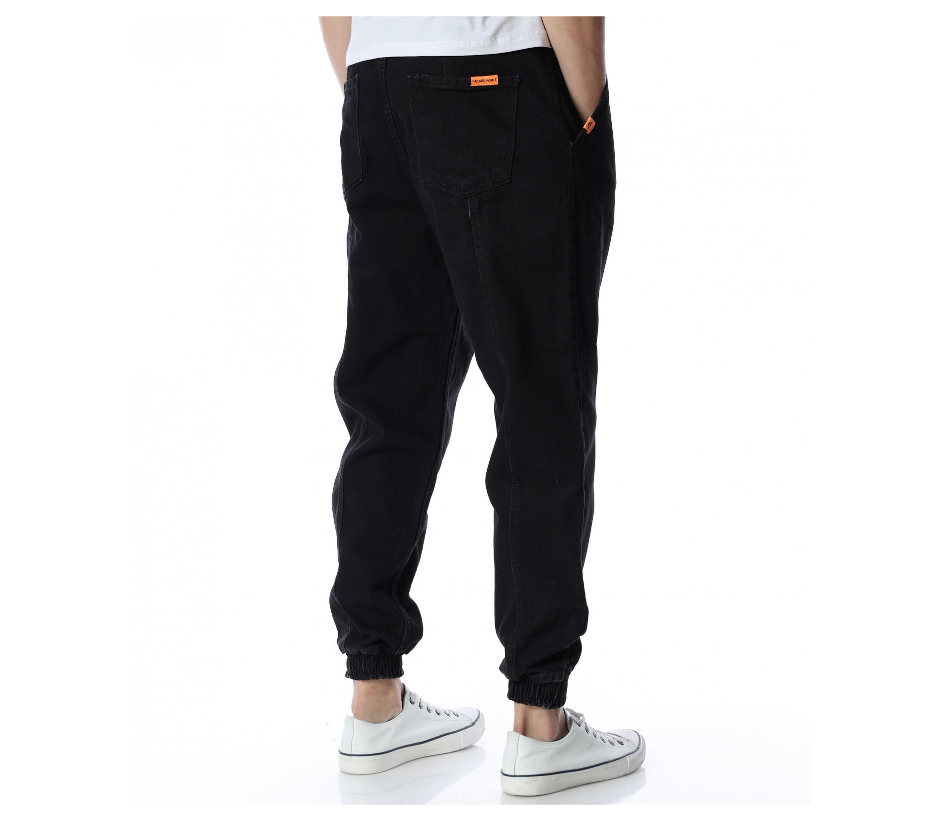 Мъжки, дълъг, дънков панталон с паднало дъно - RED POINT. Моделът е в един цвят и основата е изчистена от декоразии и допълнителни елементи. Дънките са в стрийтстайл вариант и с кройка, която е просторна. На талията са добавени цветни връзки за акцент и регулиране на ширината, както и ластик. Джобовете са предпочитани - дълбоки отпред и отзад. Комбинирайте с високи кецове и блуза.