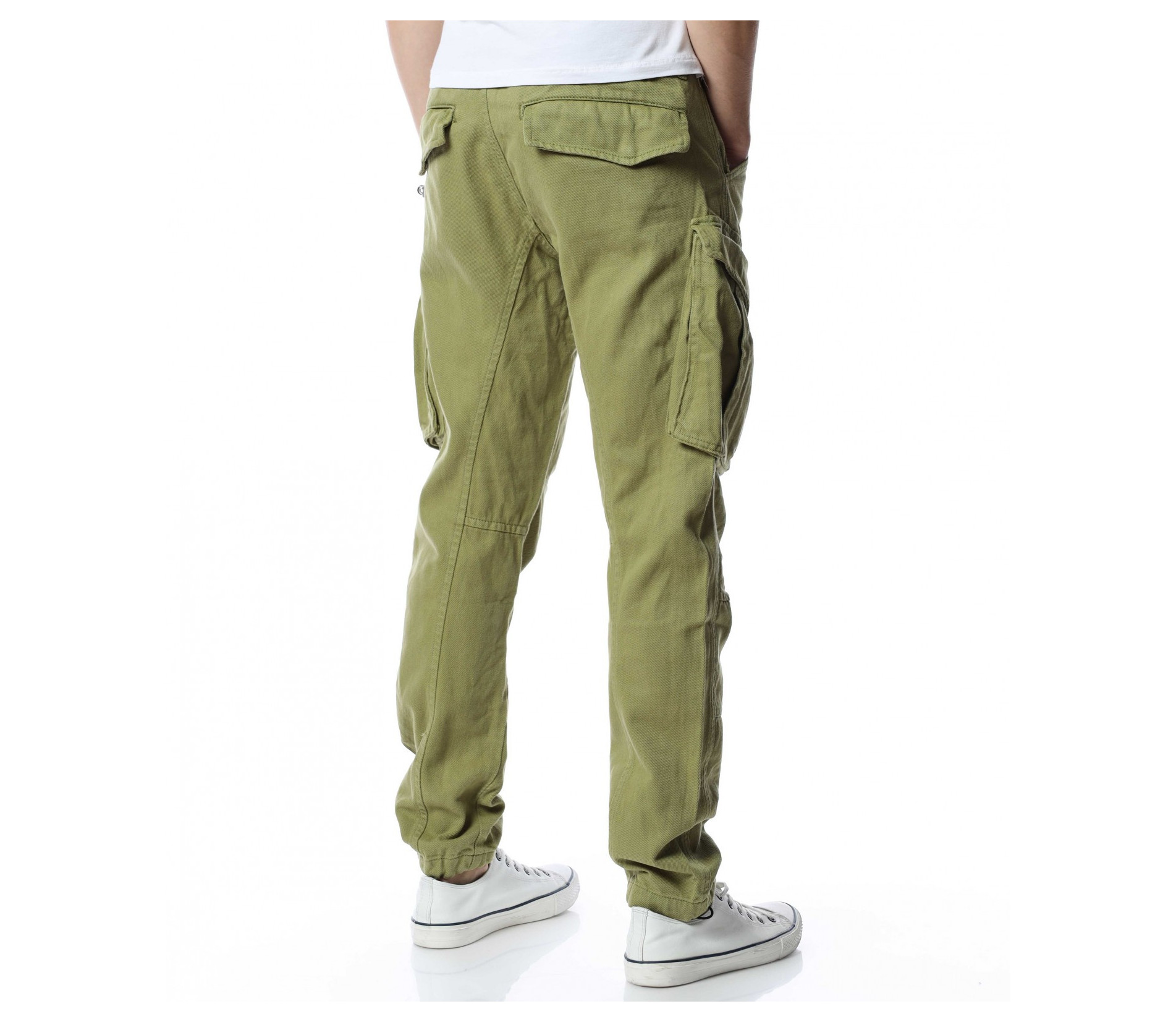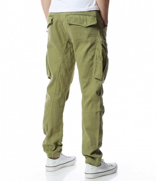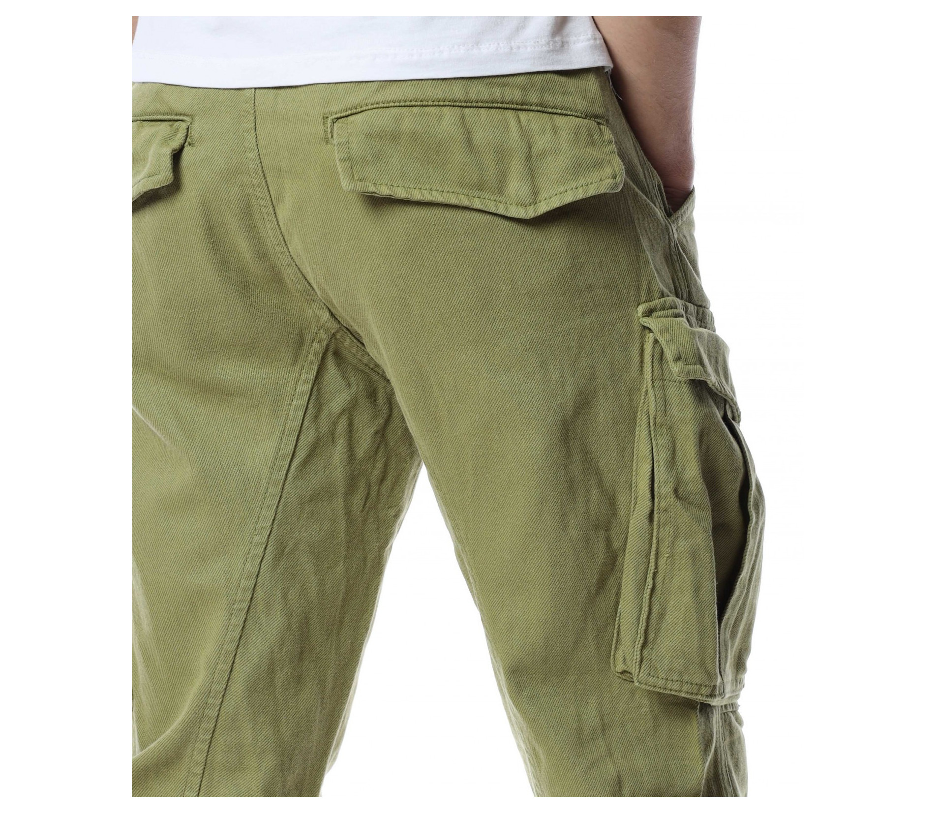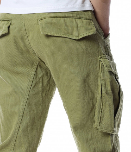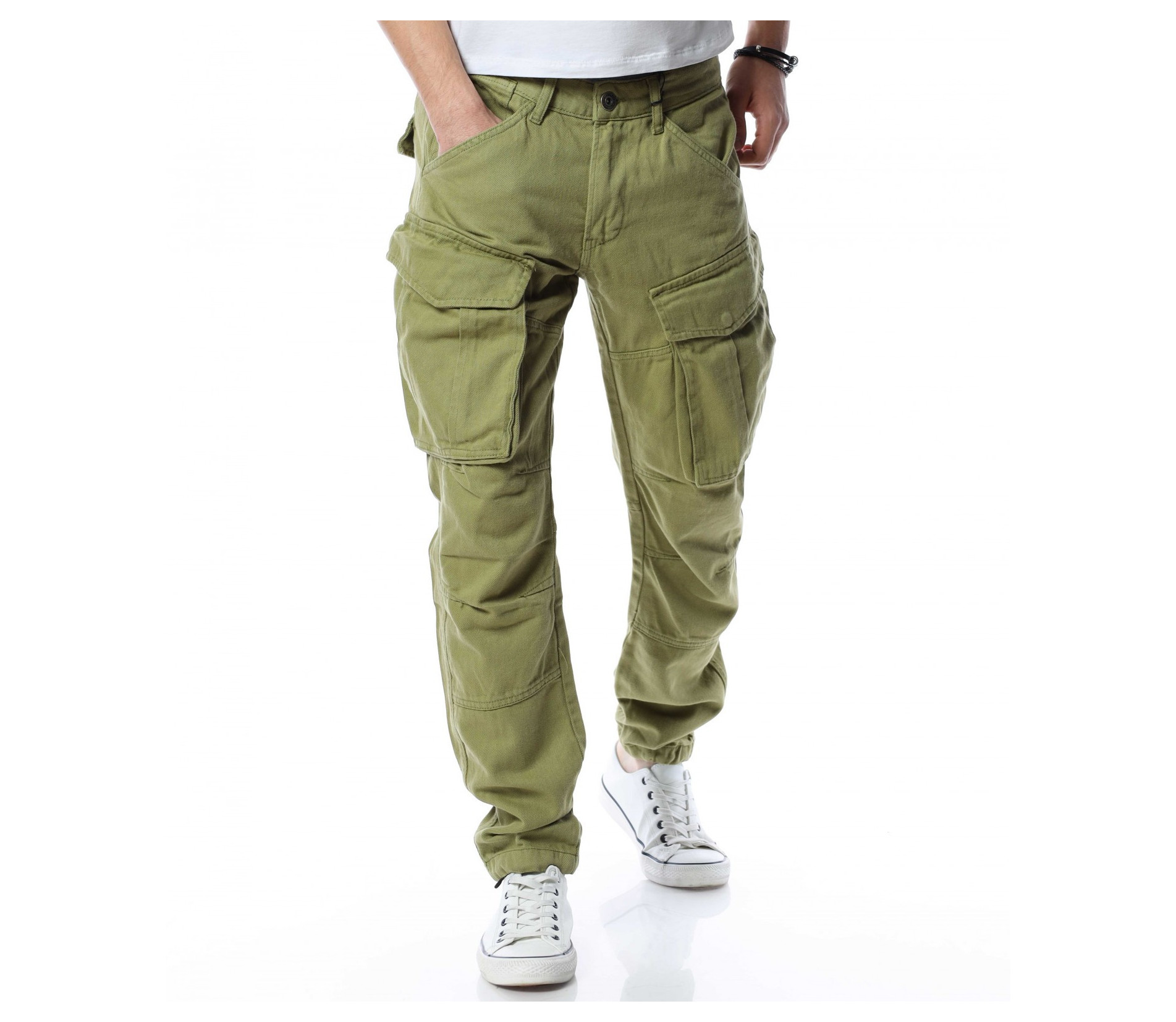 Мъжки джинси от дънкова материя, подходящи за есенно-зимният сезон. В предната част, над коленете се открояват дълбоки, големи джобове с капаче, а в допълнение забелязваме и италиански джоб. Закопчаването се състои в цип и копче. На талията са поставени гайки за колан, а кройката е достатъчно просторна, без да изглежда широка.