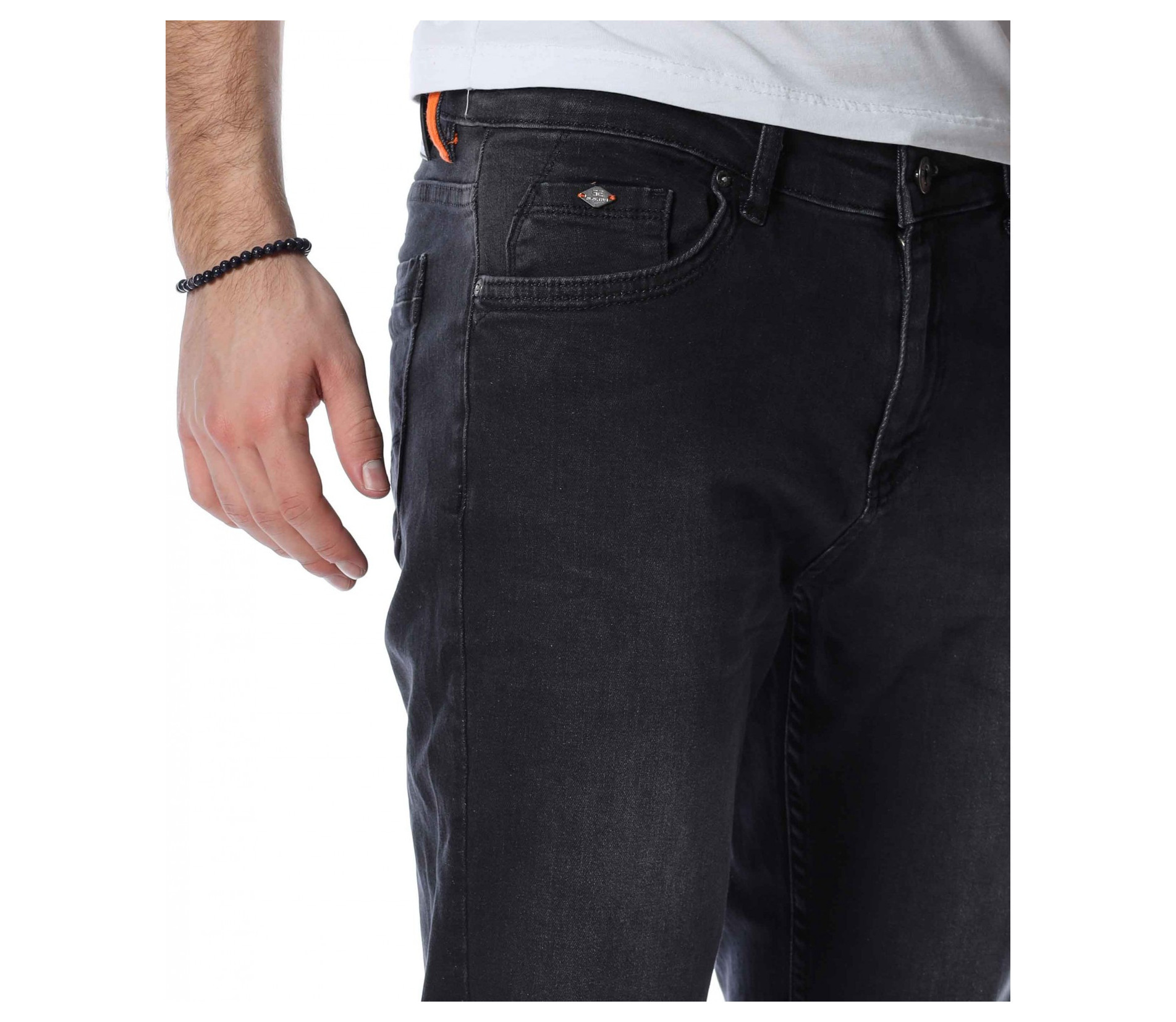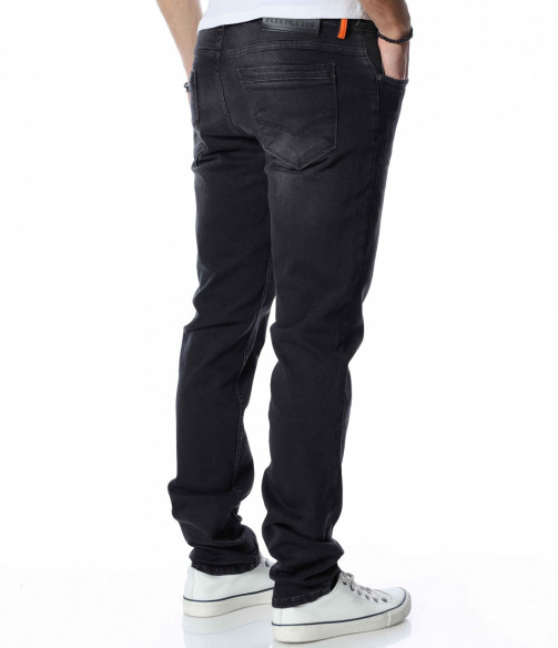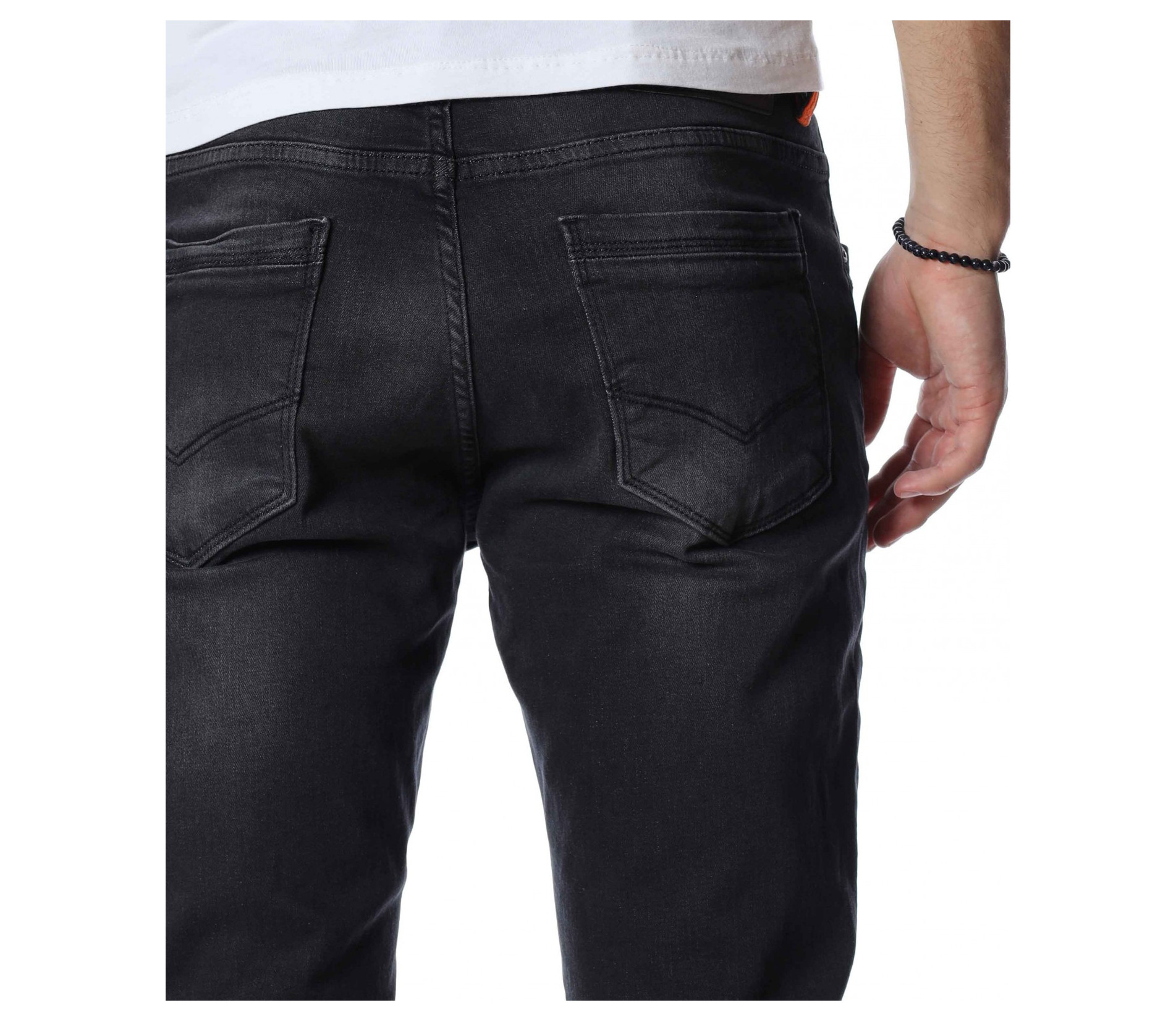 ОПИСАНИЕ НА ПРОДУКТА: Модните гиганти обръщат все по-голямо внимание освен на ежедневните и клубни визии, то и на офисния стайлинг. Повлияни от тях решихме да Ви представим един модел мъжки черни дънки, които перфектни биха заместили скучните и неудобни панталони, които поддържат елегантния Ви стил на работното място. Дизайна им е напълно предаден на еднотонна и тъмна основа, която създава усещане за стил, класа и разбира се модерно излъчване. С леката си еластичност, този модел черни дънки допринася за удобството на тялото Ви, като не прави компромис с останалите важни елементи. Закопчаването и джобовете тук са класически, запазващи evergreen-a при тези модели. В задната час е поставена оранжева гайка за колан, която разчупва визията на модела. Бъдете креативни и създавайте всеки ден различен, цветен и актуален аутфит, само с един замах .