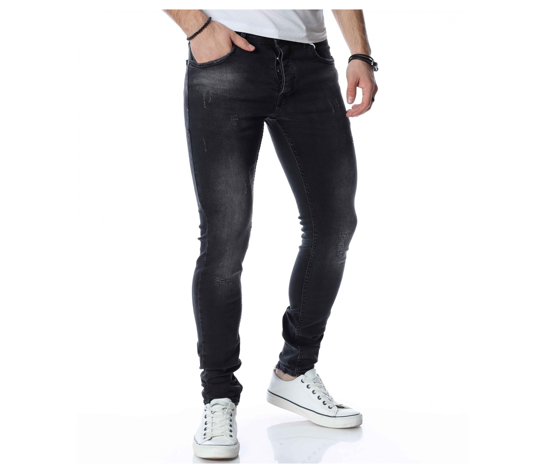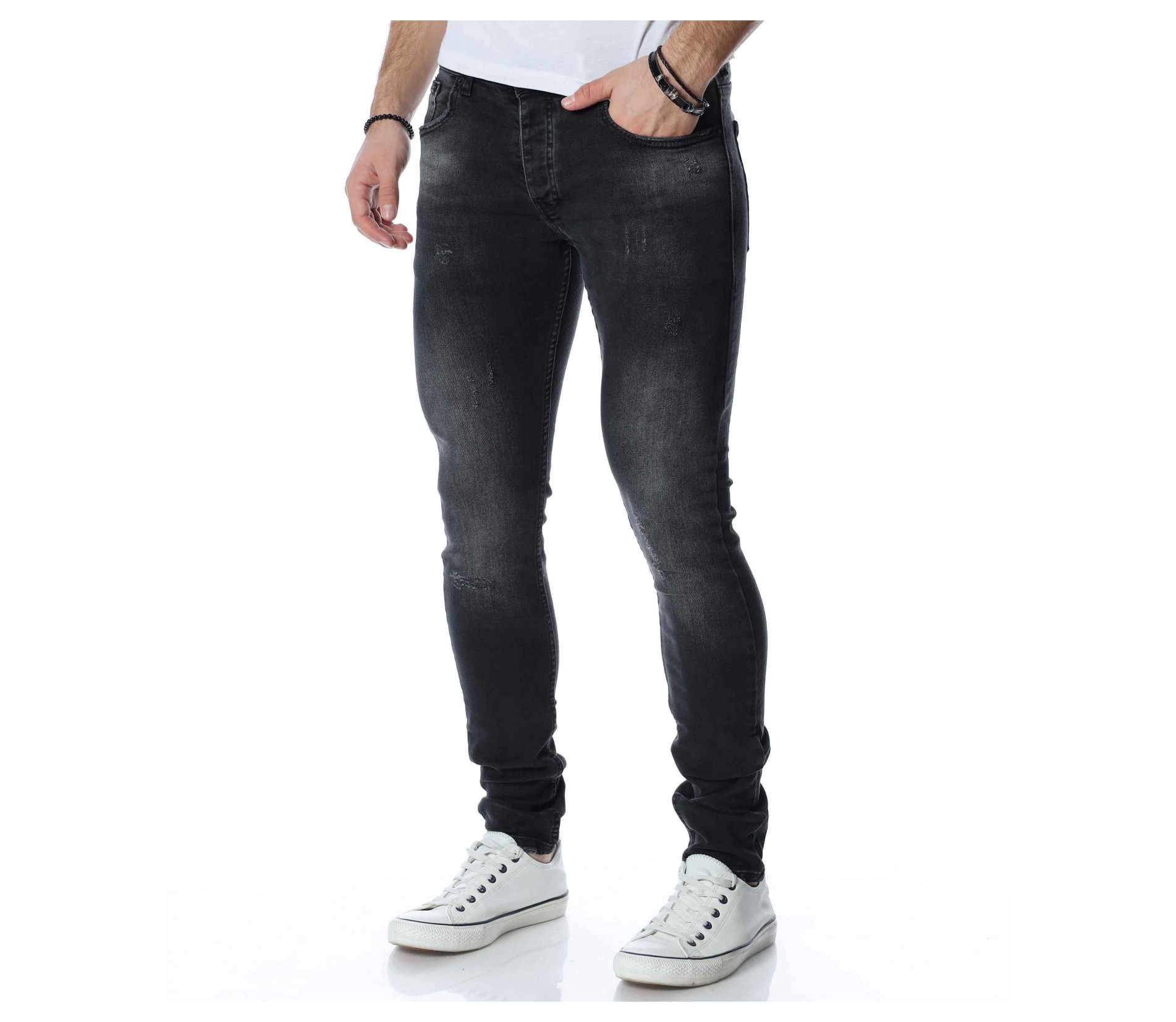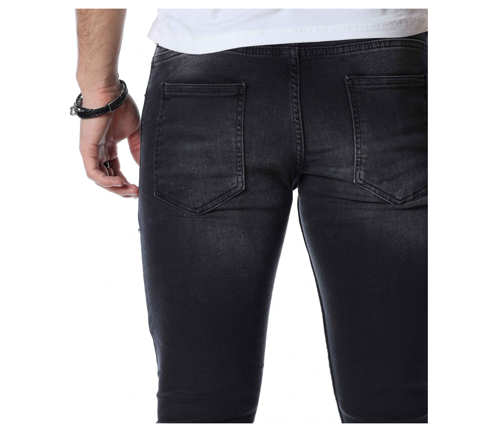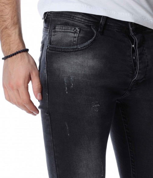 ОПИСАНИЕ НА ПРОДУКТА: Ако държите на добрия външен вид, то ви препоръчваме тези ефектни и много семпли мъжки дълги дънки, чиито нюанс е част от черната гама. Самия десен е непринудено комбиниран с фабрично избелели участъци, които сформират леко сив аспект. Наред с това са нанесени хаотично кръпки с накъсани детайли, които заемат цялата предна страна на крачолите. Два хоризонтални шева заобикалят областта на колана, внасяйки едно нестандартно и много фешън излъчване. Самата кройка е вталена и еластична, позволяваща всеобхватна комбинация с всякакви ризи и тениски, както и якета в кожен и шушляков вариант. От двете страни на мъжкия деним са разположени по два дълбоки джоба за удобство и комфорт. Прибави стилен колан като аксесоар и свежи кецове и се наслади на изпипан до детайл стайлинг, част от последните модни тенденции.
